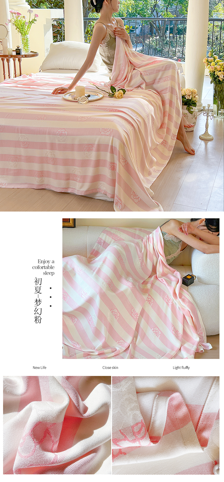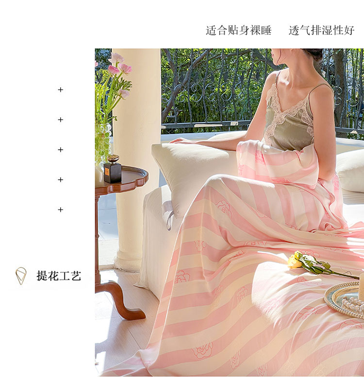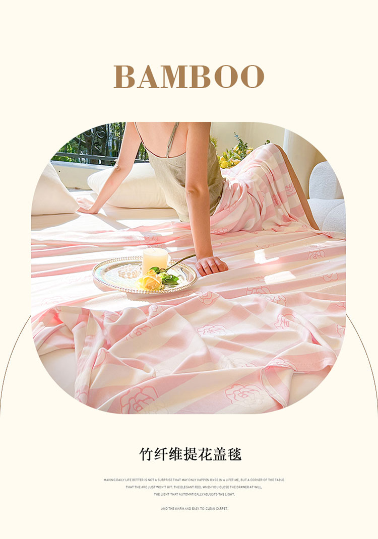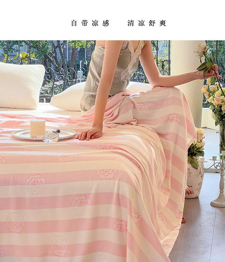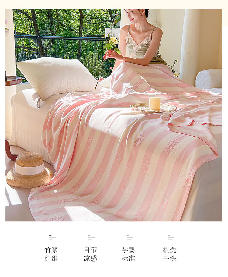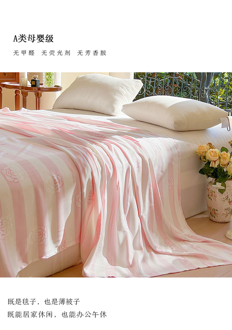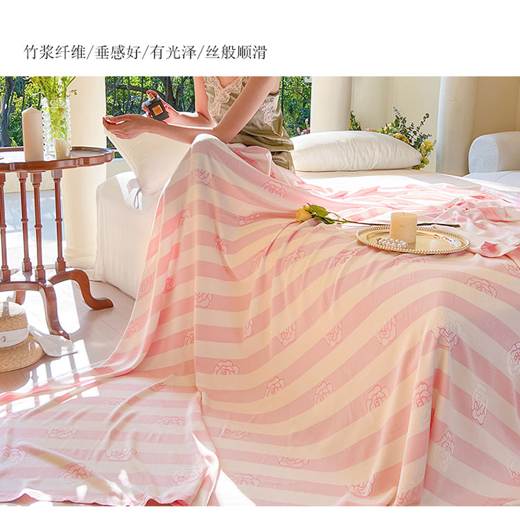 商品名称:麻依2023款竹纤维单层毛巾被盖毯夏凉被冷感毯竹纤维床单 初夏-梦幻粉