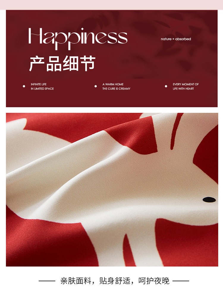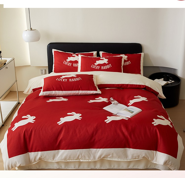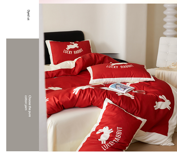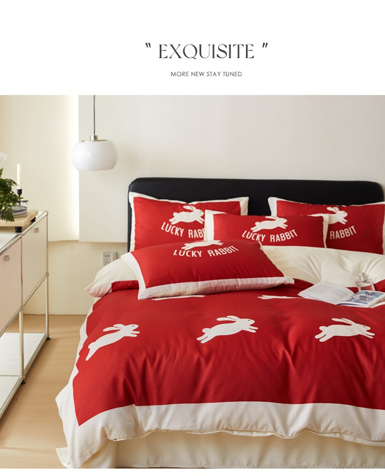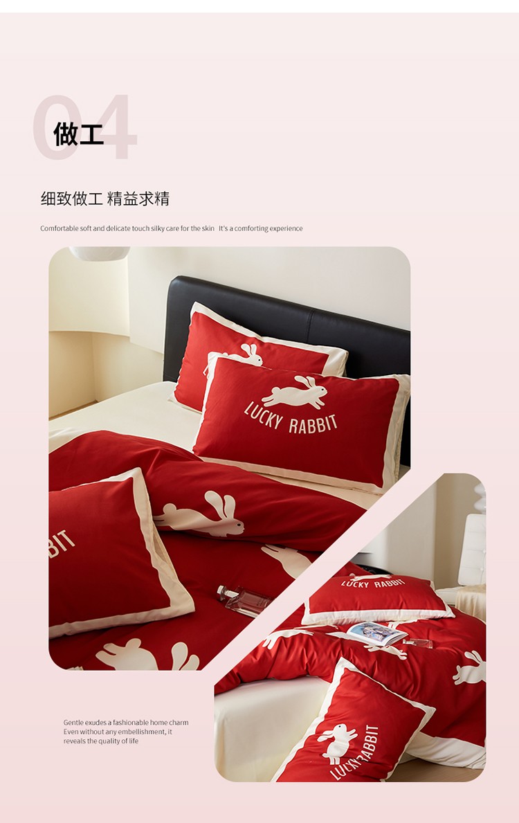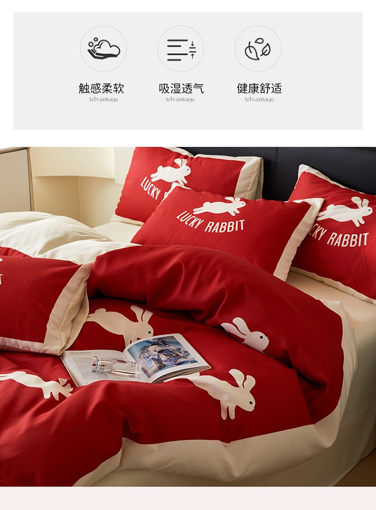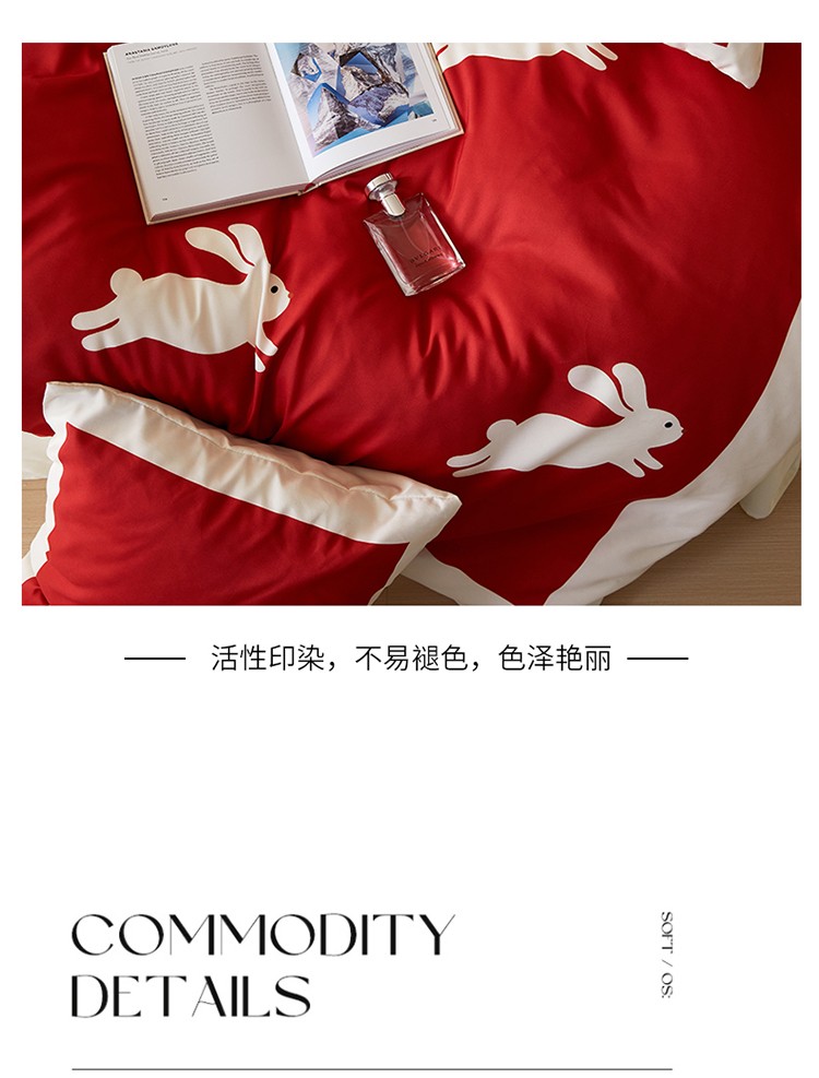 商品名称:色鬼布艺 2023新款真丝棉数码印花床单床笠款四件套 幸运兔-红