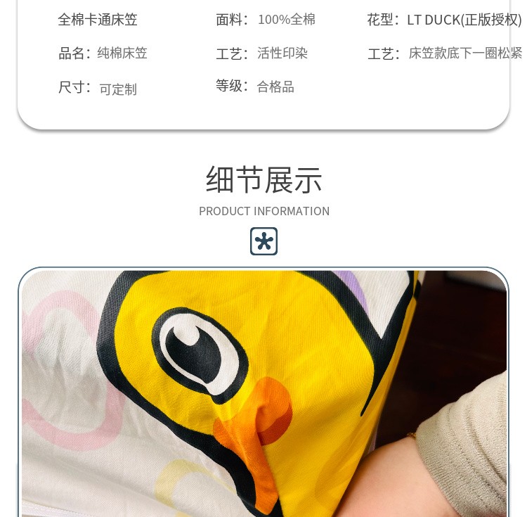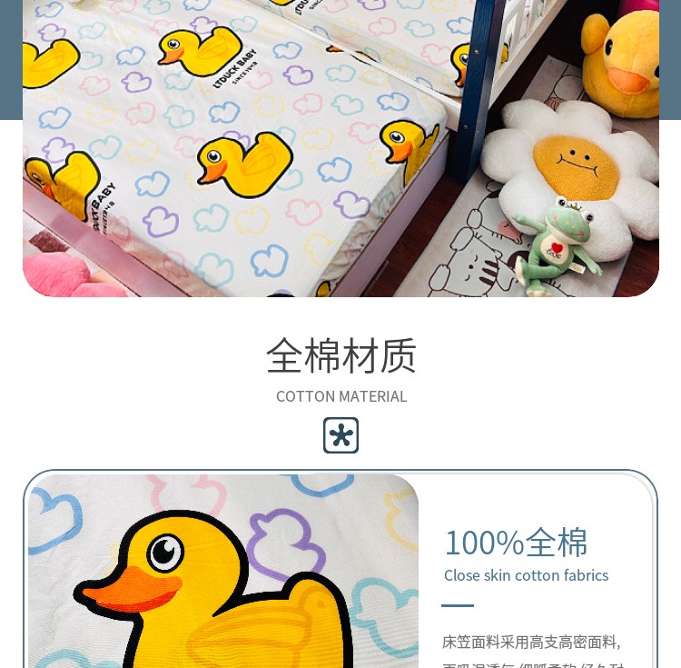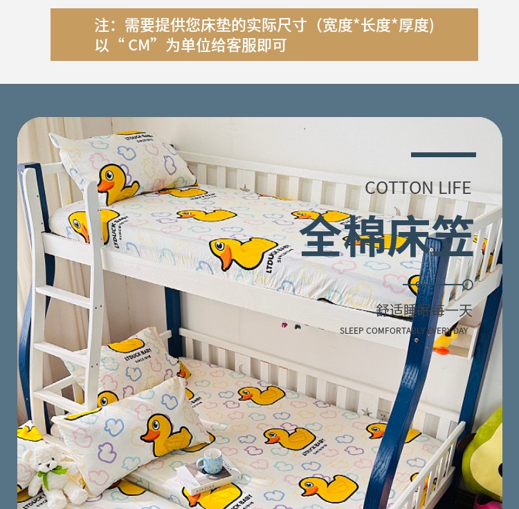 • 91家纺网 家纺一手货源 找家纺 小虾米 2023新款上下铺小黄鸭系列全棉床笠(可定制) 五彩缤纷