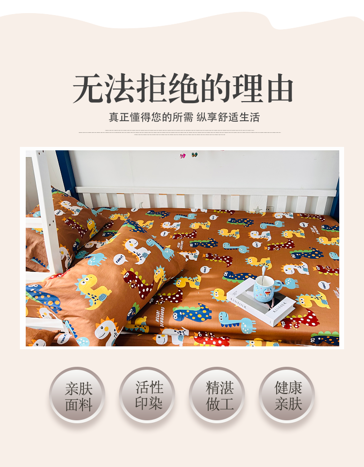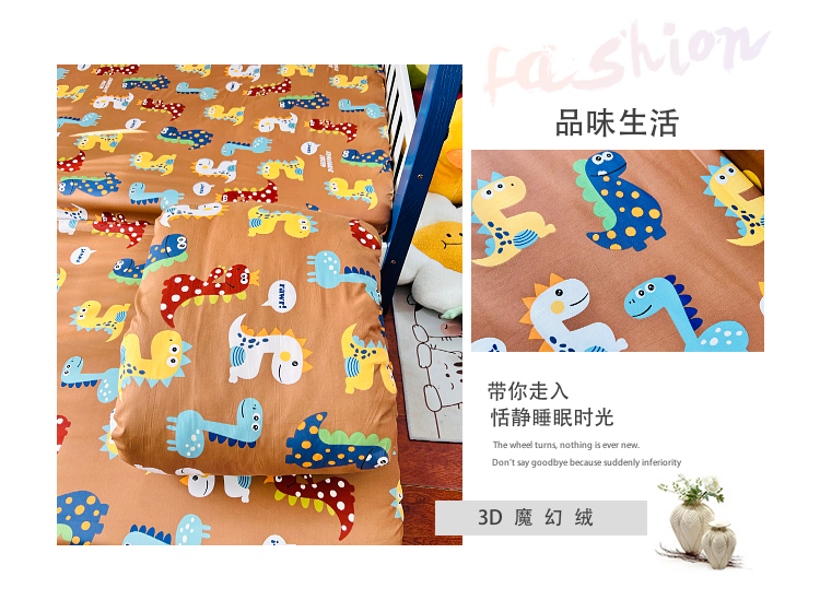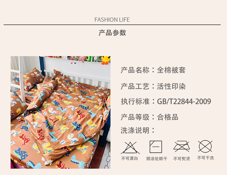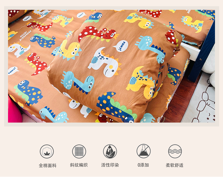 商品名称:小虾米 2023新款卡通系列全棉被套 恐龙日记咖
