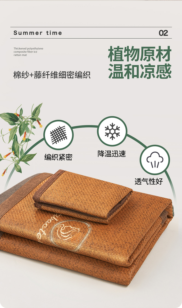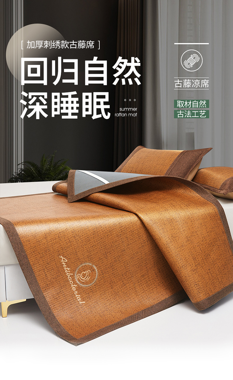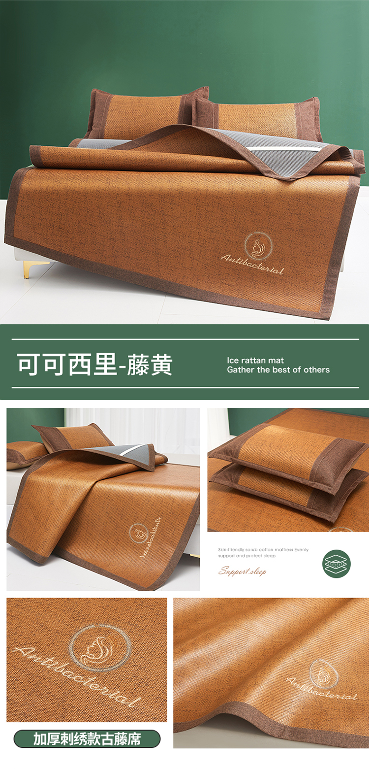 伊被源 2023新款加厚刺绣古藤席三件套-可可西里 可可西里-藤黄
