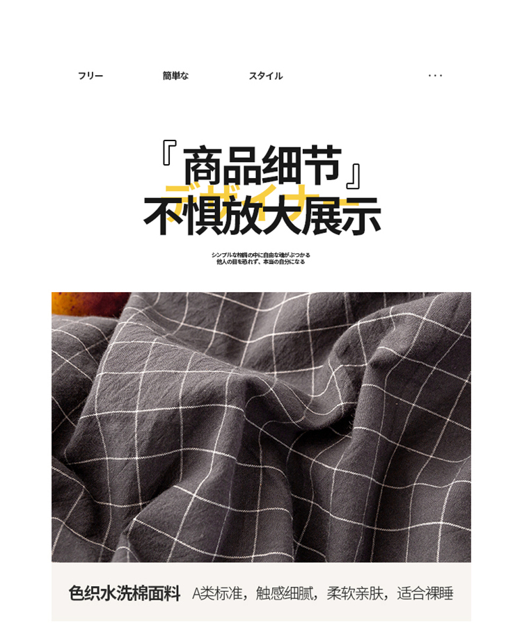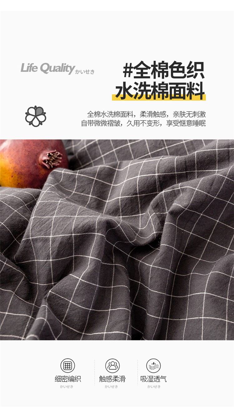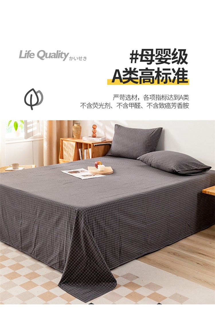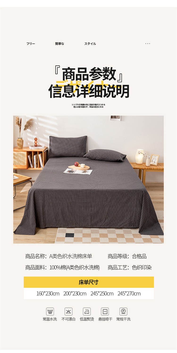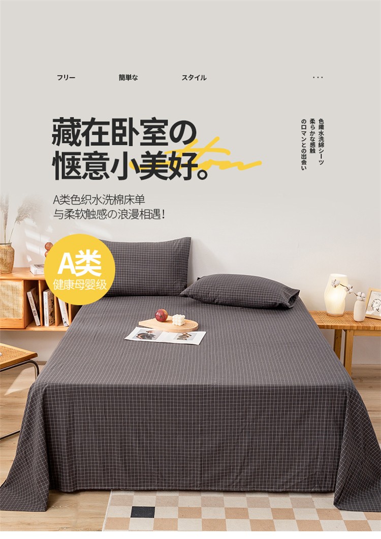 商品名称:九沐良品 新款A类色织水洗棉床单 新灰格