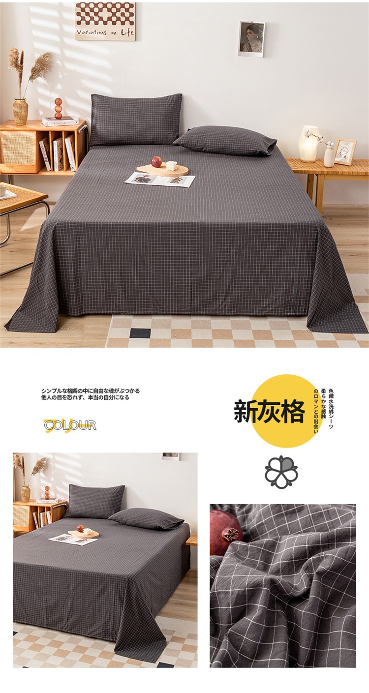 九沐良品 新款A类色织水洗棉床单 新灰格