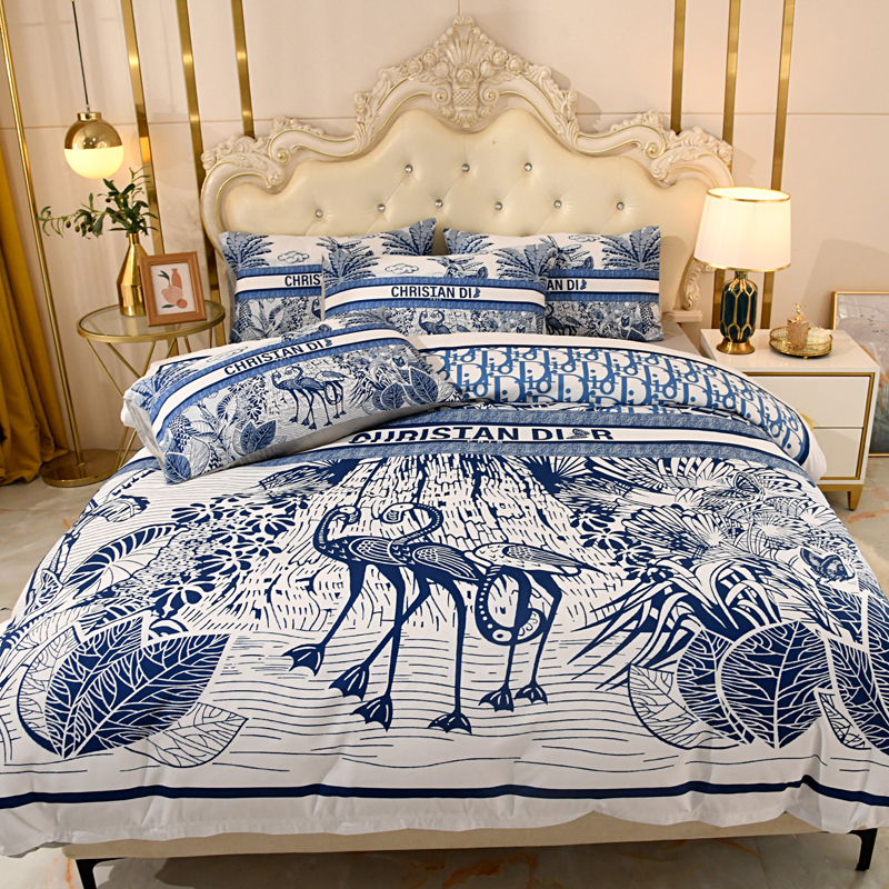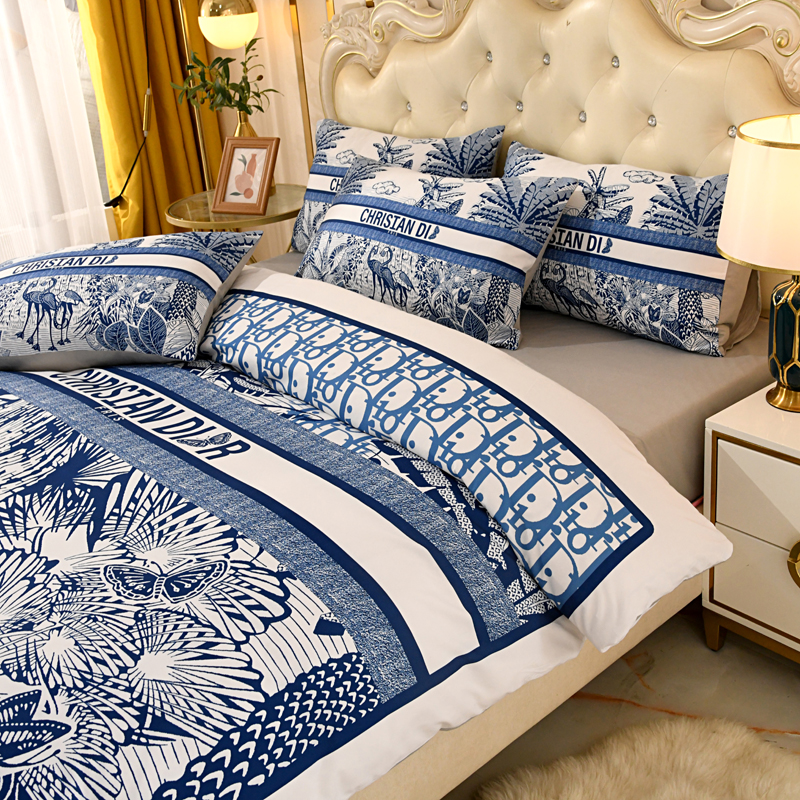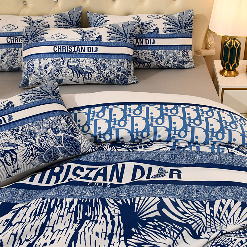 爵仕 2023新款轻奢简约风全棉四件套 D家蓝