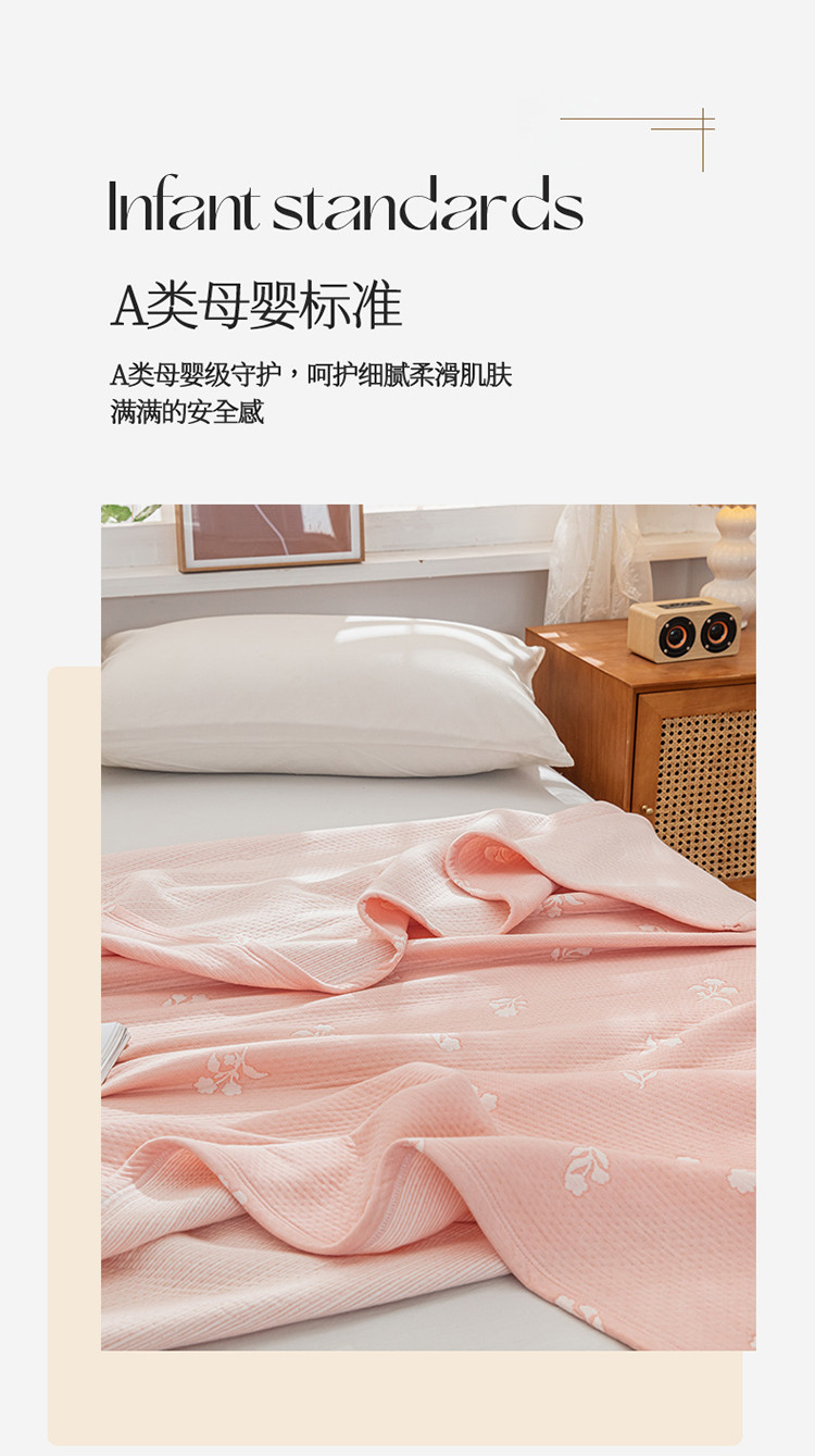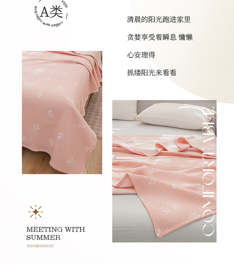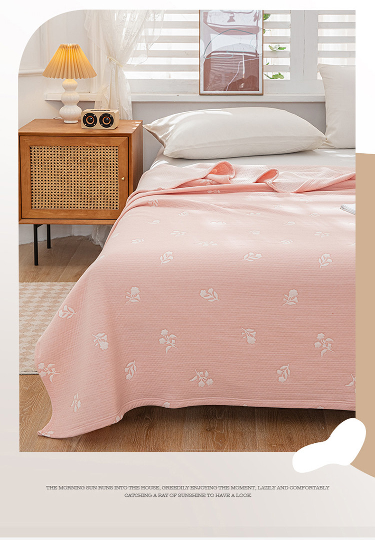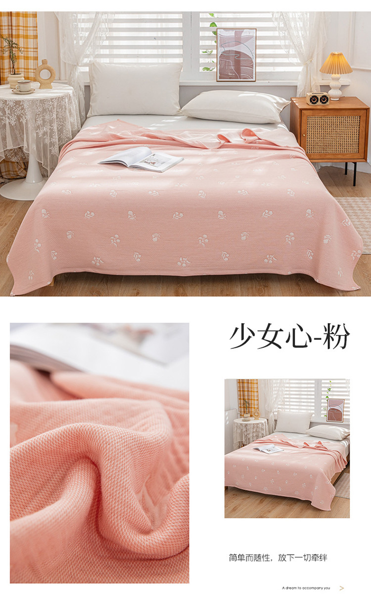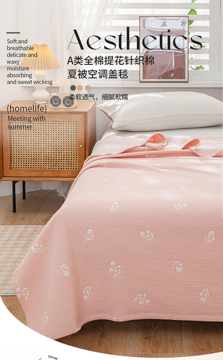 商品名称:卡奥 2023新款A类全棉提花针织棉夏被空调盖毯 少女心-粉