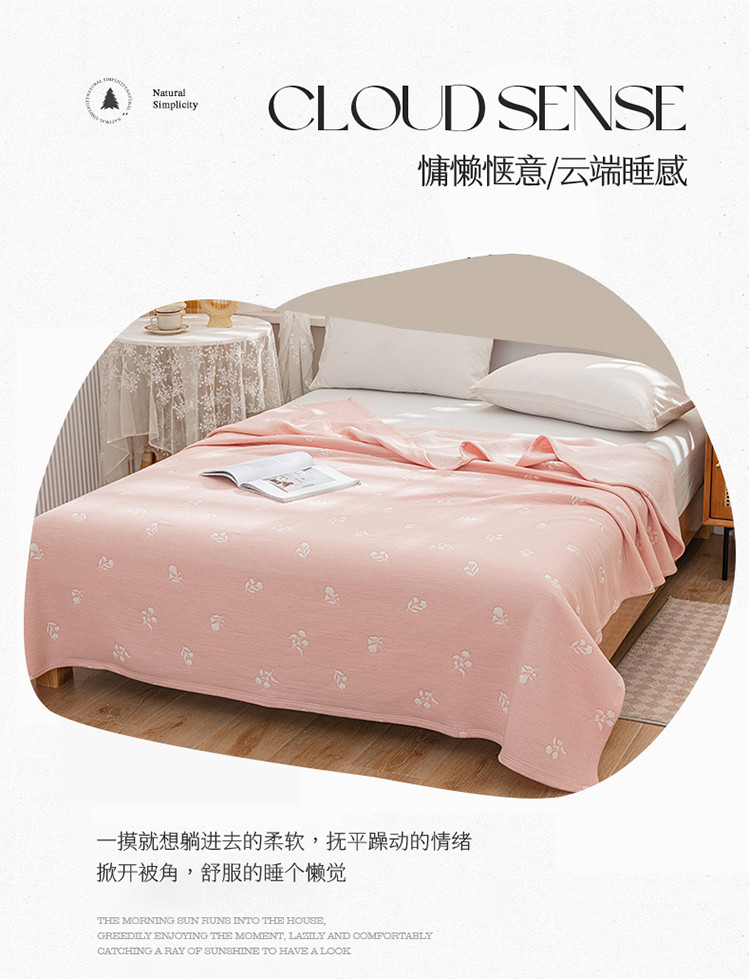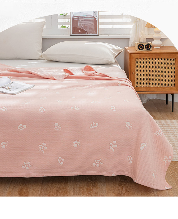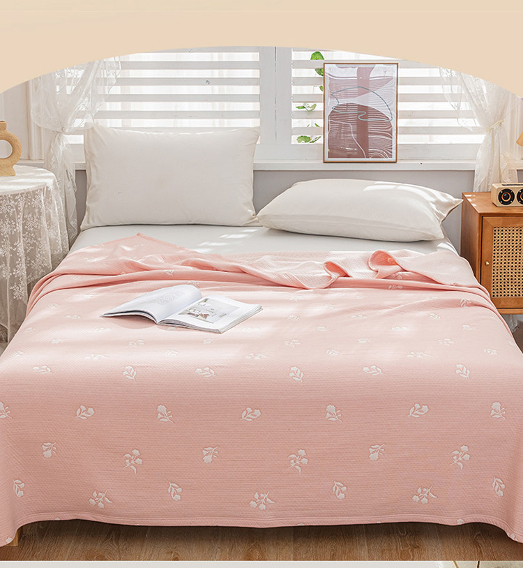卡奥 2023新款A类全棉提花针织棉夏被空调盖毯 少女心-粉