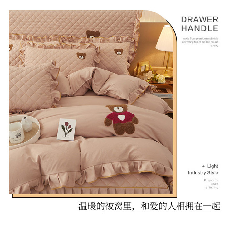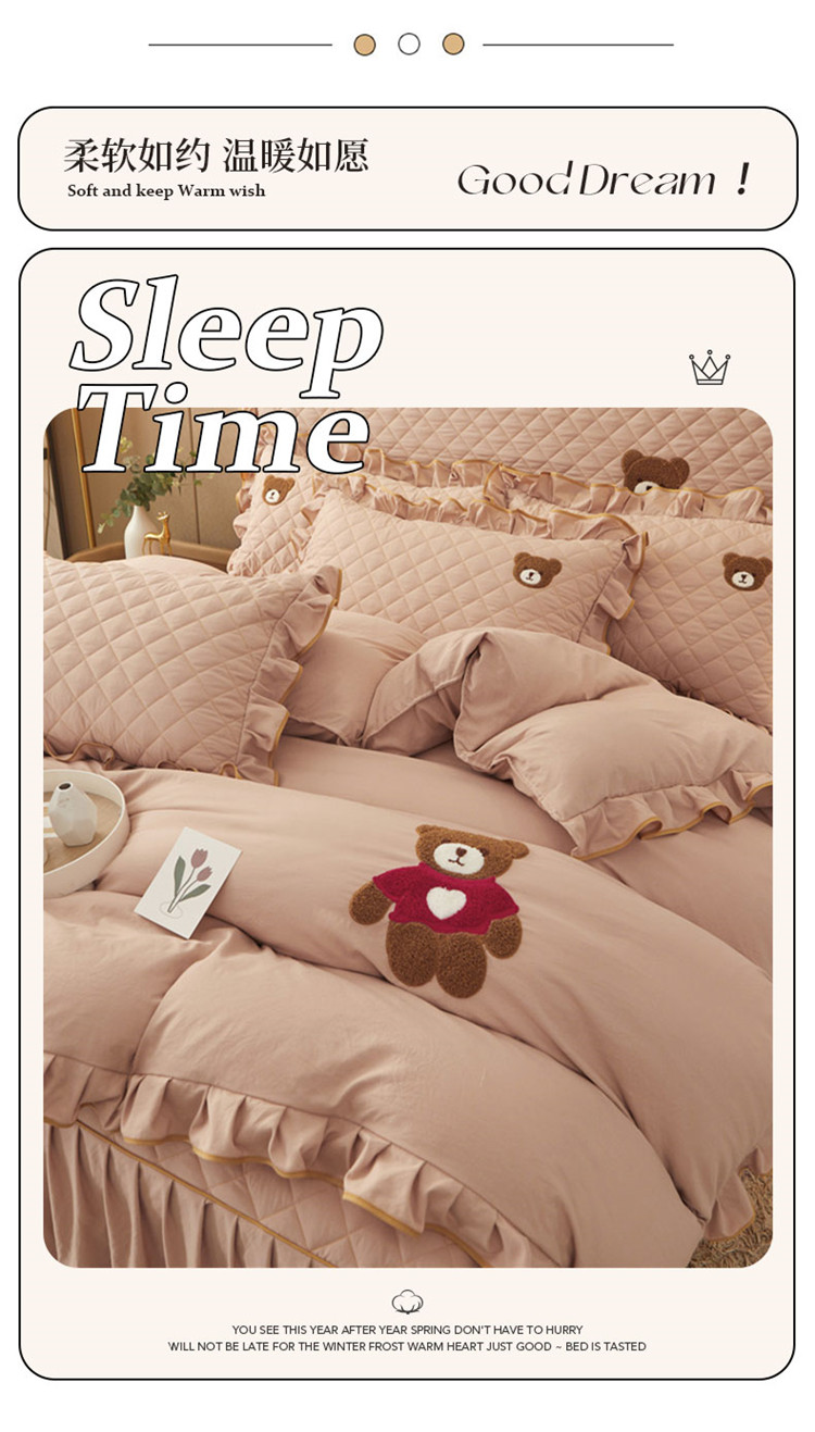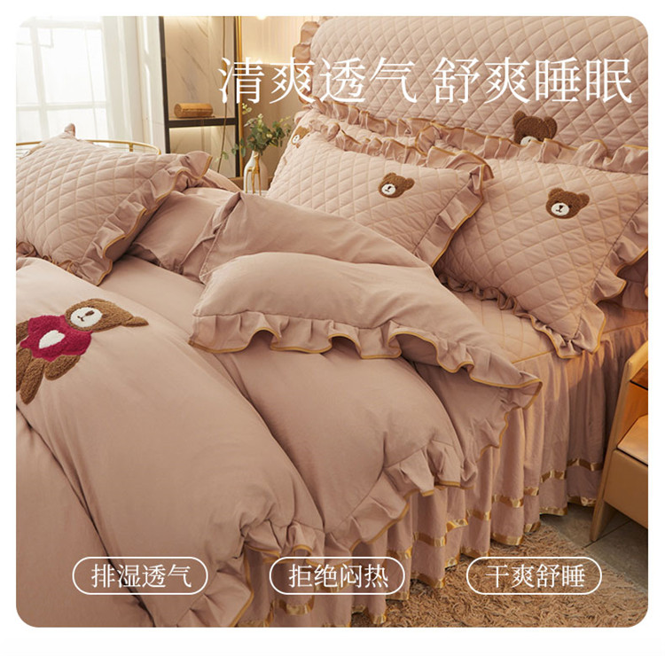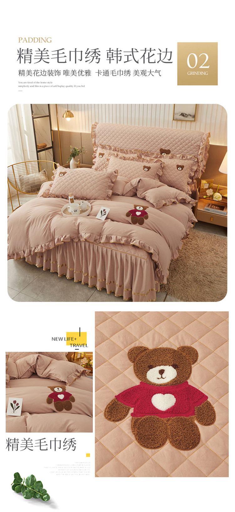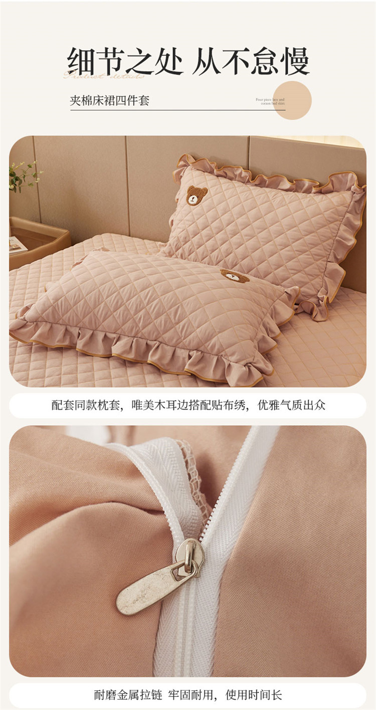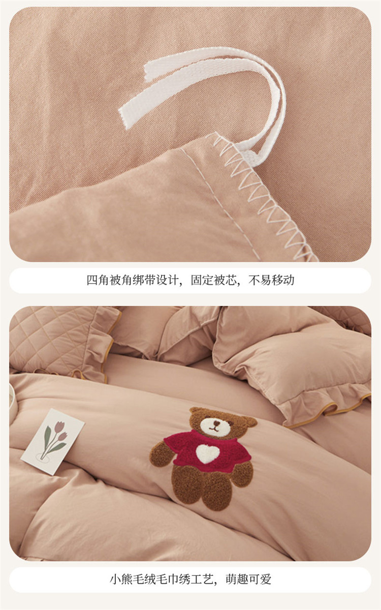 当前位置: 91家纺网 > 商品网购 > 床品套件 > 四件套 > 水洗棉四件套 > 屹成家纺 2024年水洗棉毛巾绣款床裙四件套 卡其