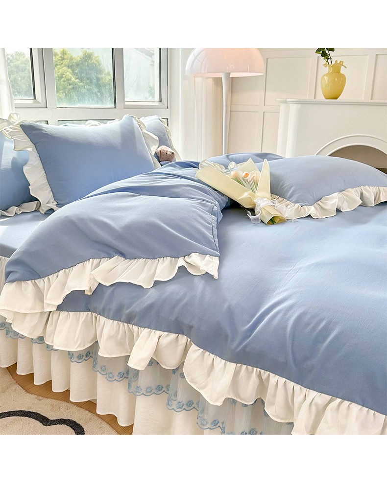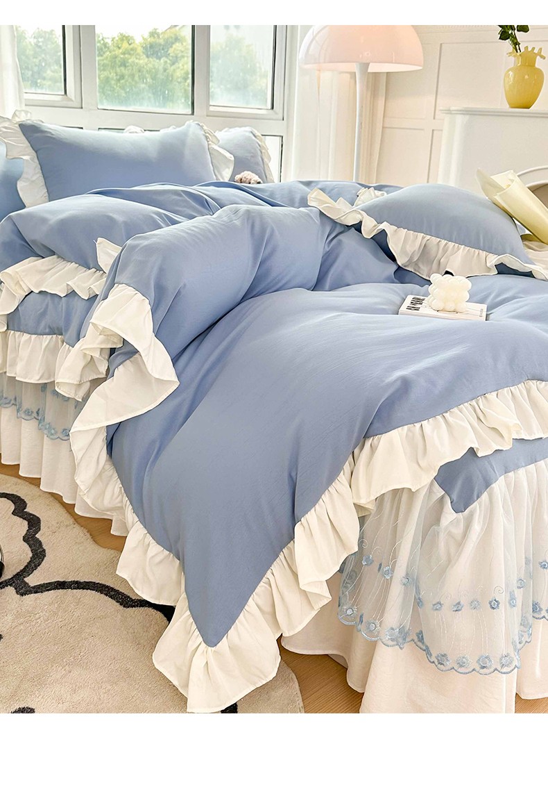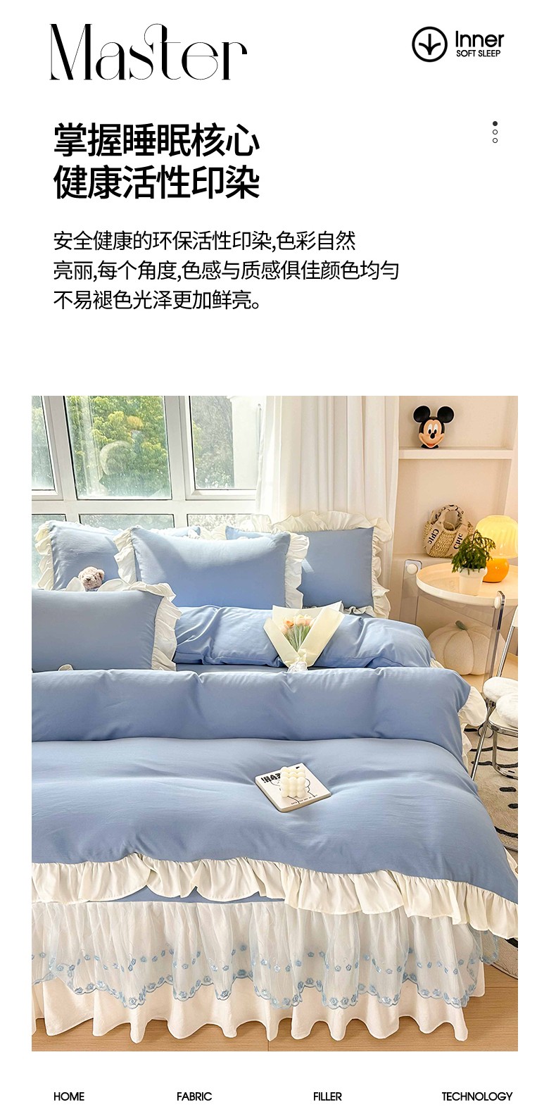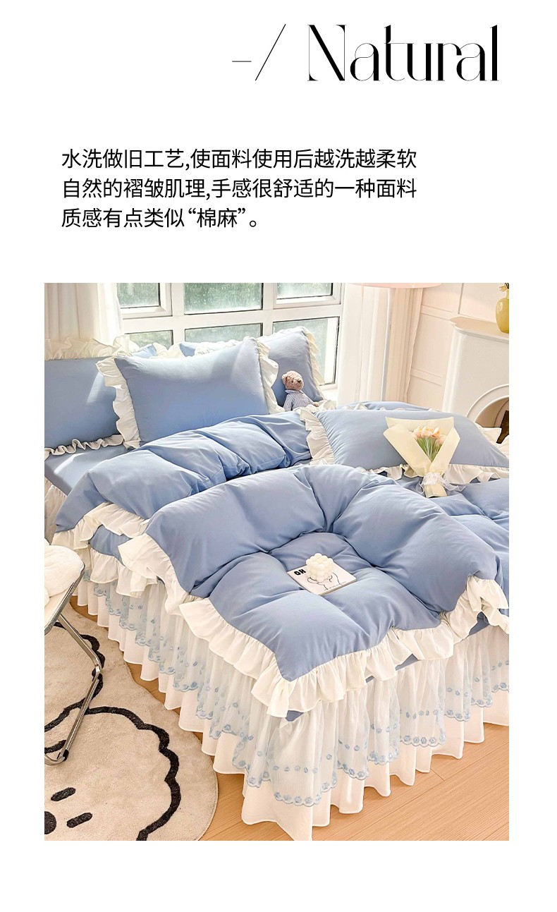 (总)言熙居 2023新款A类清新风棉麻双层纱直播爆款床裙四件套