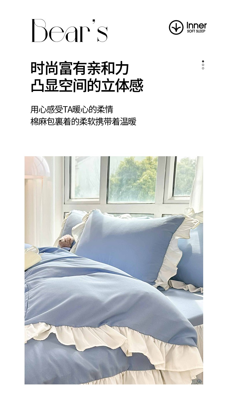 商品名称:(总)言熙居 2023新款A类清新风棉麻双层纱直播爆款床裙四件套
