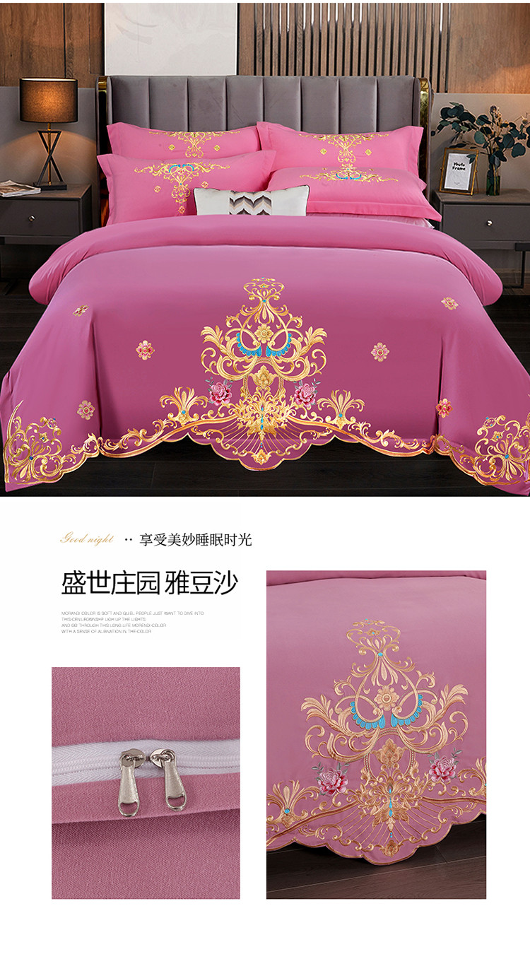 商品名称:慕她婚庆四件套大红色结婚加厚磨毛刺绣花多件套直播 盛世庄园雅豆沙