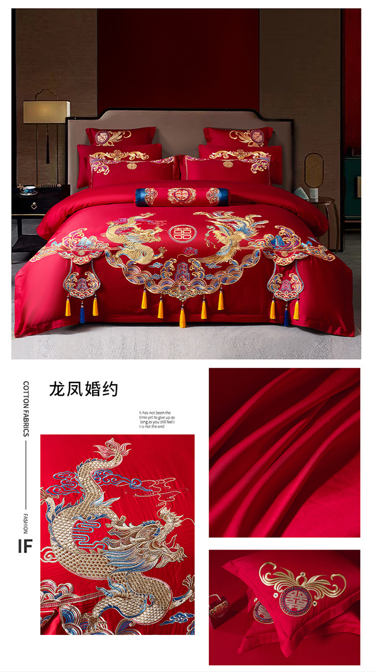 (总)慕她 202560S长绒棉刺绣婚庆四件套-龙凤良缘,龙凤良缘