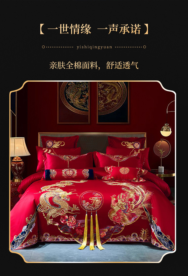 (总)慕她 202560S长绒棉刺绣婚庆四件套-龙凤良缘,龙凤良缘