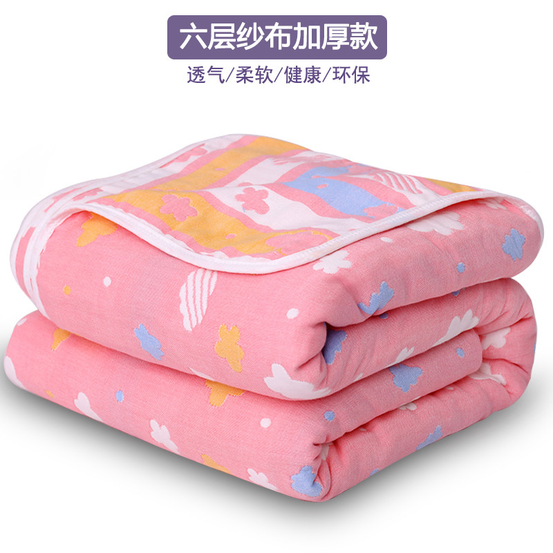商品名称:慕婷 全棉6层纱布毛巾被纯棉六层纱布毯 彩云粉