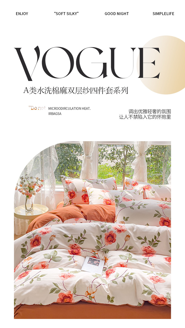 (总)米瑞娜 2024新款春夏105克双层纱水洗棉麻印花四件套