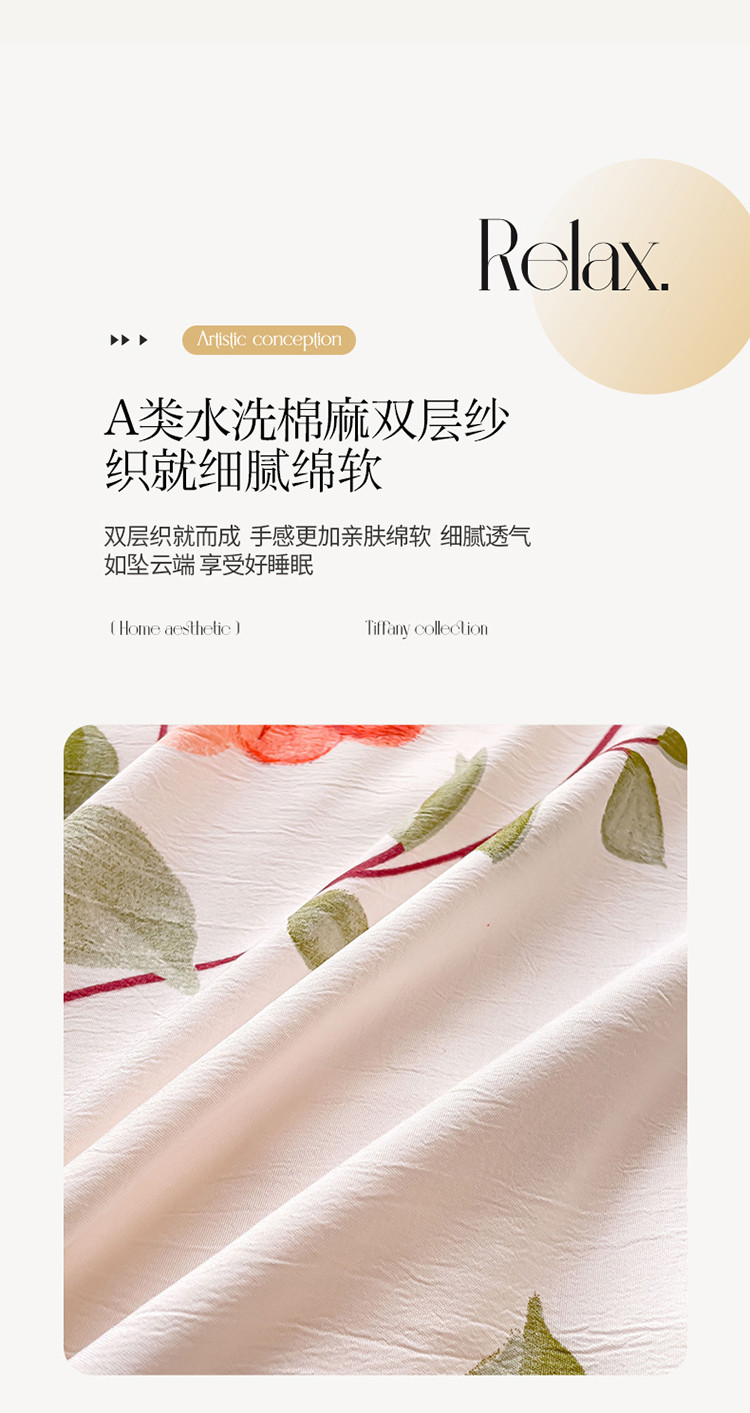 商品名称:(总)米瑞娜 2024新款春夏105克双层纱水洗棉麻印花四件套