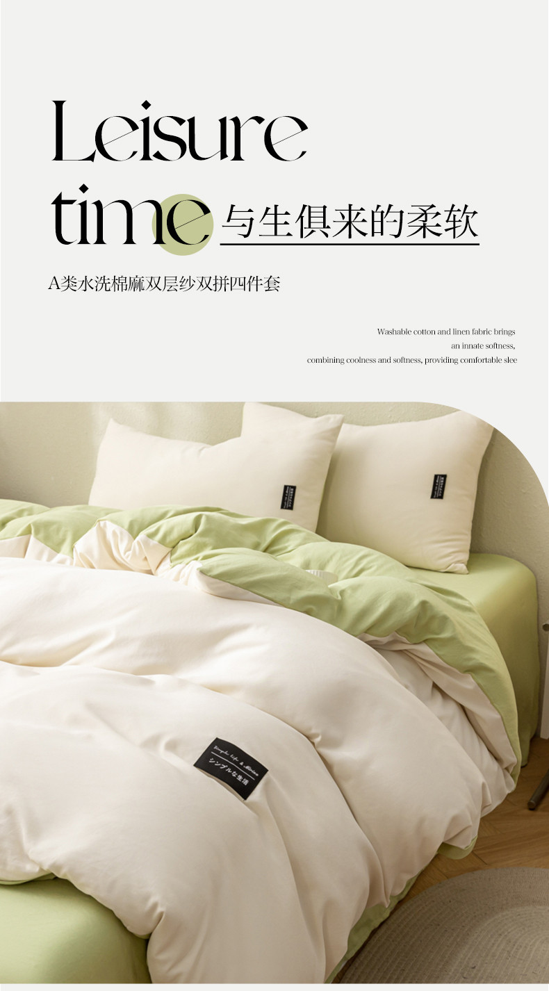 当前位置: 91家纺网 > 商品网购 > 床品套件 > 四件套 > 水洗棉四件套 > 米瑞娜 2024新款 水洗棉麻双拼纯色四件套 白+豆绿