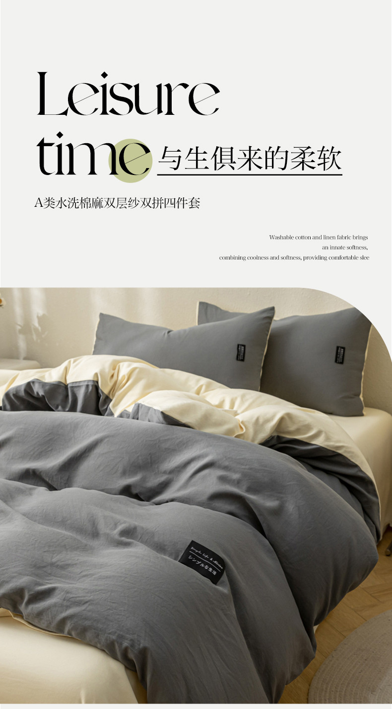 当前位置: 91家纺网 > 商品网购 > 床品套件 > 四件套 > 水洗棉四件套 > 米瑞娜 2024新款 水洗棉麻双拼纯色四件套 中灰+奶茶
