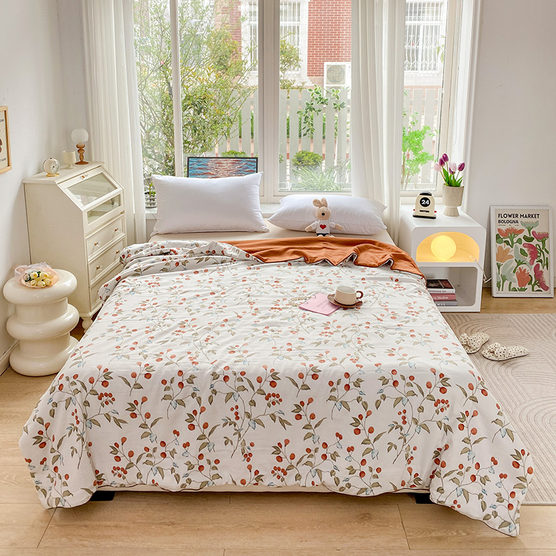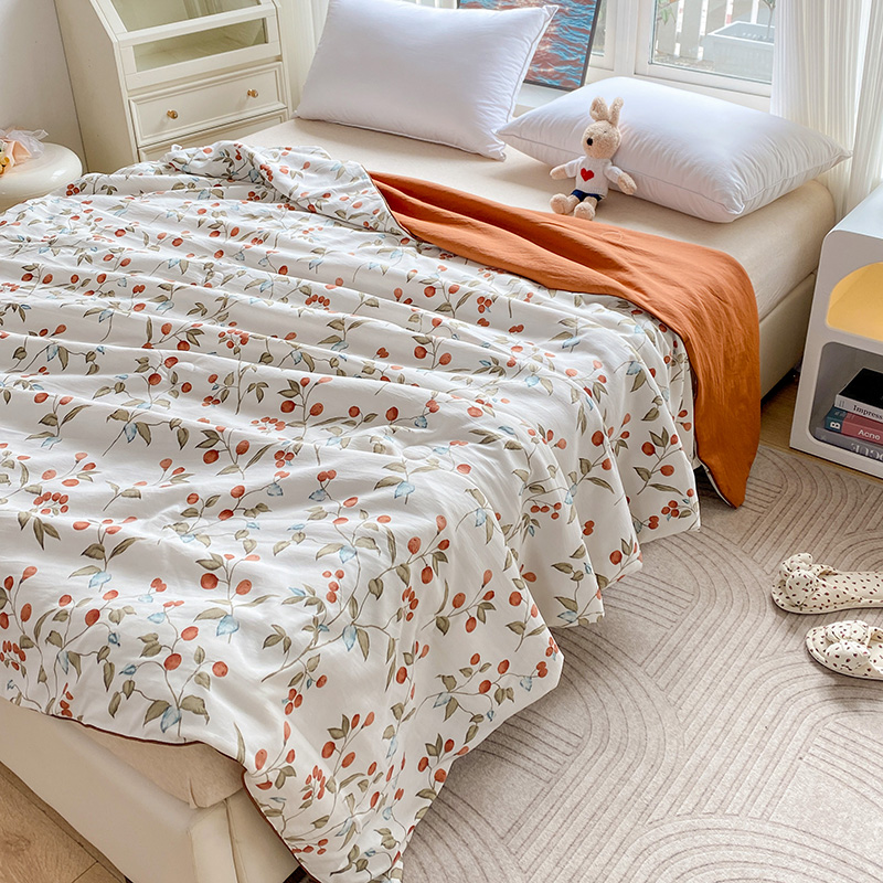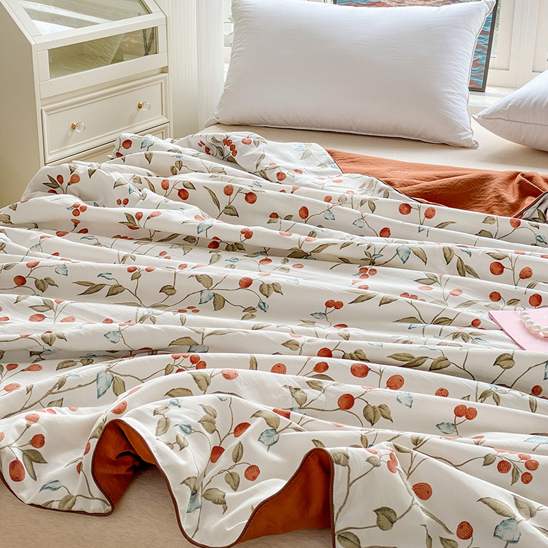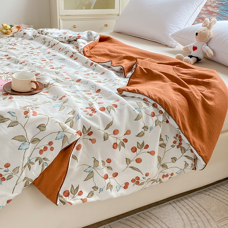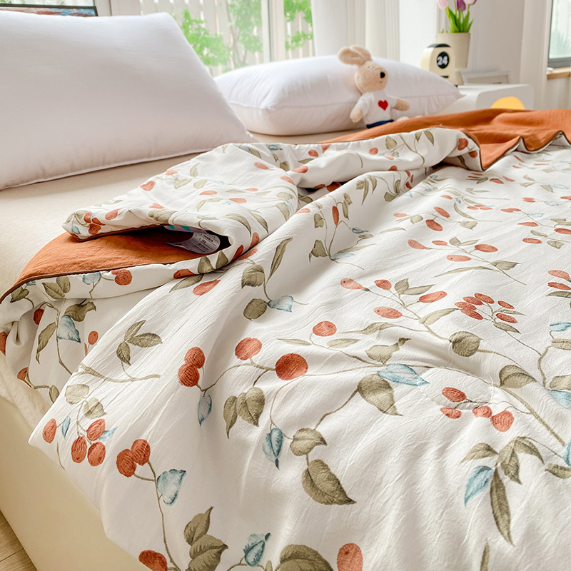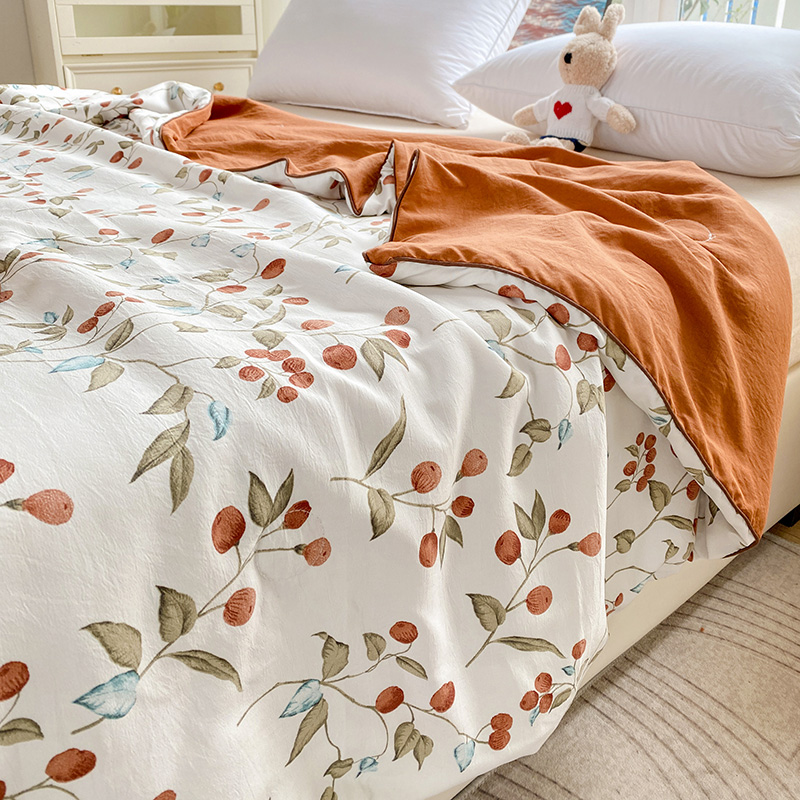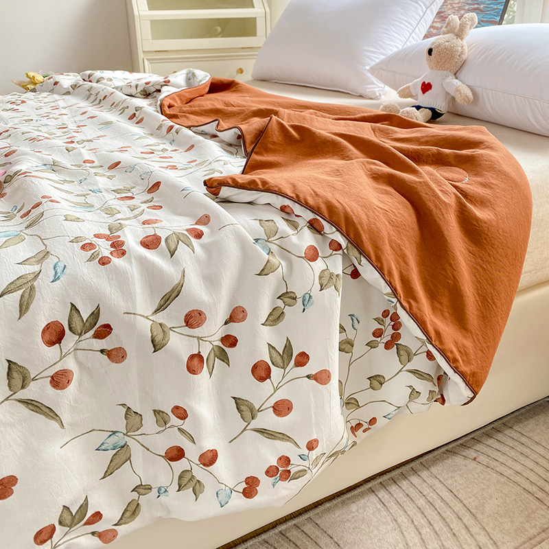 商品名称:畅畅家纺2023新款A类水洗棉麻双层纱夏被四件套 红豆