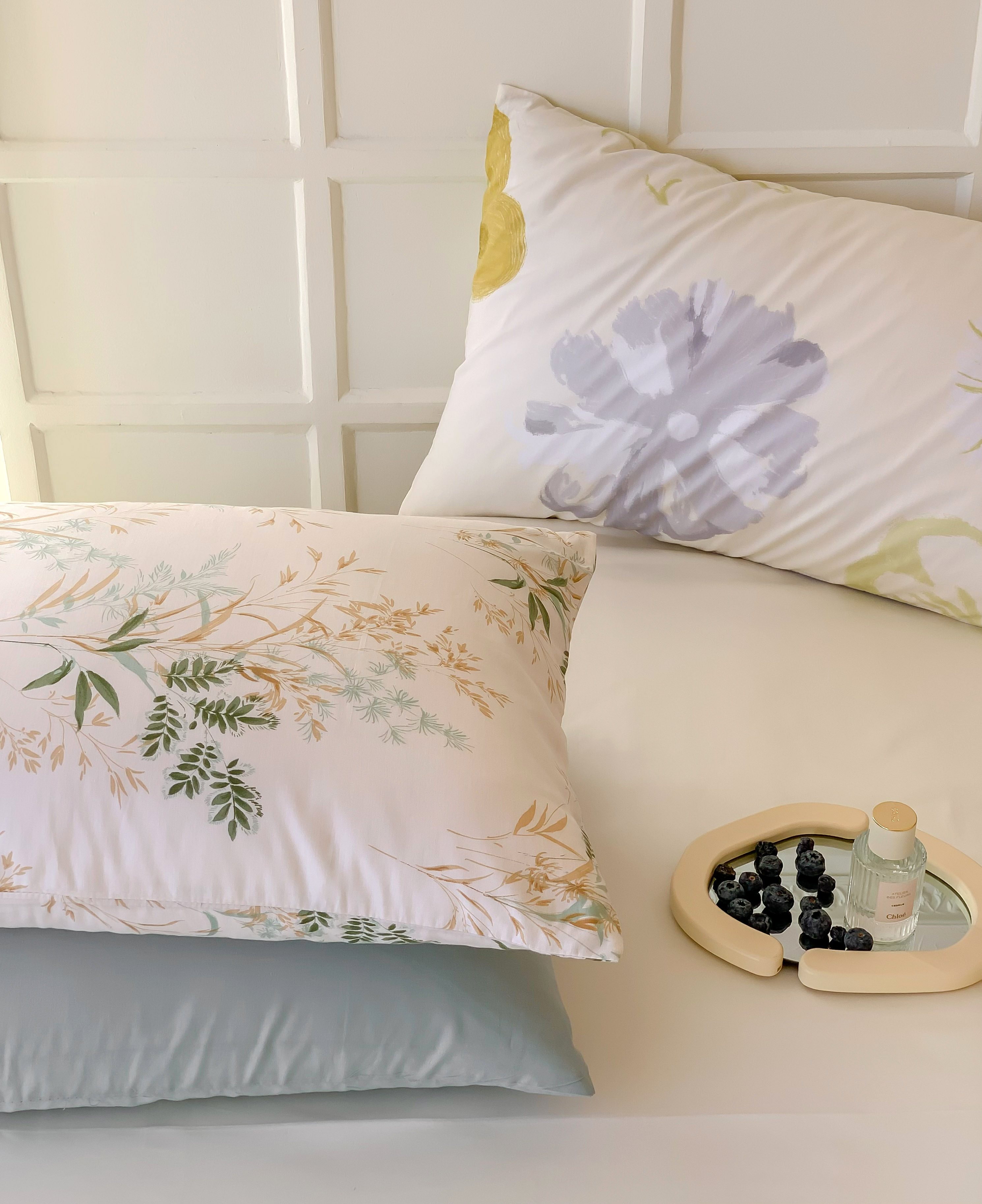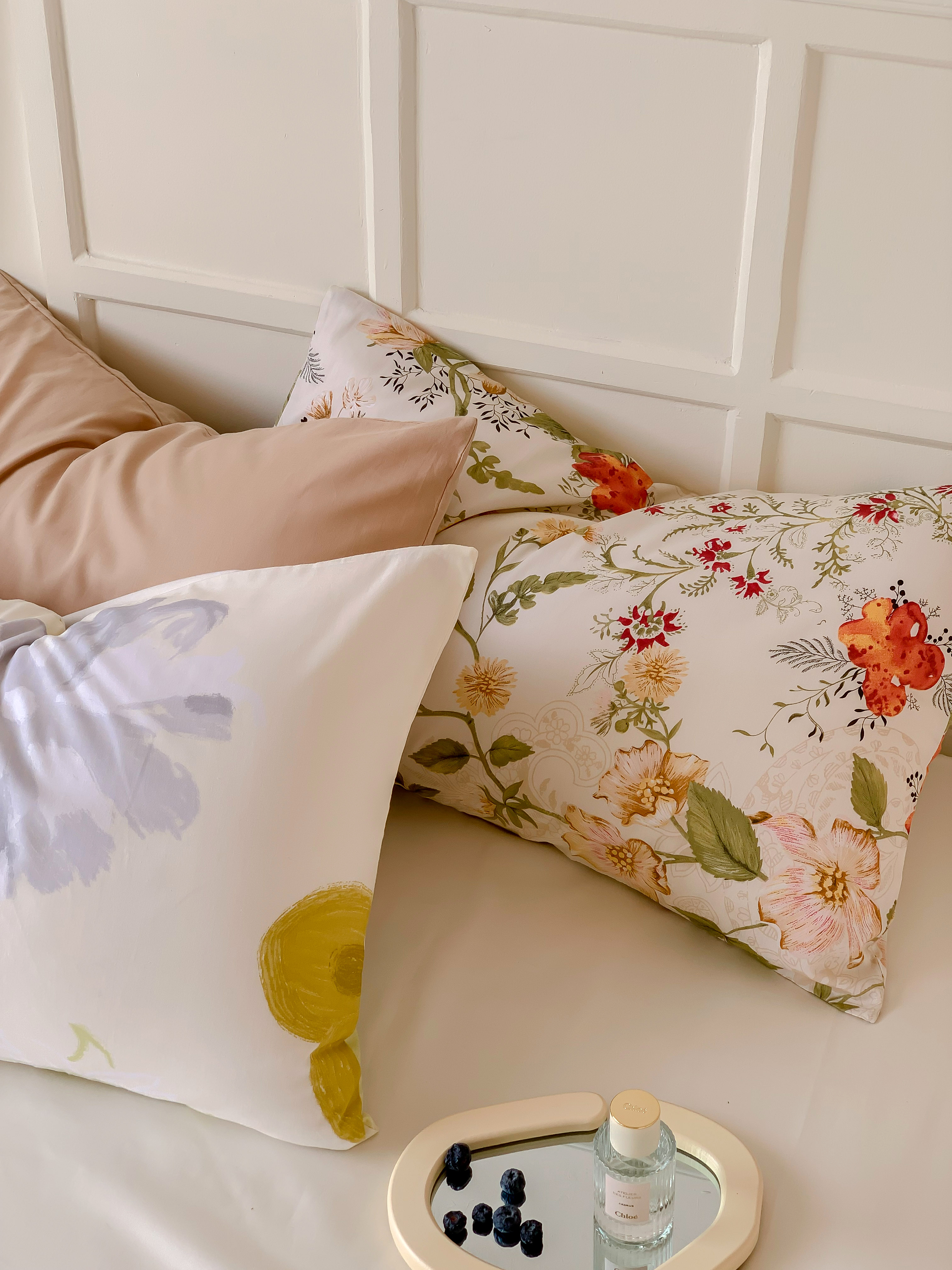 窝米 全棉斜纹枕套(花卉类) 韵彩黄枕套