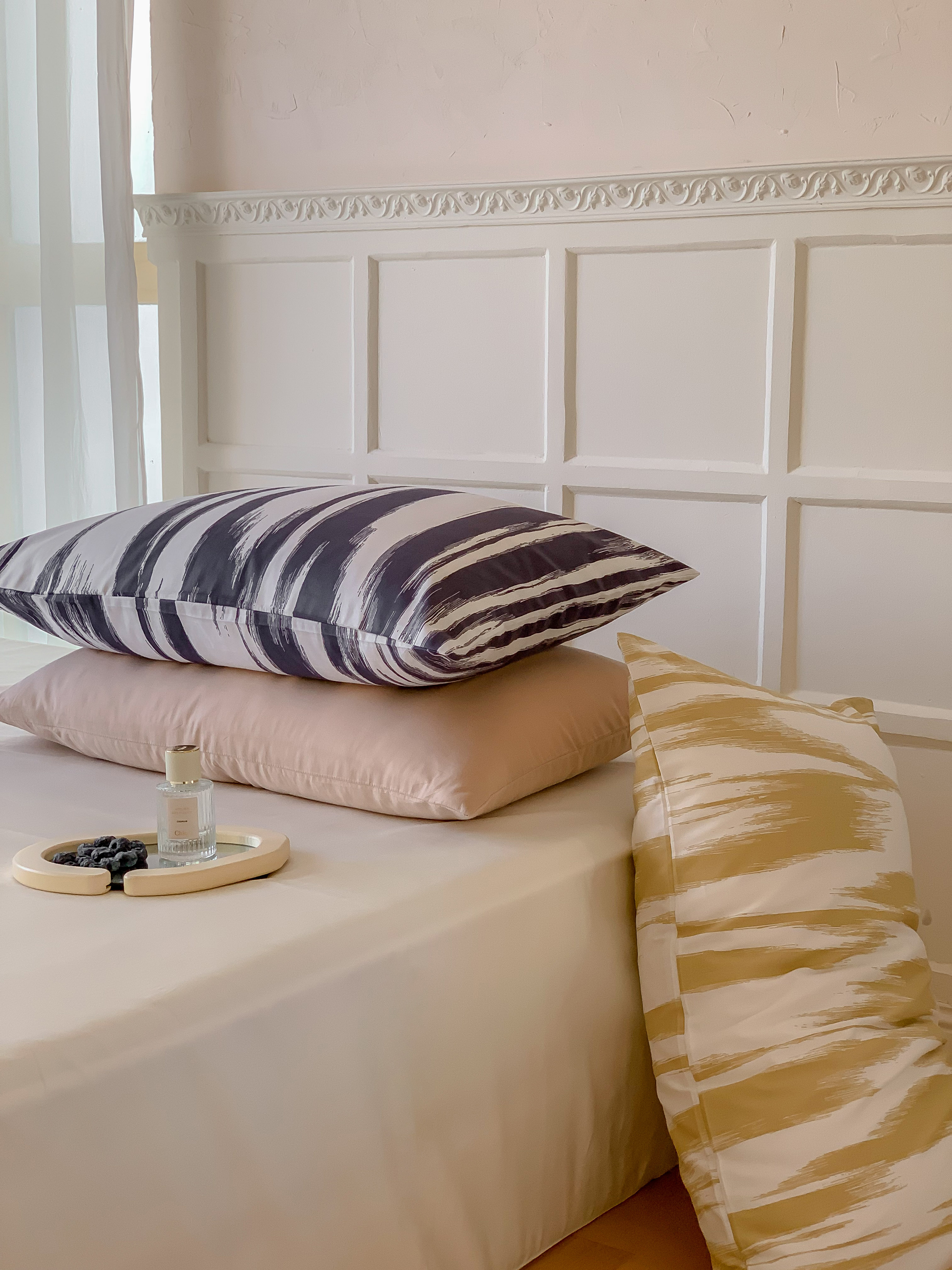 窝米 全棉斜纹枕套(简约类) 水波纹炭黑枕套