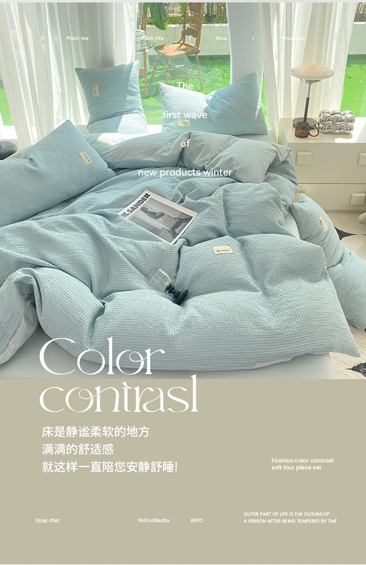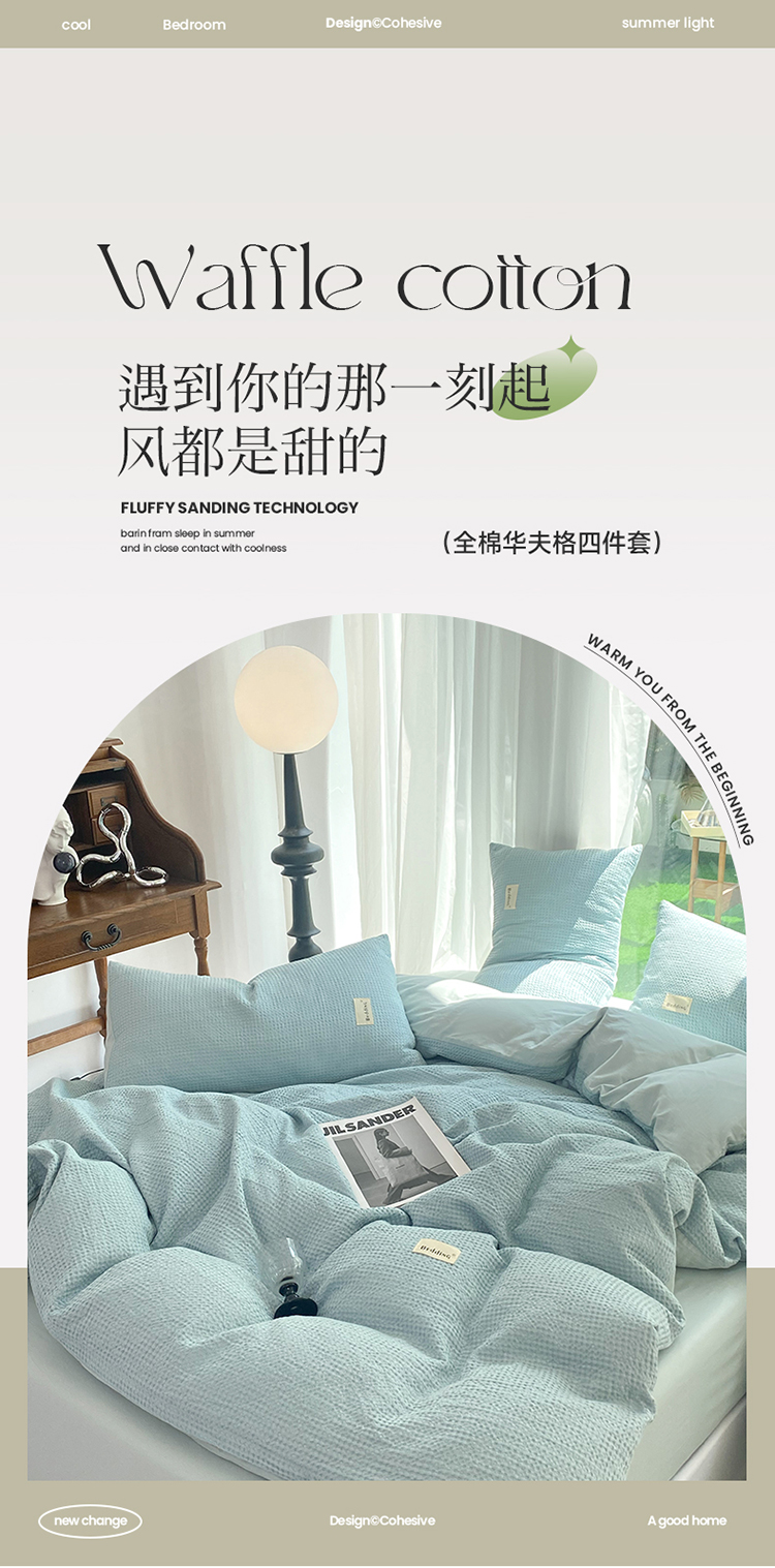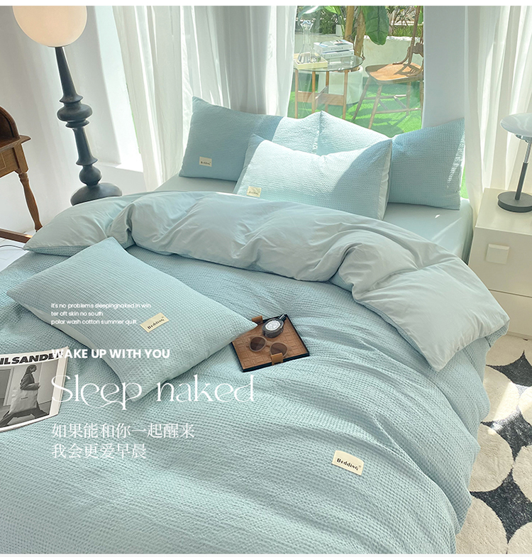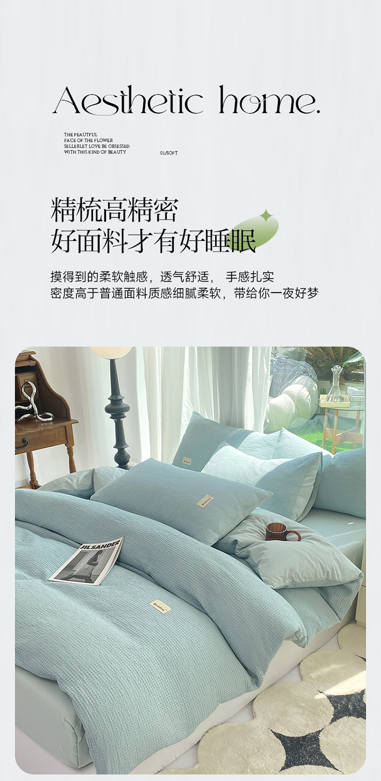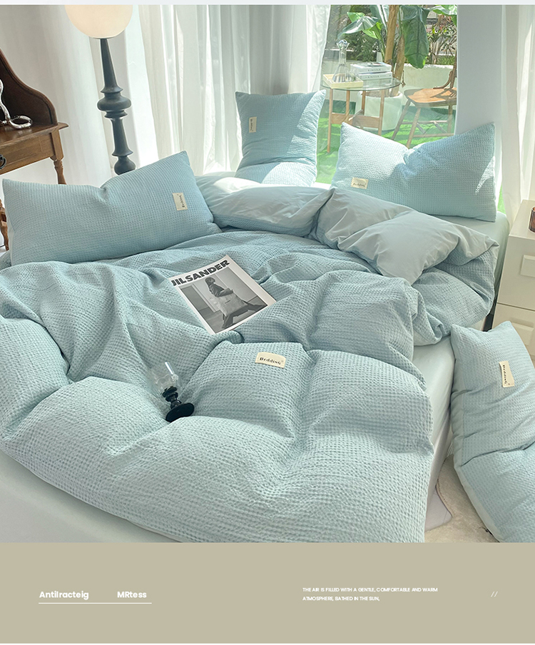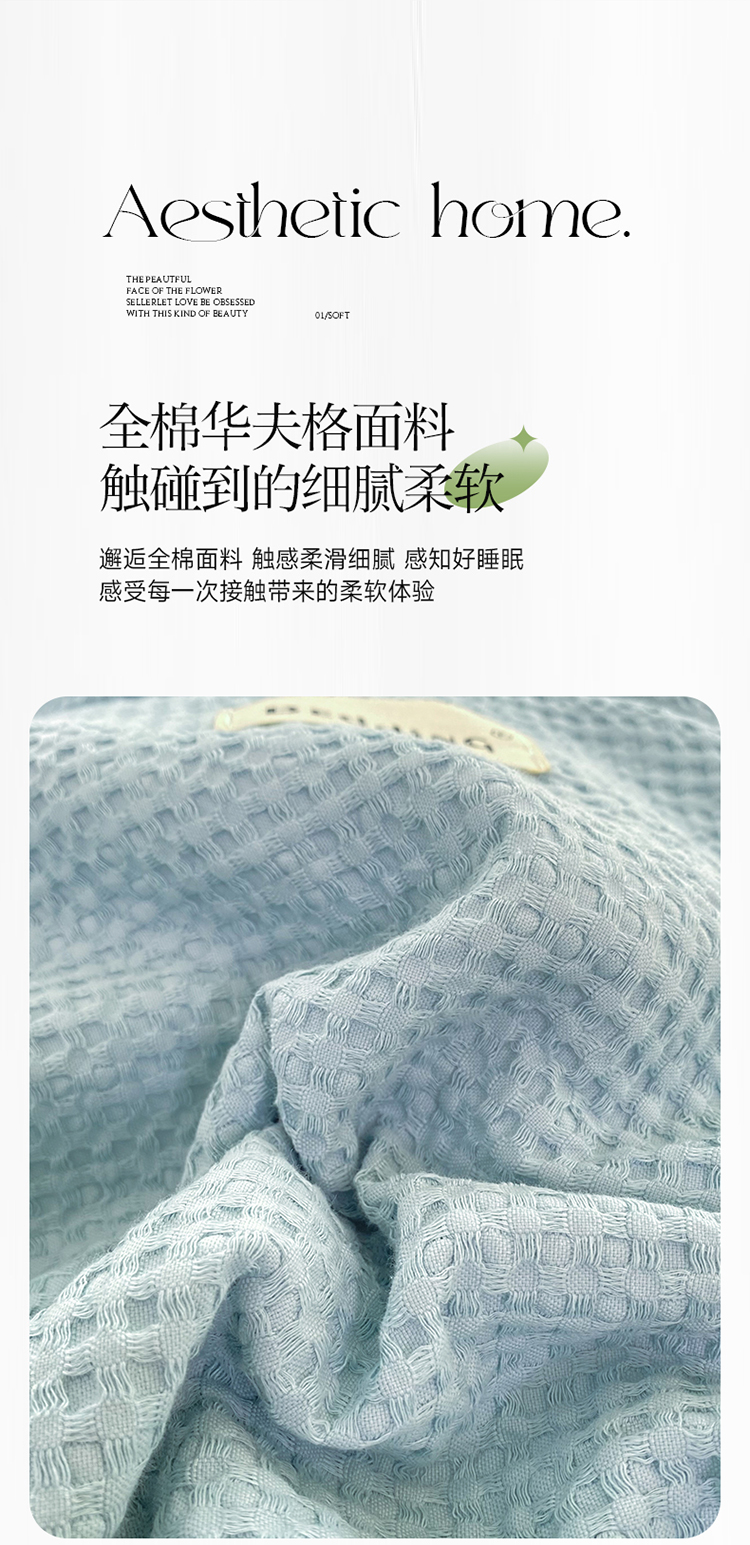 当前位置: 91家纺网 > 商品网购 > 床品套件 > 四件套 > 全棉普通四件套 > 澳梵家居 2023新品全棉华夫格四件套 华夫格-天蓝