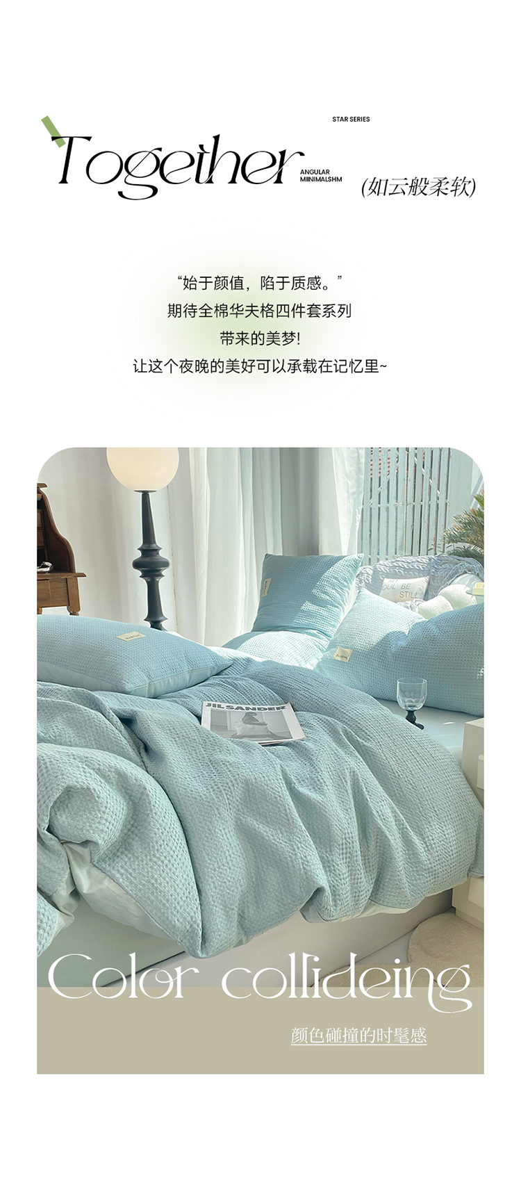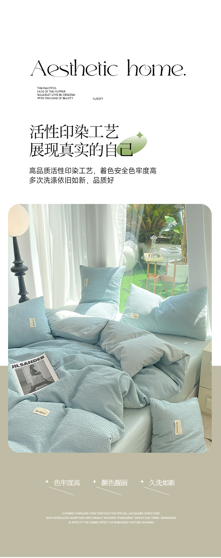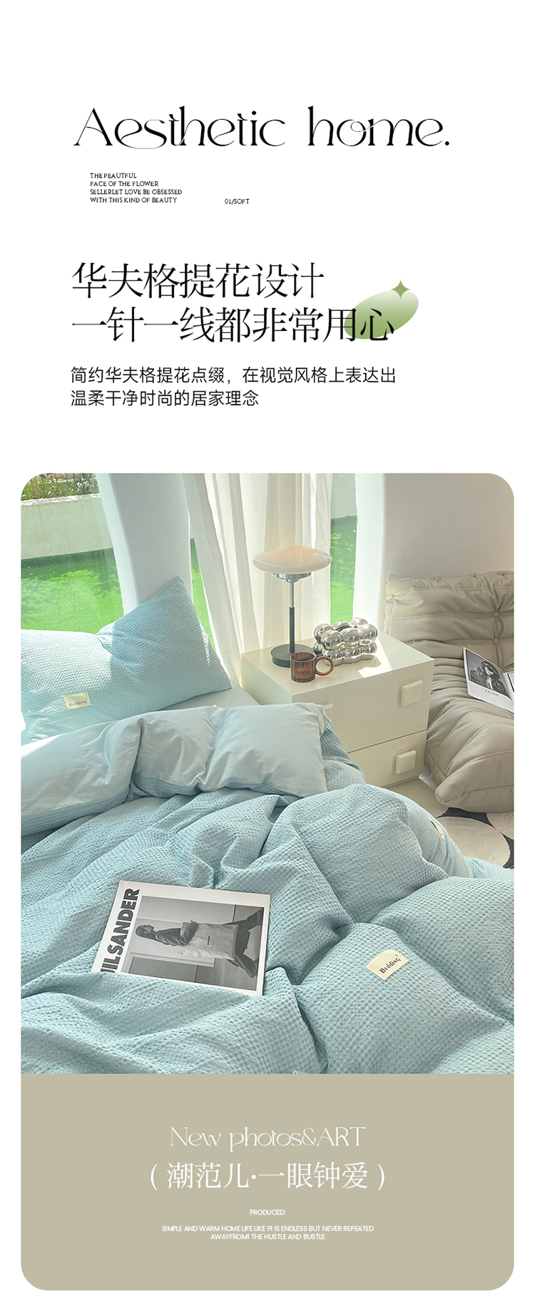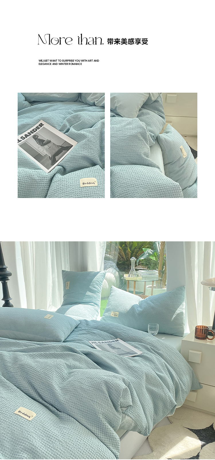 当前位置: 91家纺网 > 商品网购 > 床品套件 > 四件套 > 全棉普通四件套 > 澳梵家居 2023新品全棉华夫格四件套 华夫格-天蓝