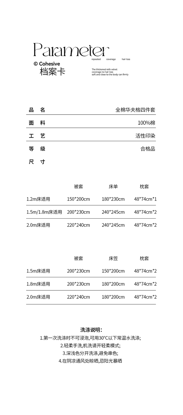 2.0米床四件套 | ¥170.00 |