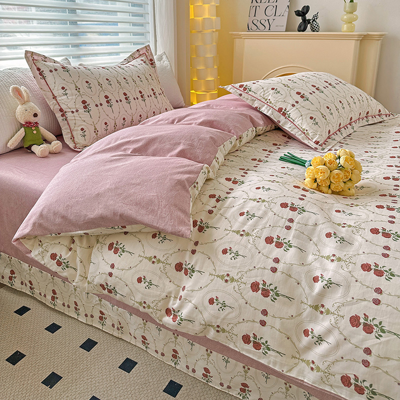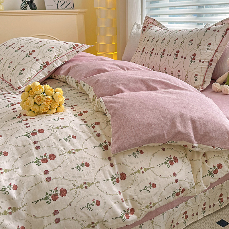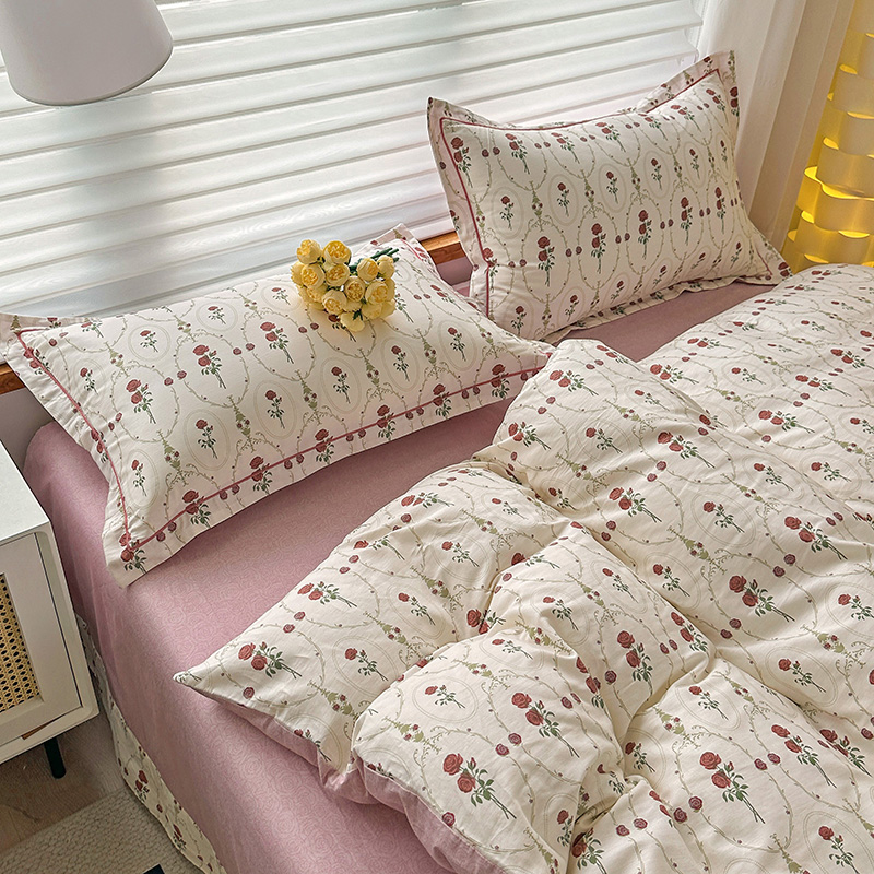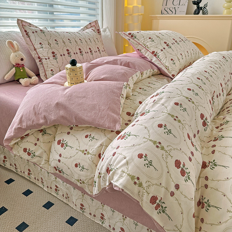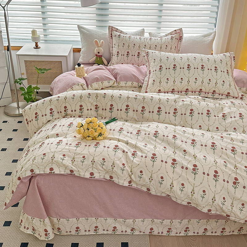 商品名称:乐童 2024网红直播爆款吊边+一字绣工艺款四件套(七)复古玫瑰