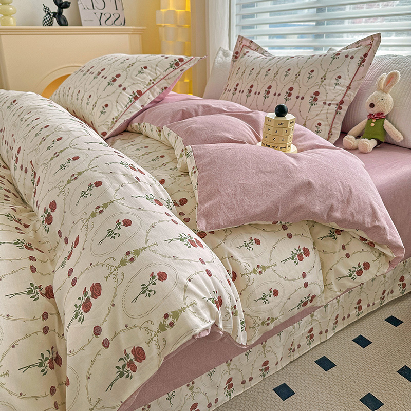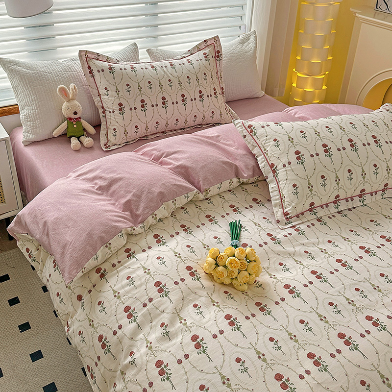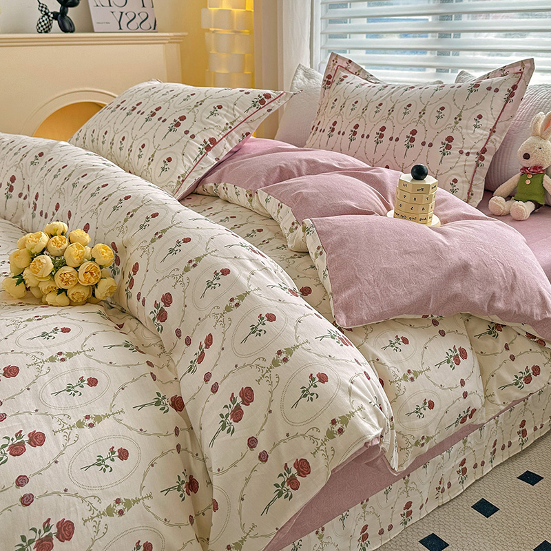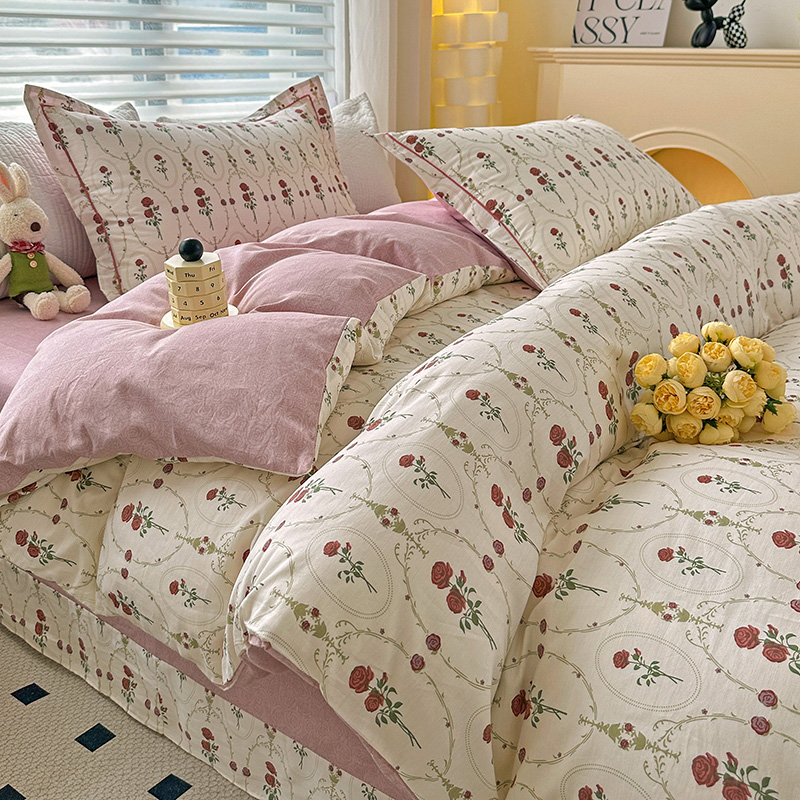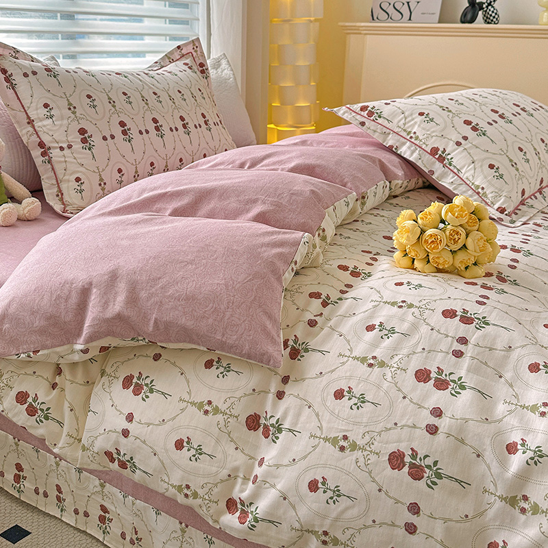 商品名称:乐童 2024网红直播爆款吊边+一字绣工艺款四件套(七)复古玫瑰
