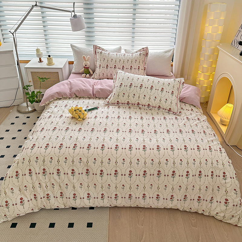 2024新款13372纯棉大版印+绣小清新款四件套 草莓之恋,草莓之恋