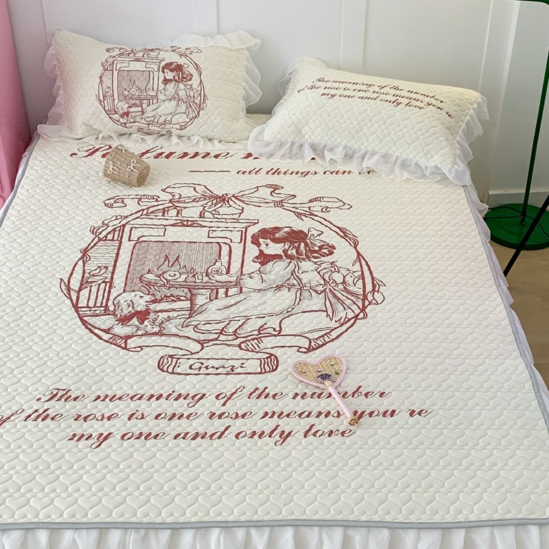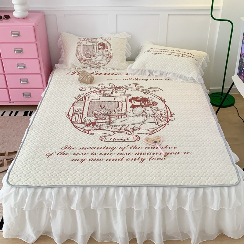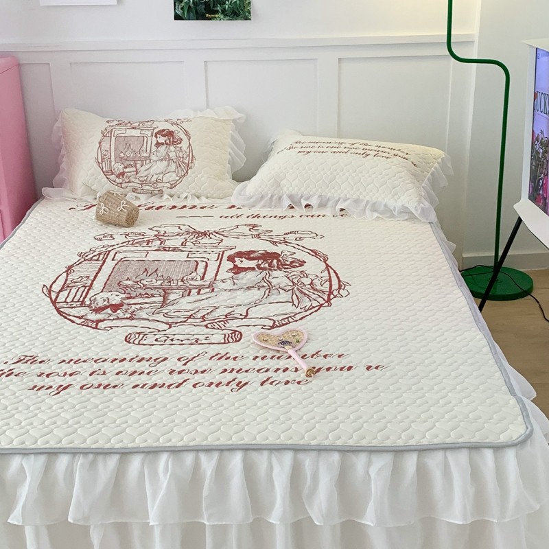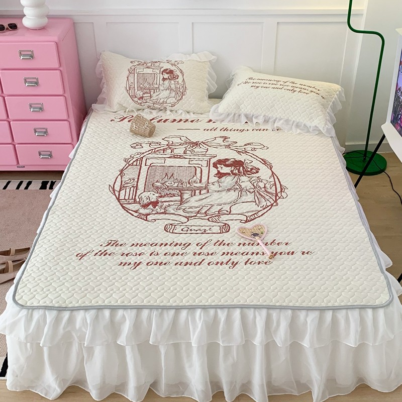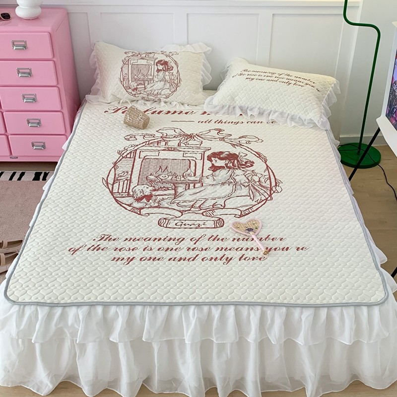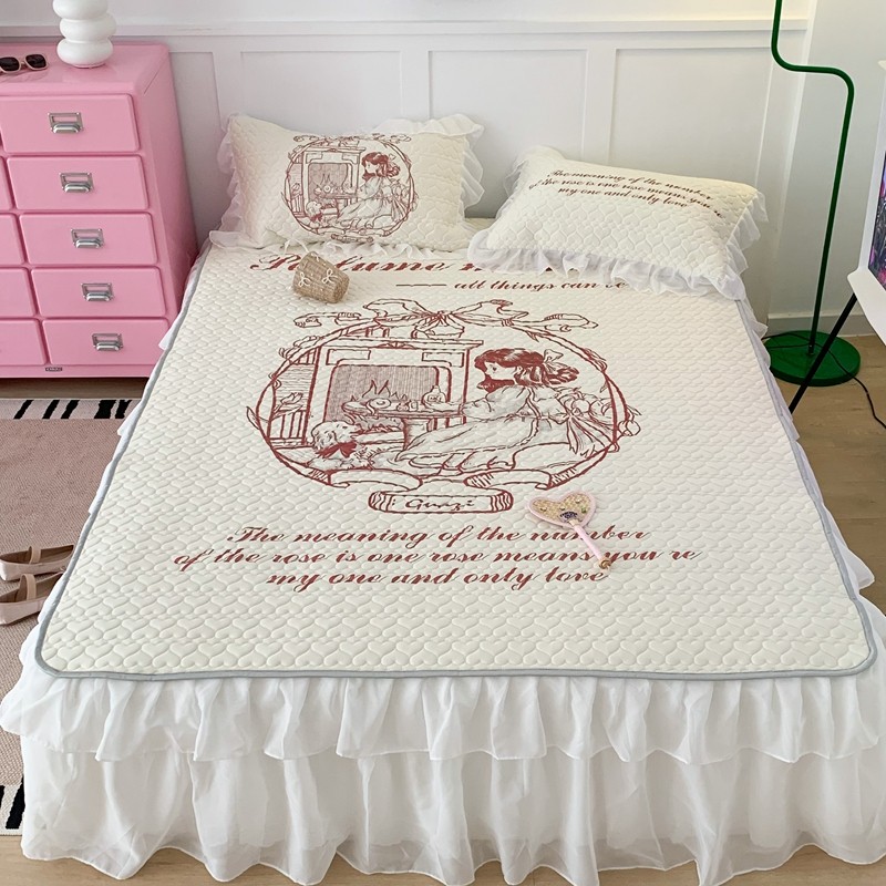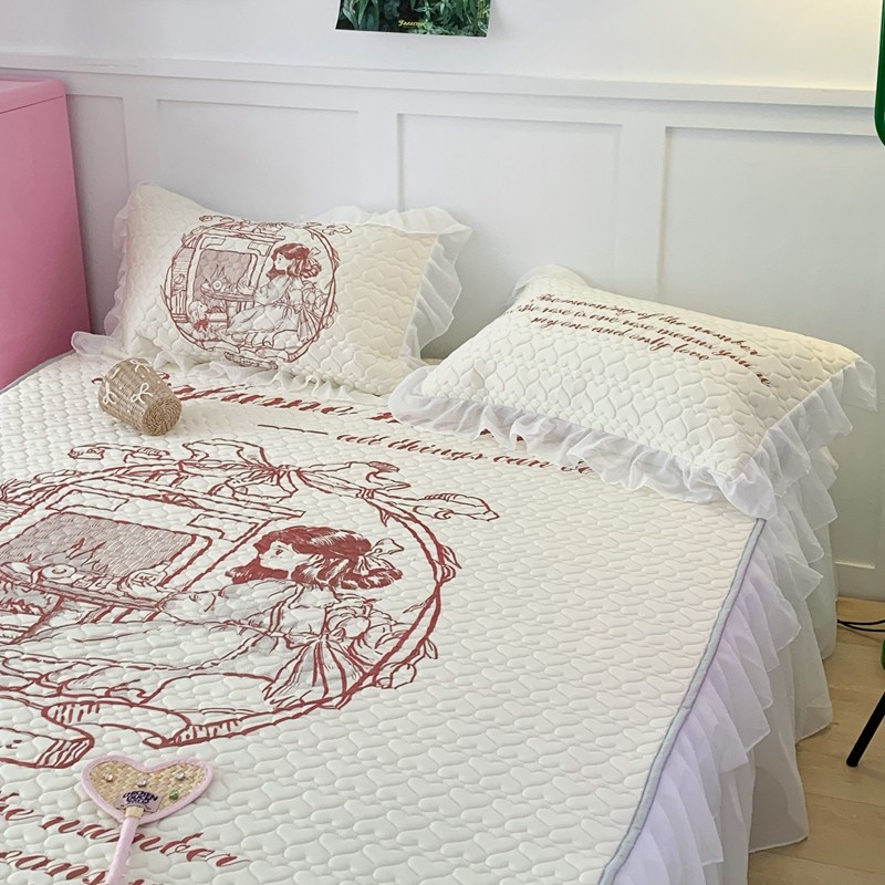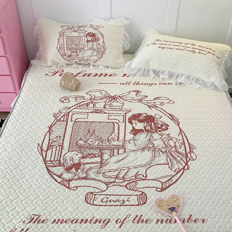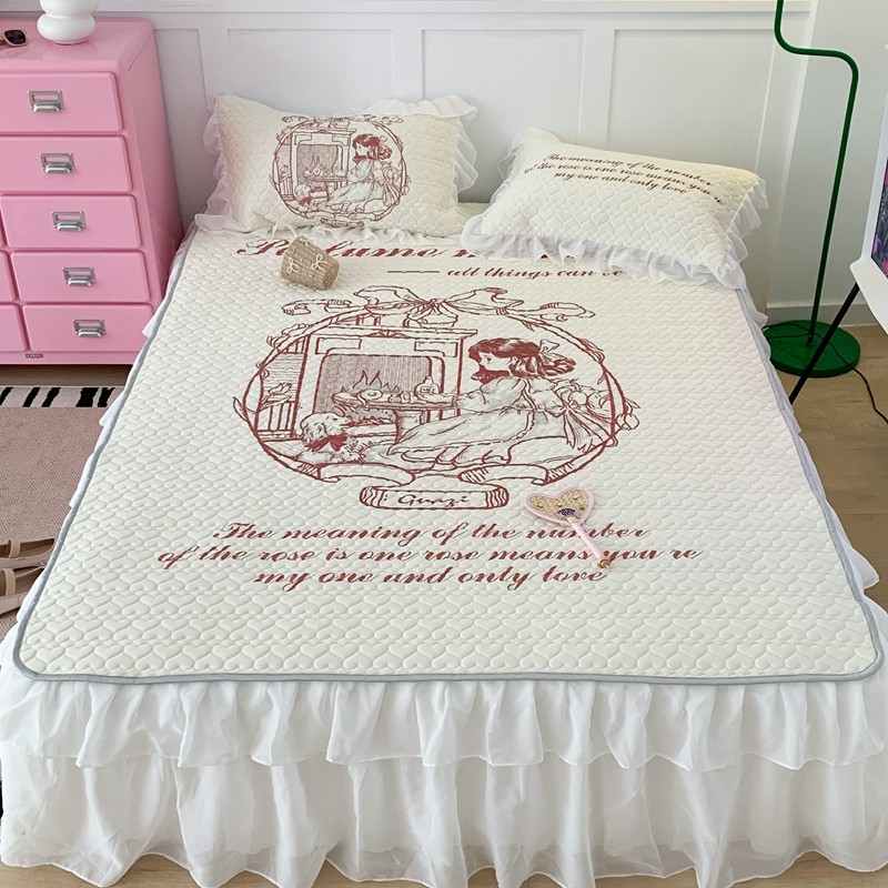 昔可 2023新款第二批双层床裙乳胶三件套 可爱小清新风 复古线条女孩