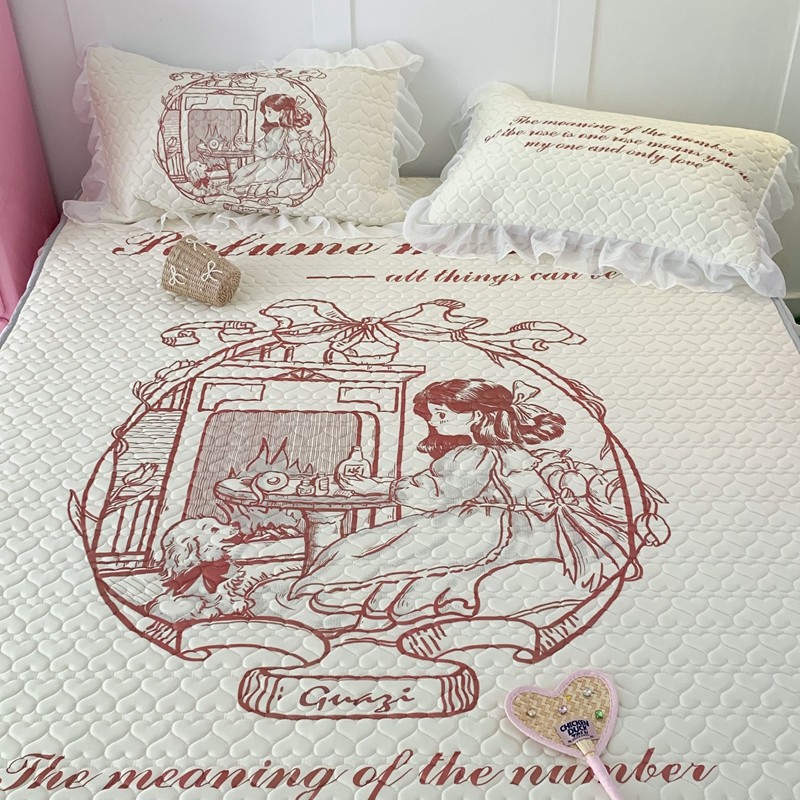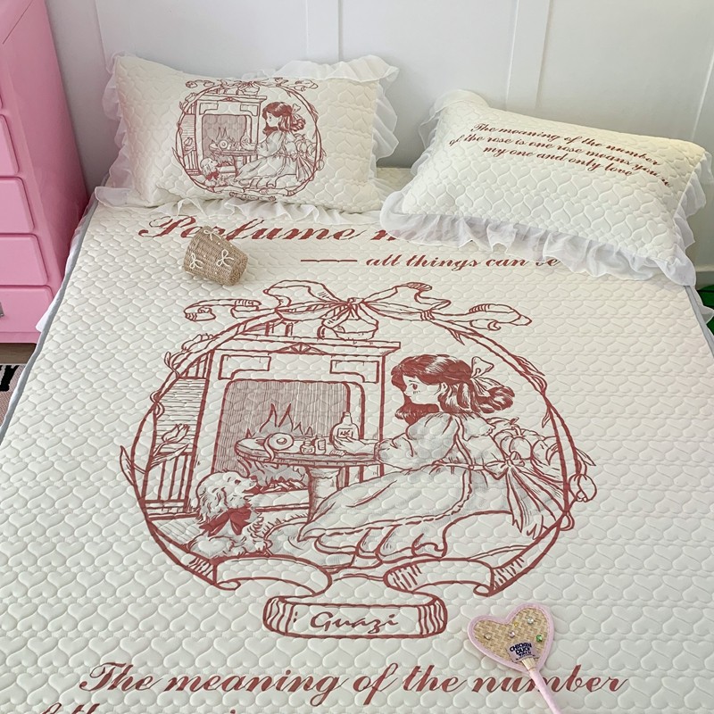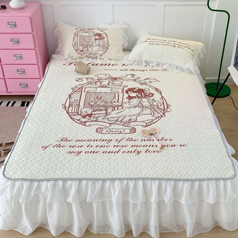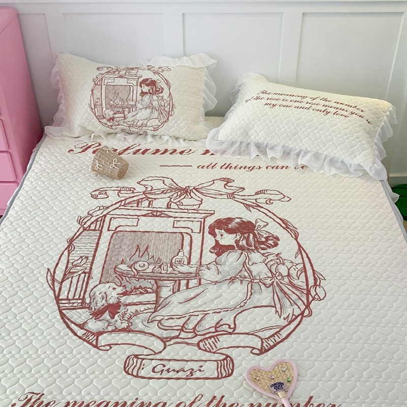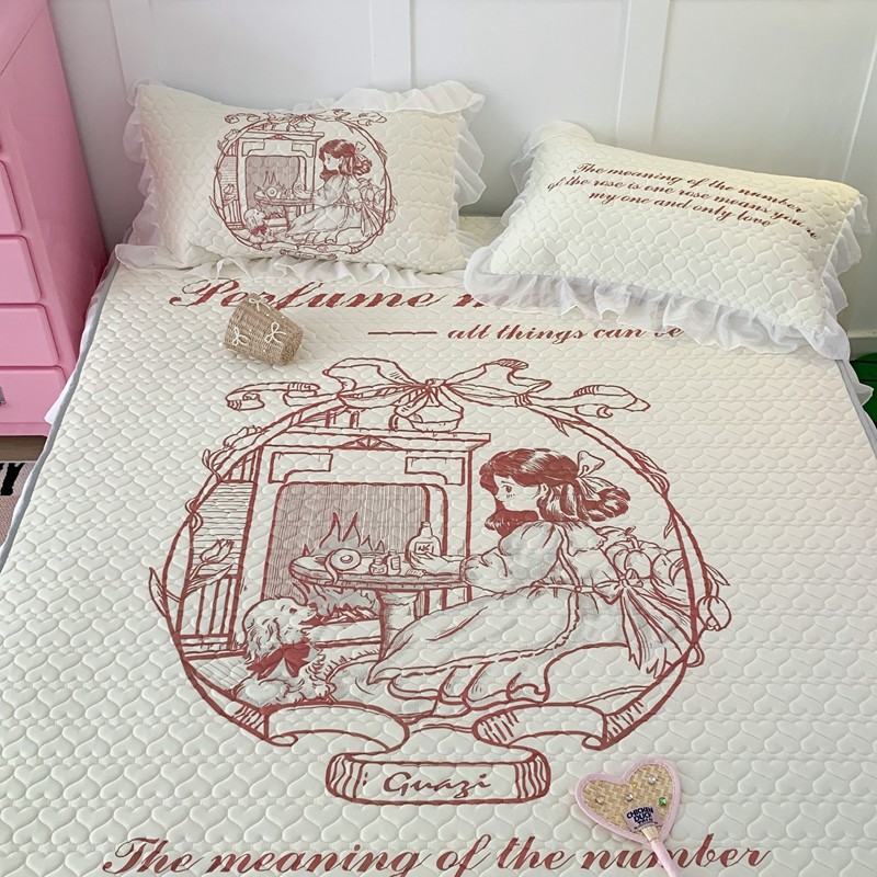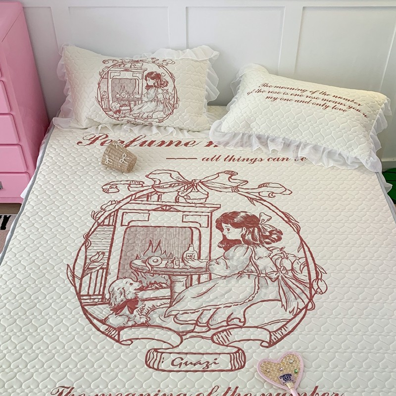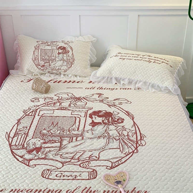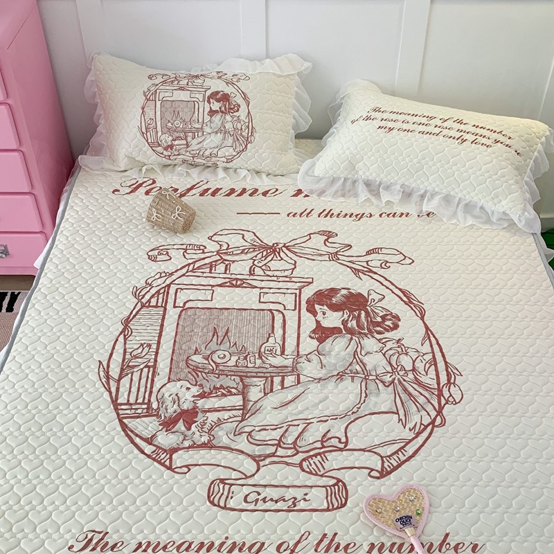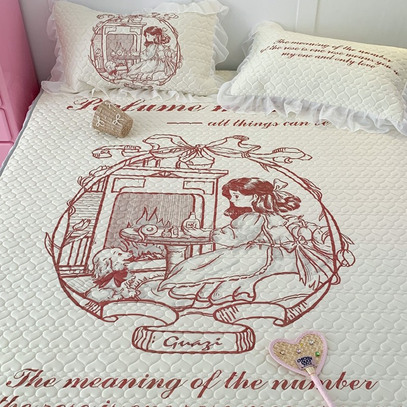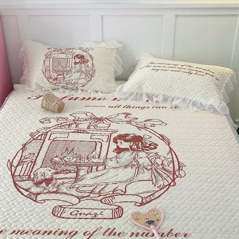 昔可 2023新款第二批双层床裙乳胶三件套 可爱小清新风 复古线条女孩