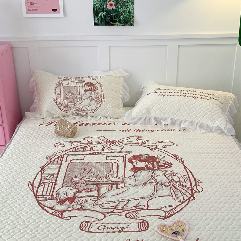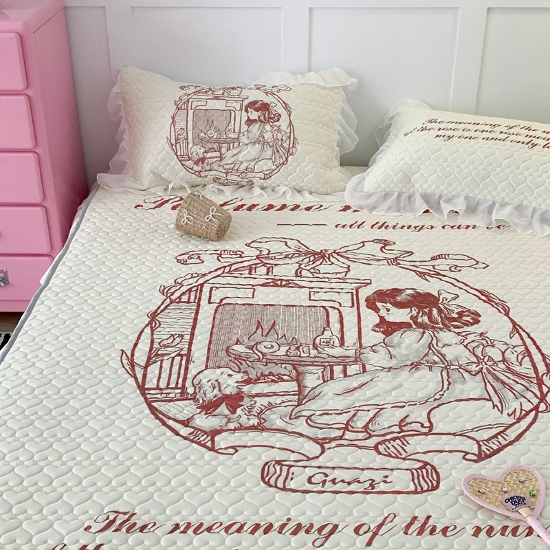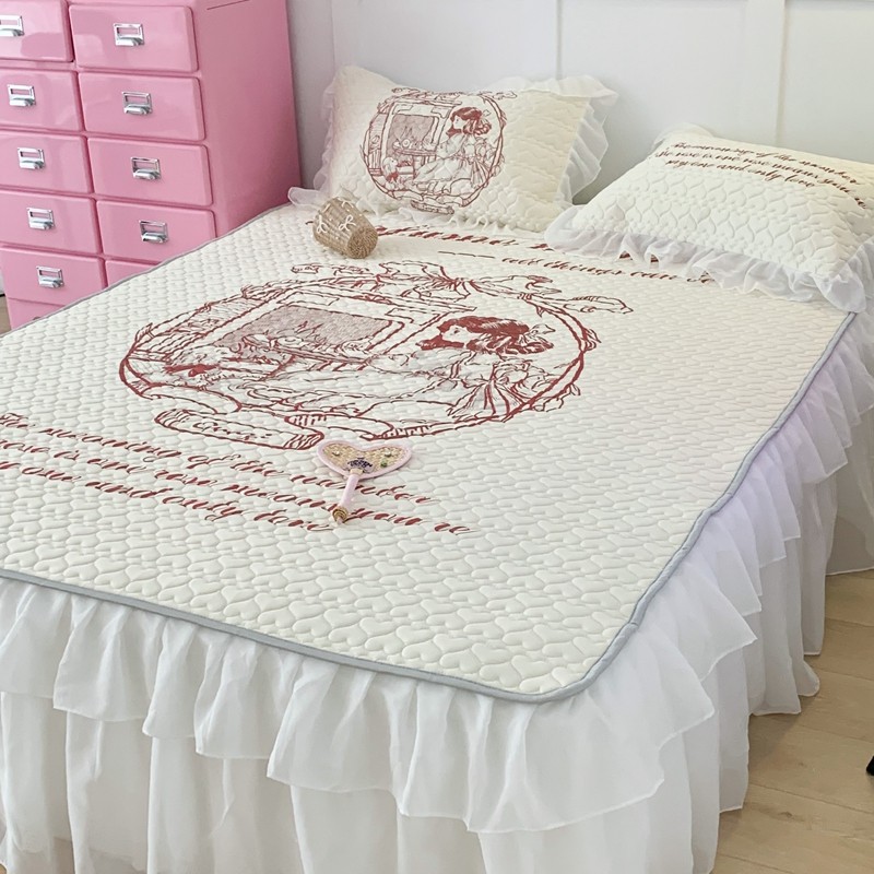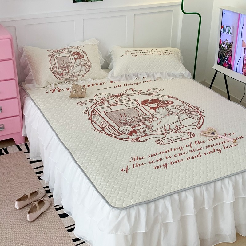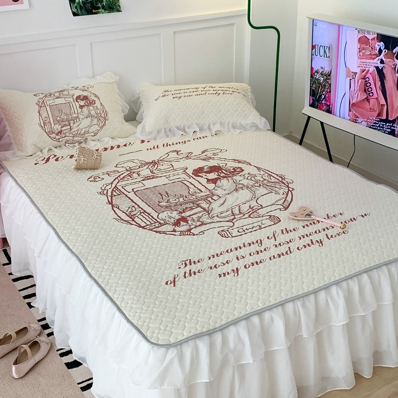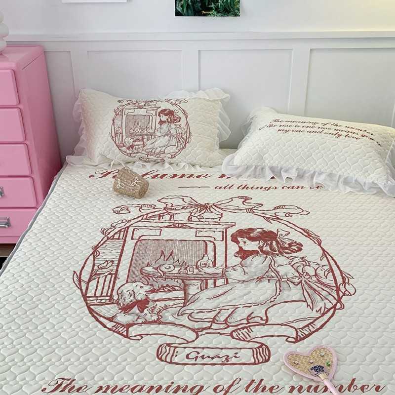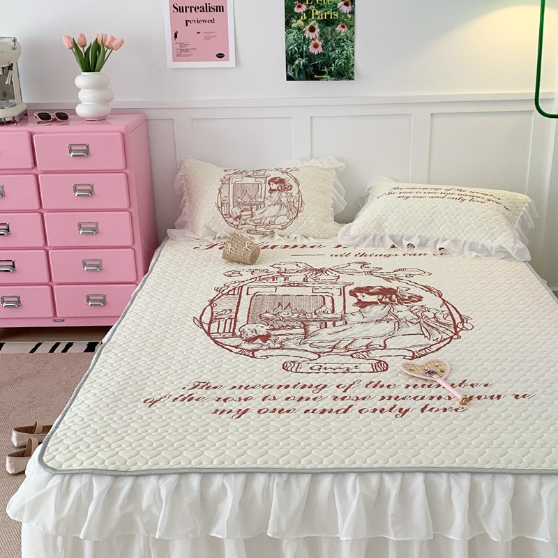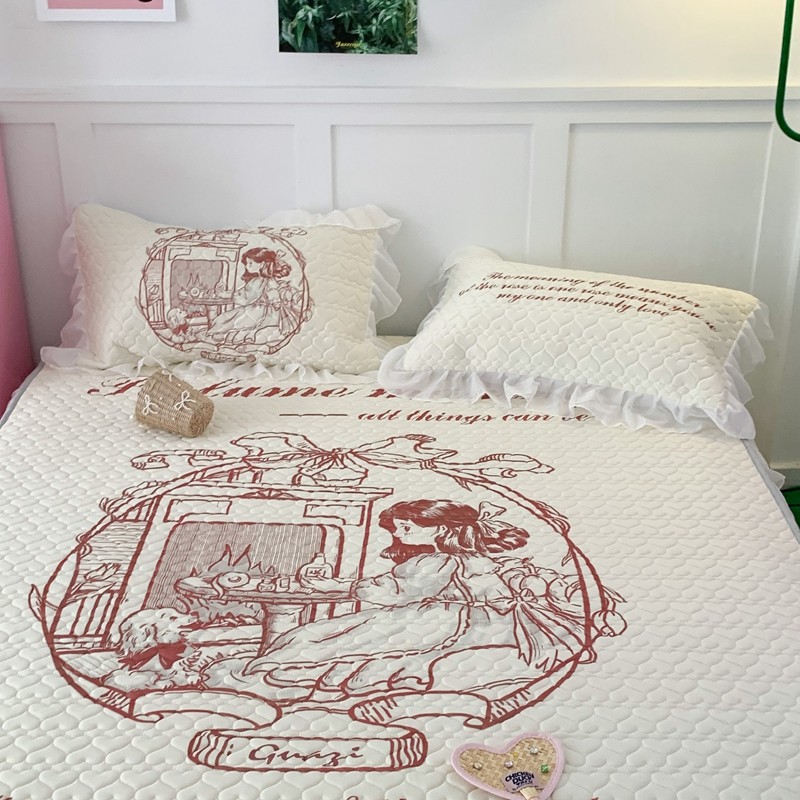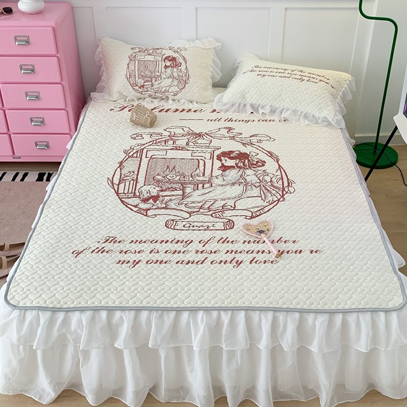 昔可 2023新款第二批双层床裙乳胶三件套 可爱小清新风 复古线条女孩