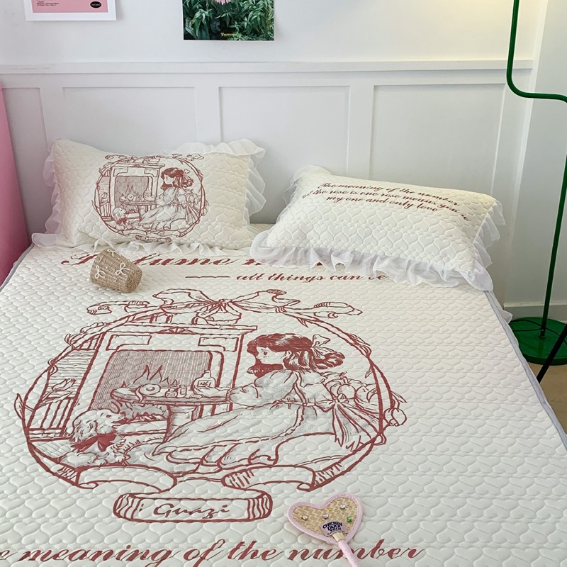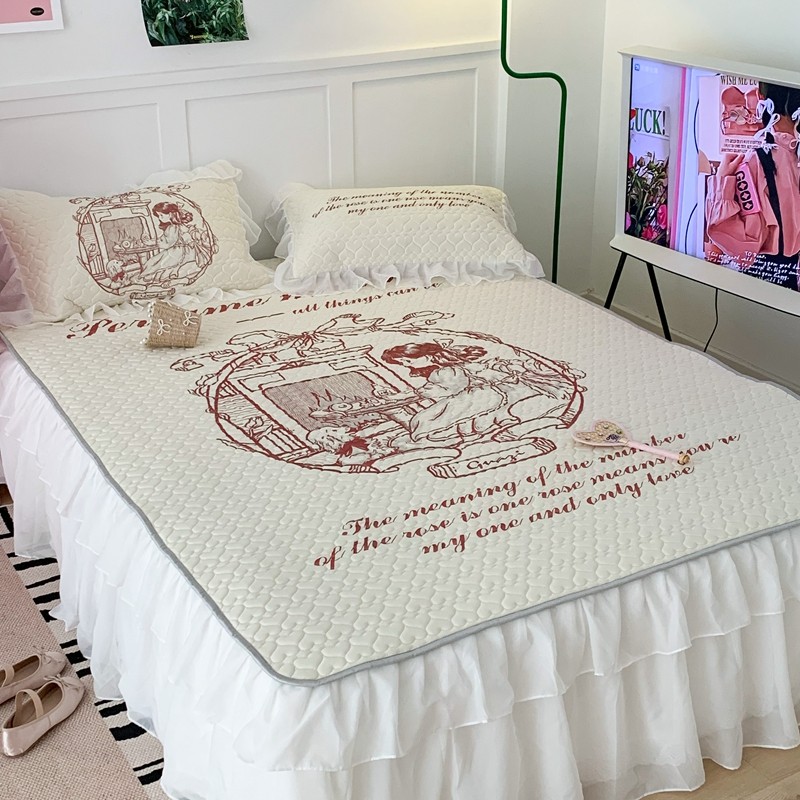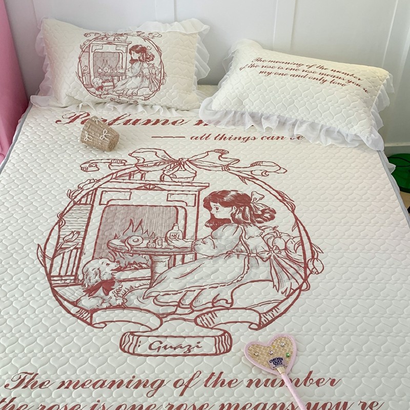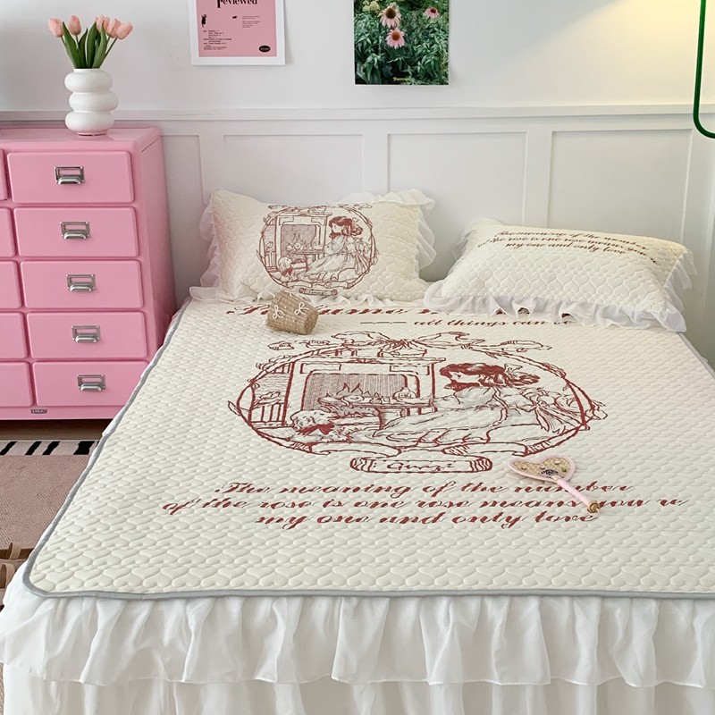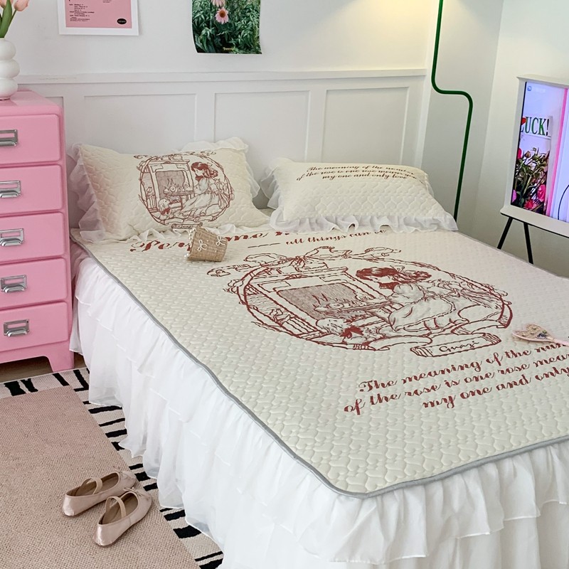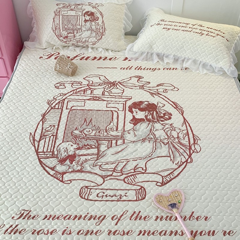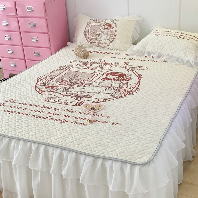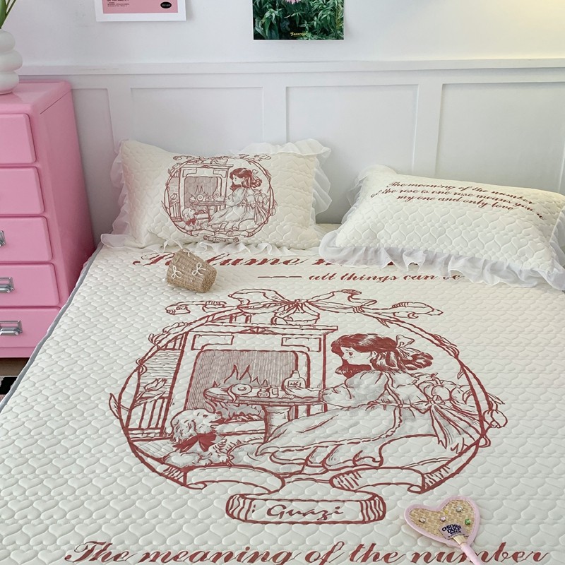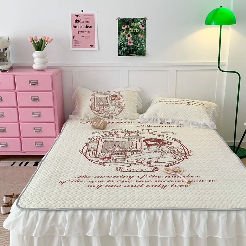 昔可 2023新款第二批双层床裙乳胶三件套 可爱小清新风 复古线条女孩