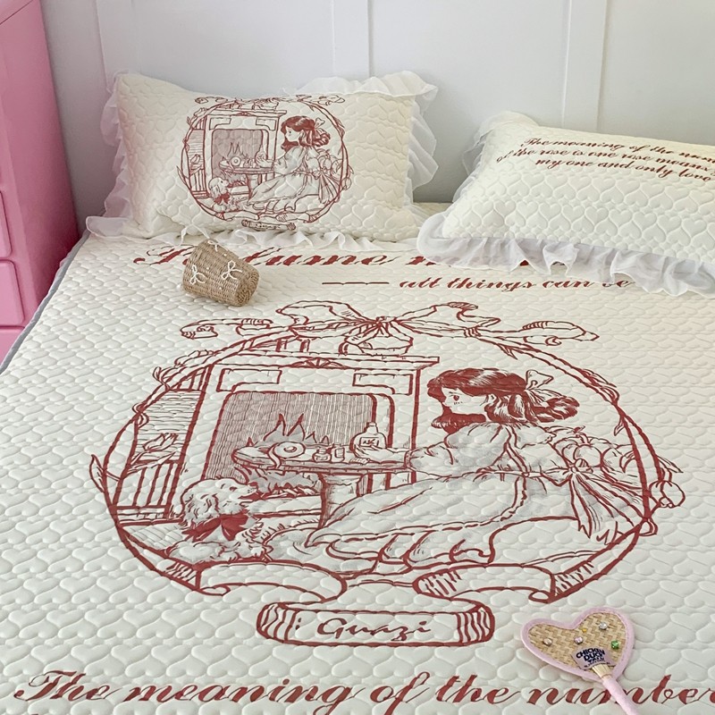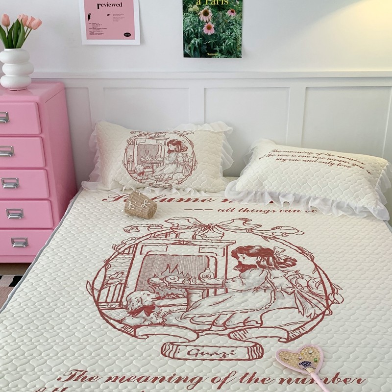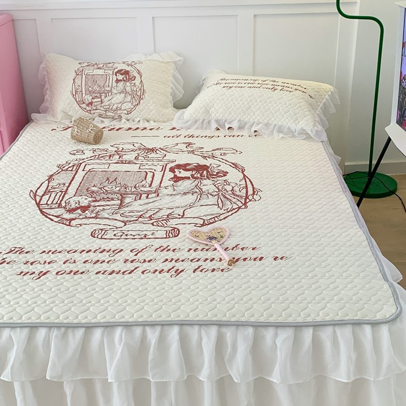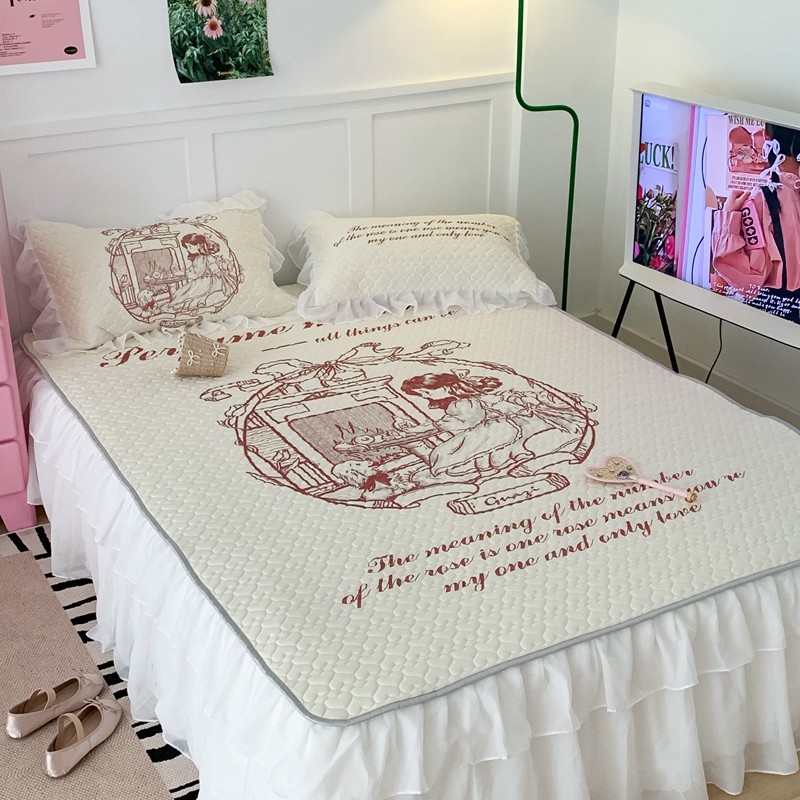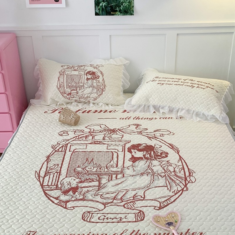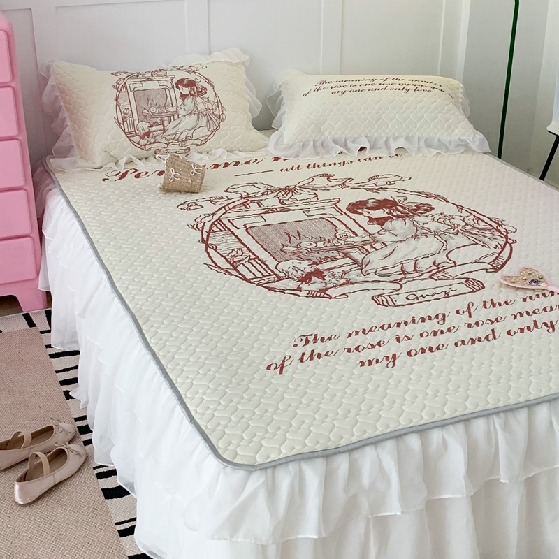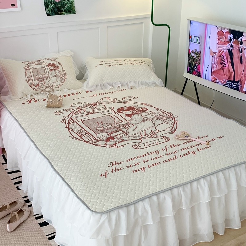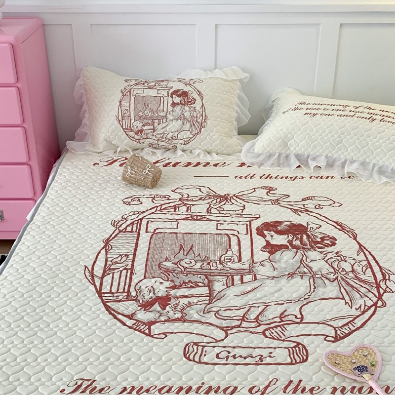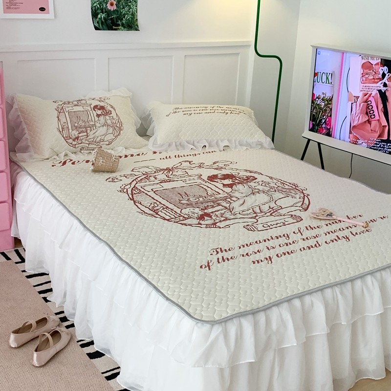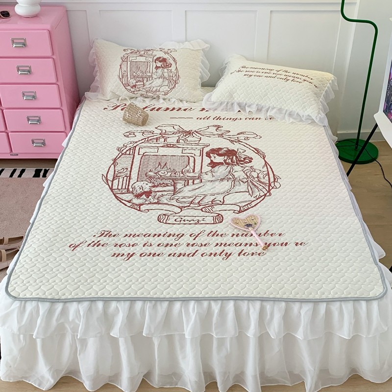 昔可 2023新款第二批双层床裙乳胶三件套 可爱小清新风 复古线条女孩