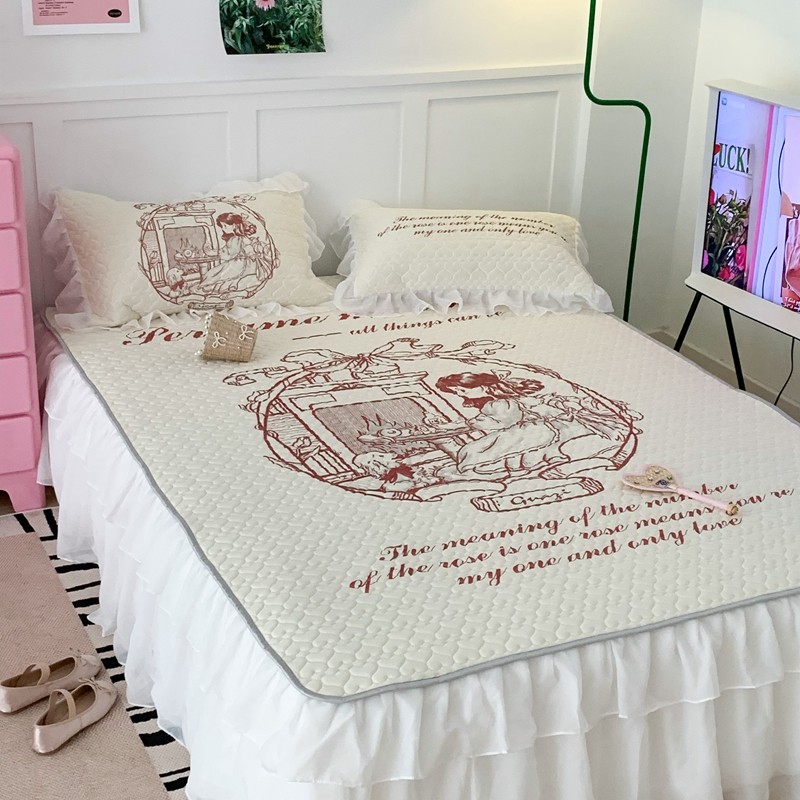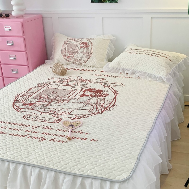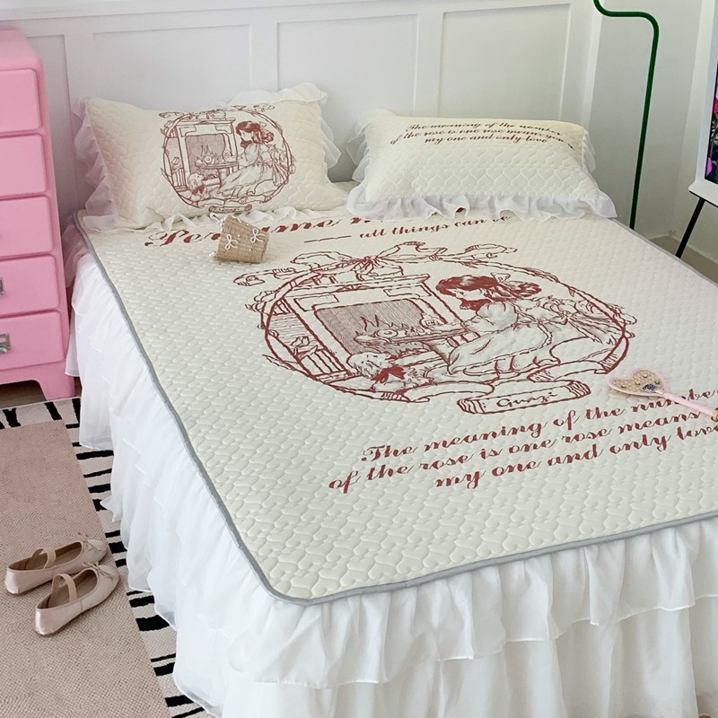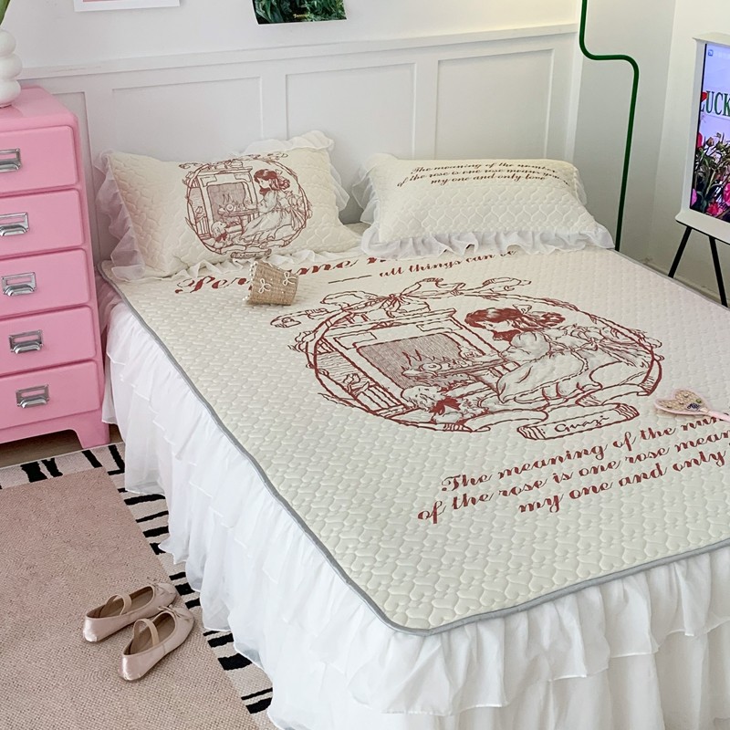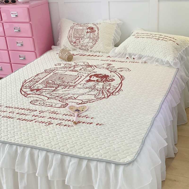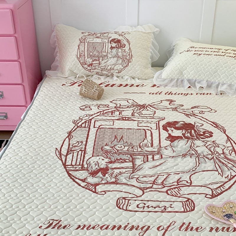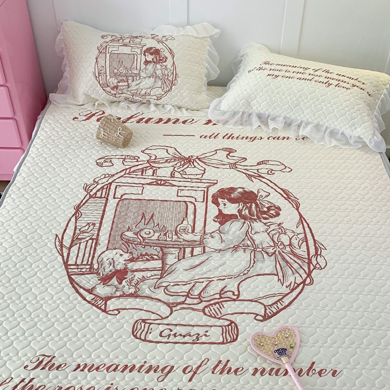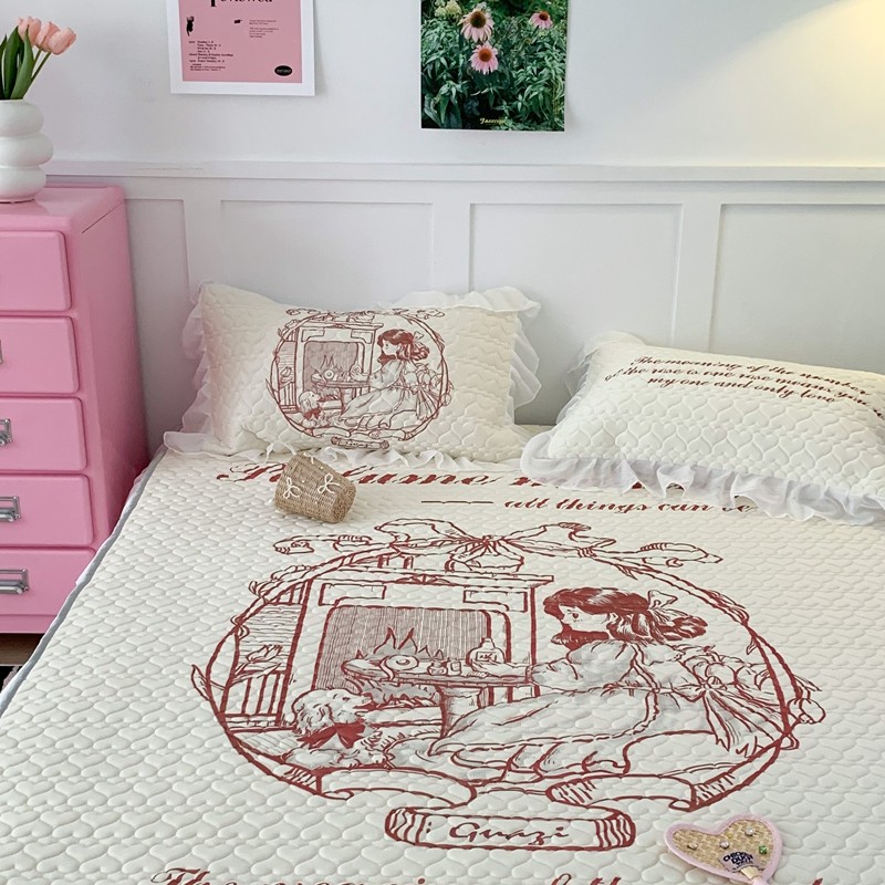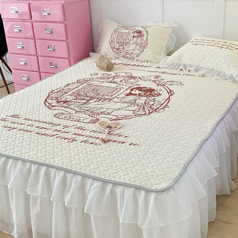 昔可 2023新款第二批双层床裙乳胶三件套 可爱小清新风 复古线条女孩