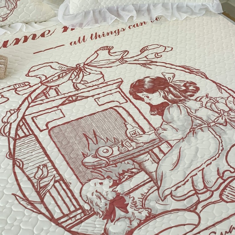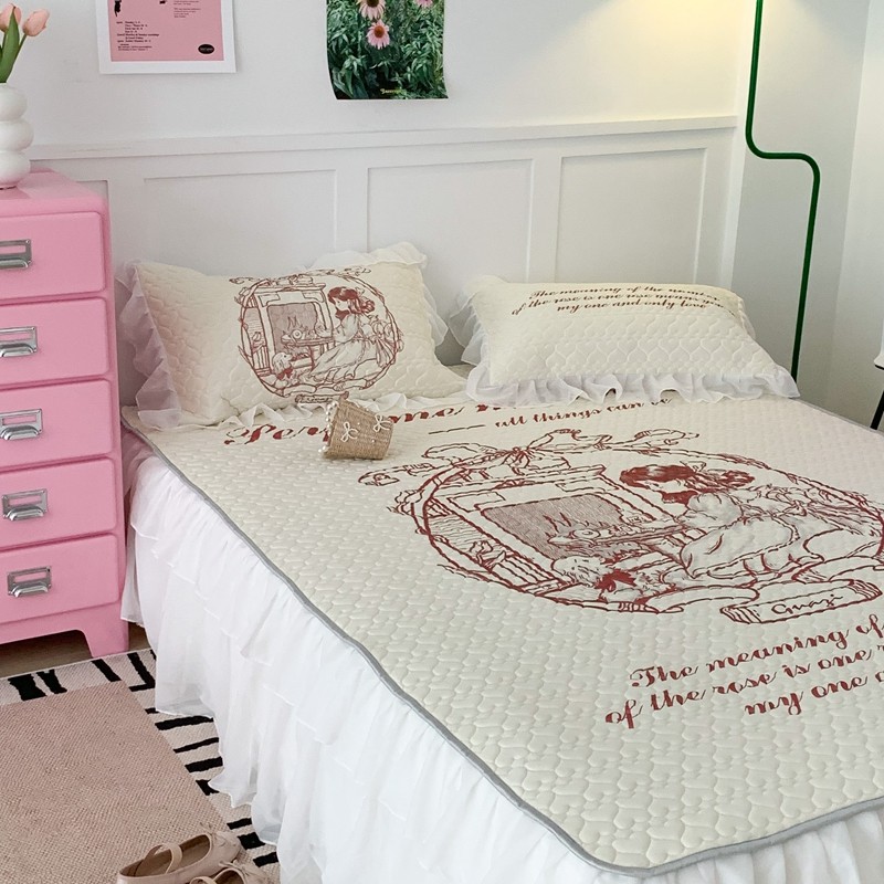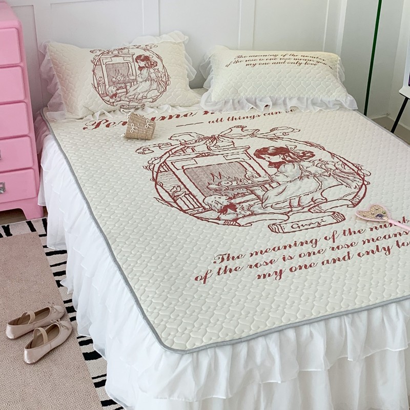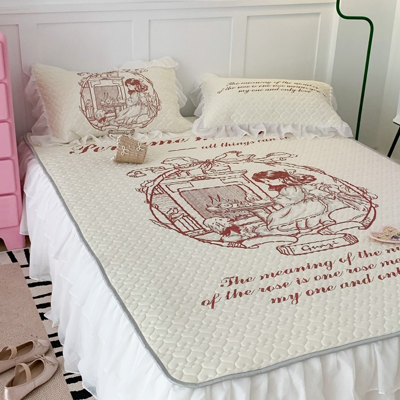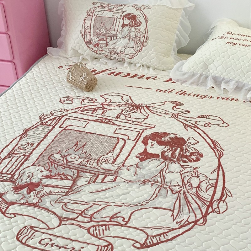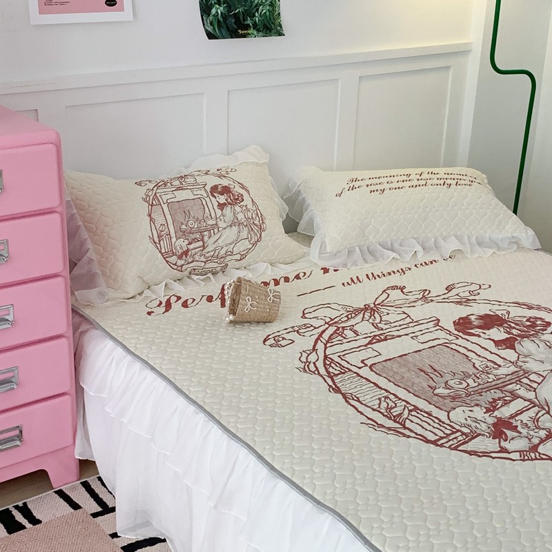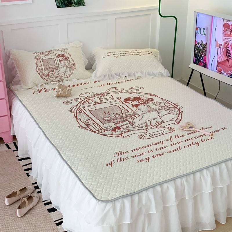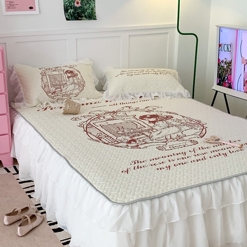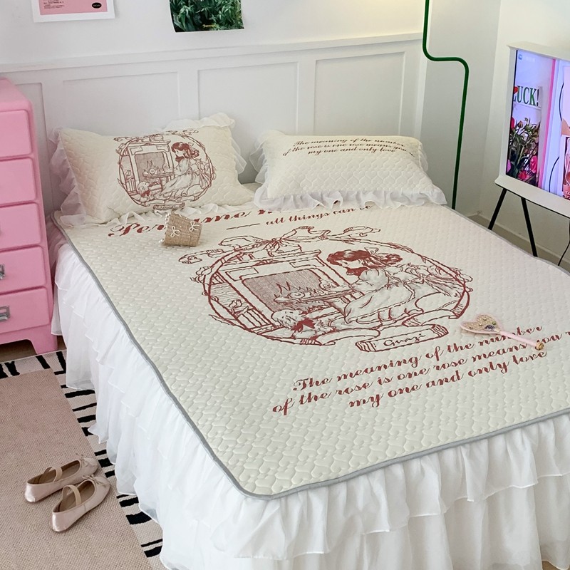 昔可 2023新款第二批双层床裙乳胶三件套 可爱小清新风 复古线条女孩
