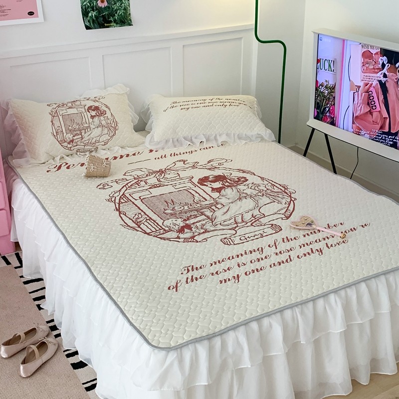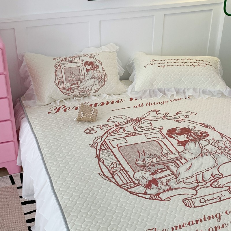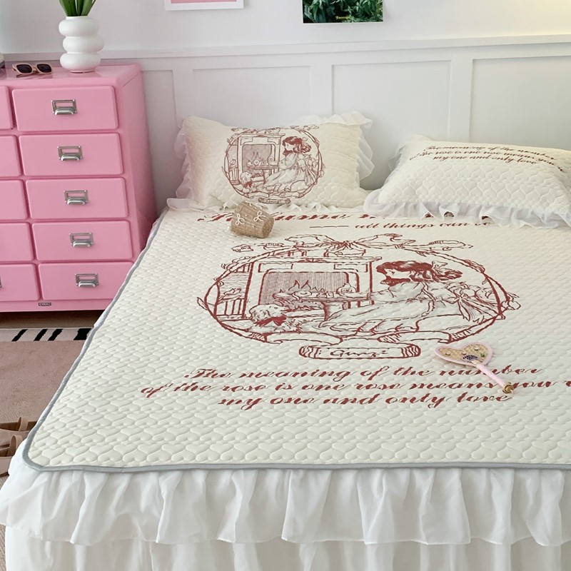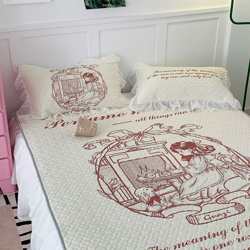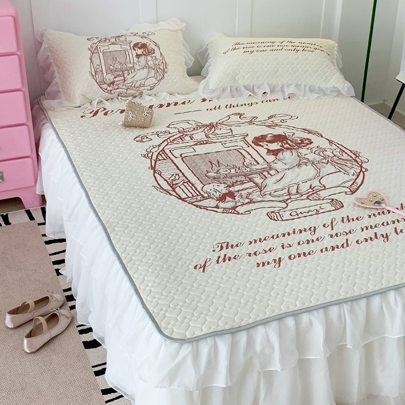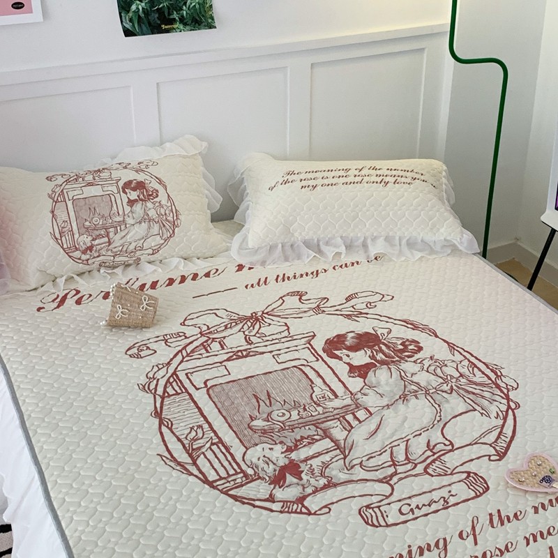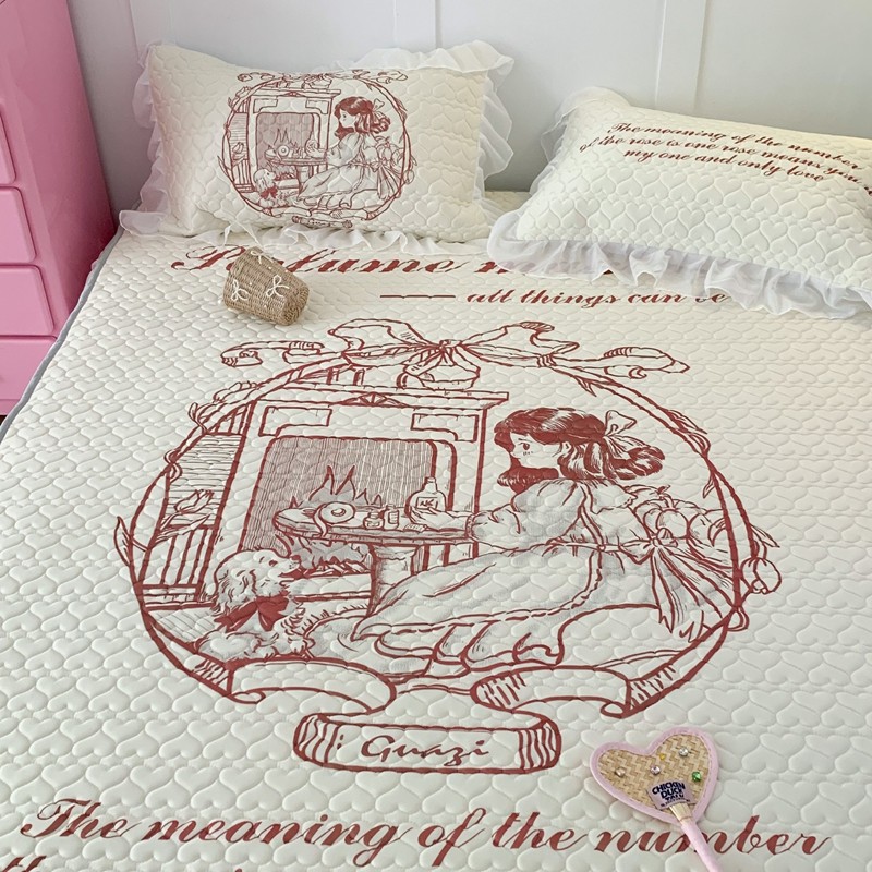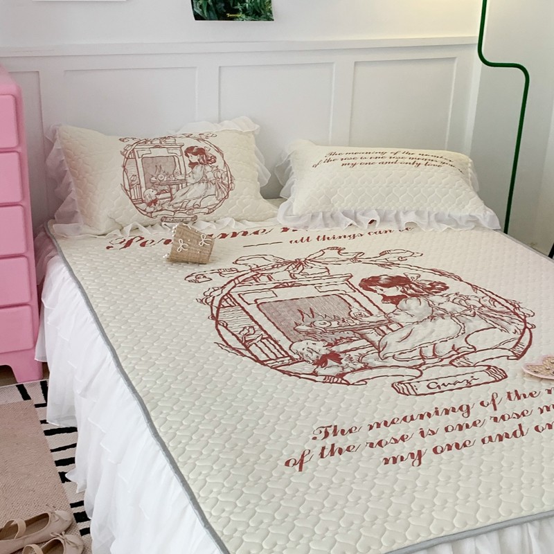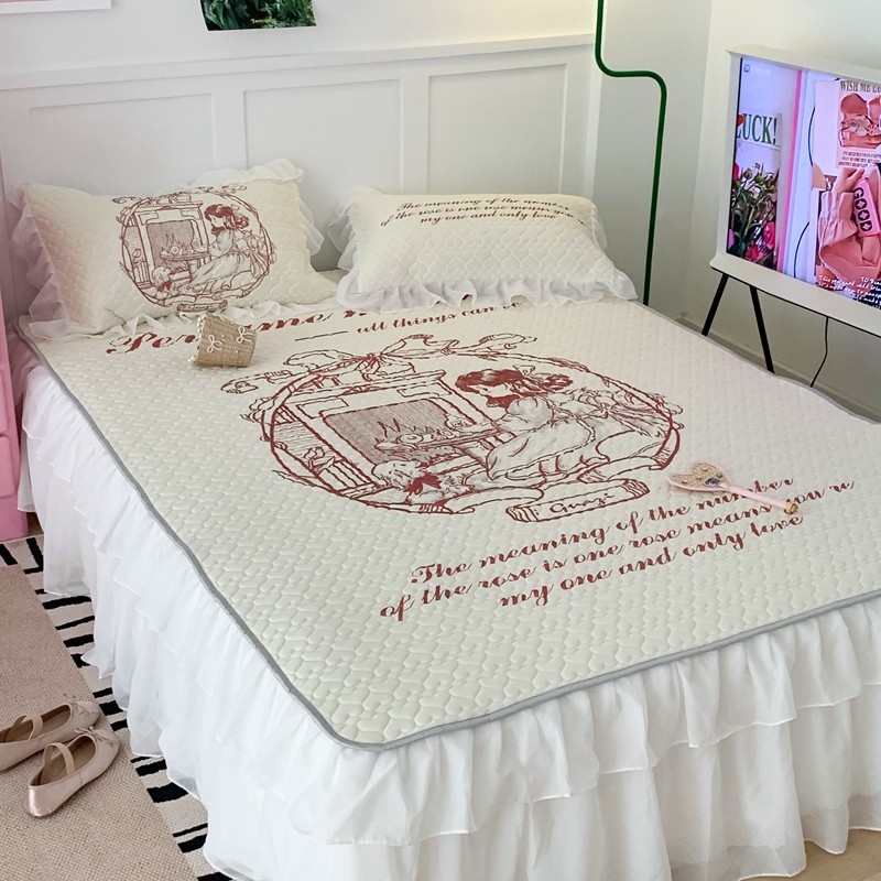 昔可 2023新款第二批双层床裙乳胶三件套 可爱小清新风 复古线条女孩