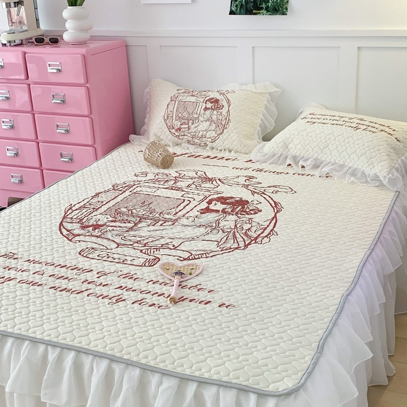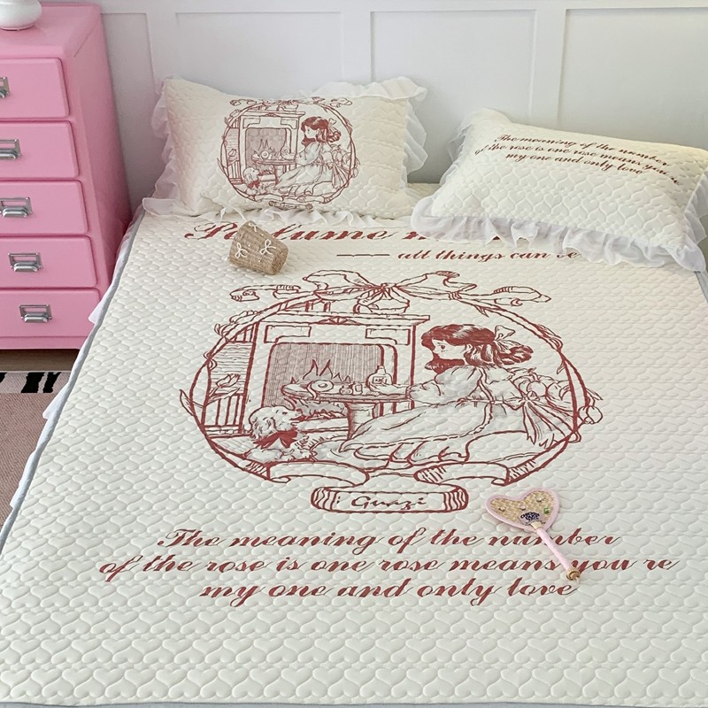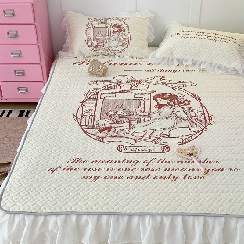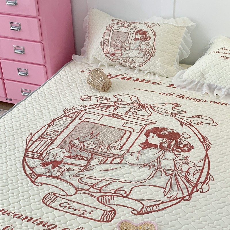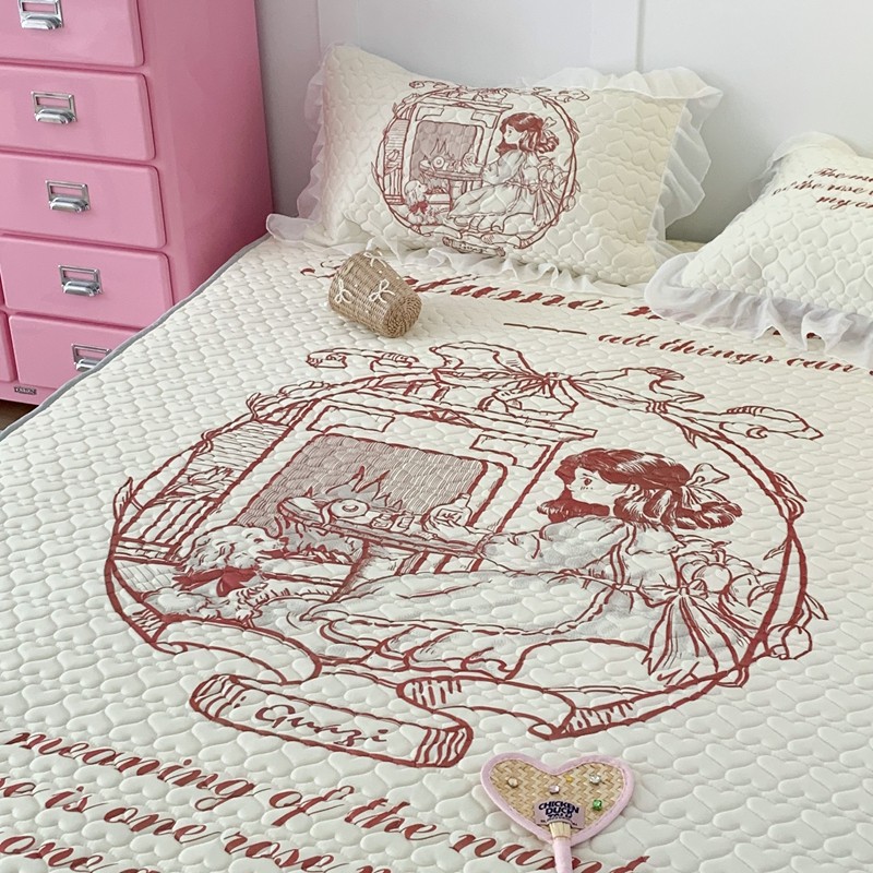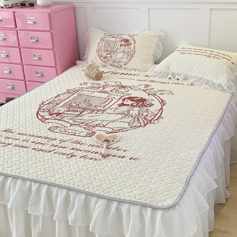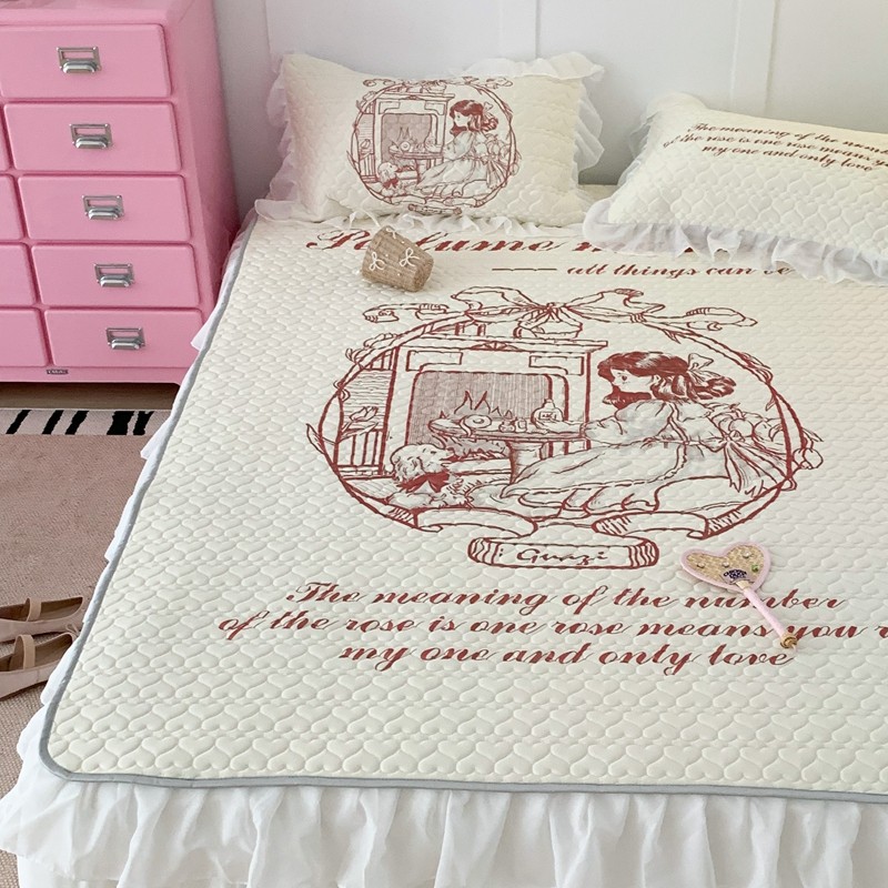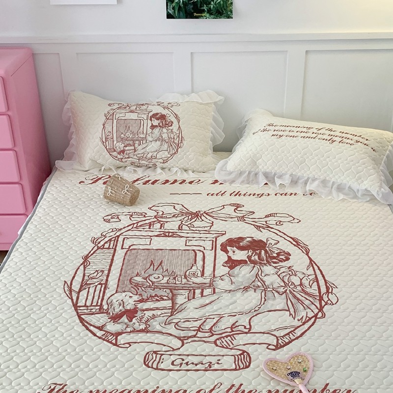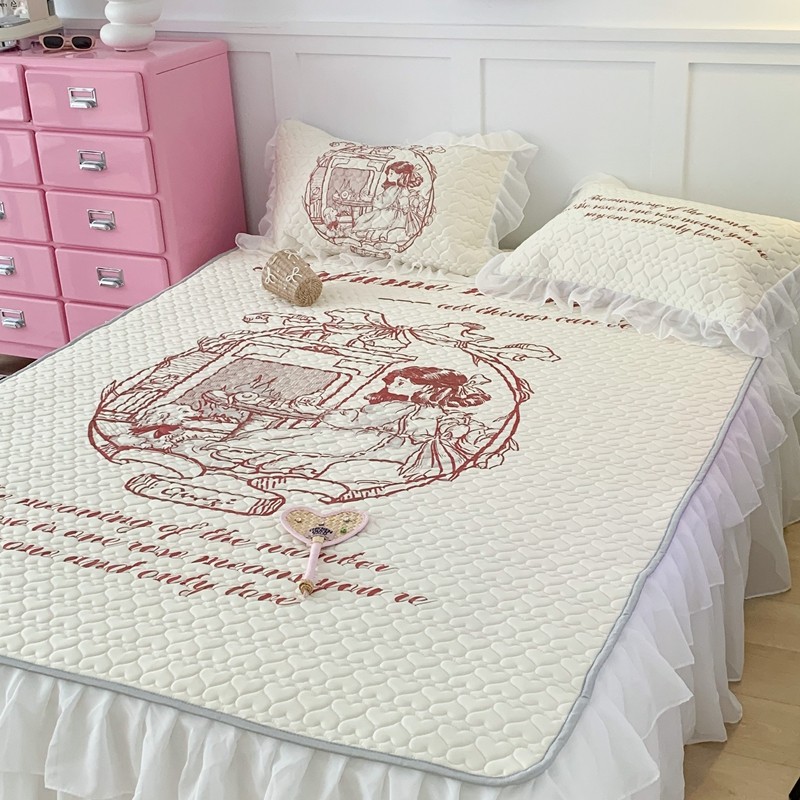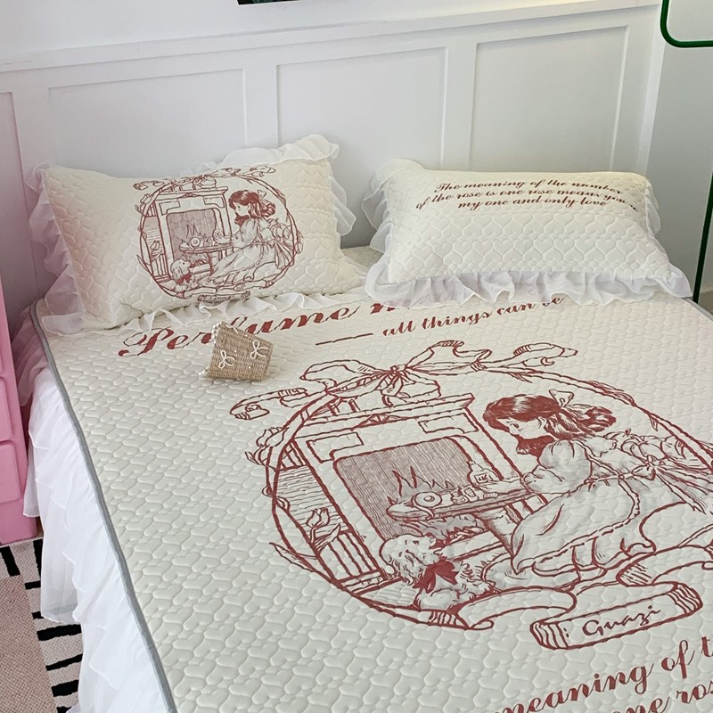昔可 2023新款第二批双层床裙乳胶三件套 可爱小清新风 复古线条女孩