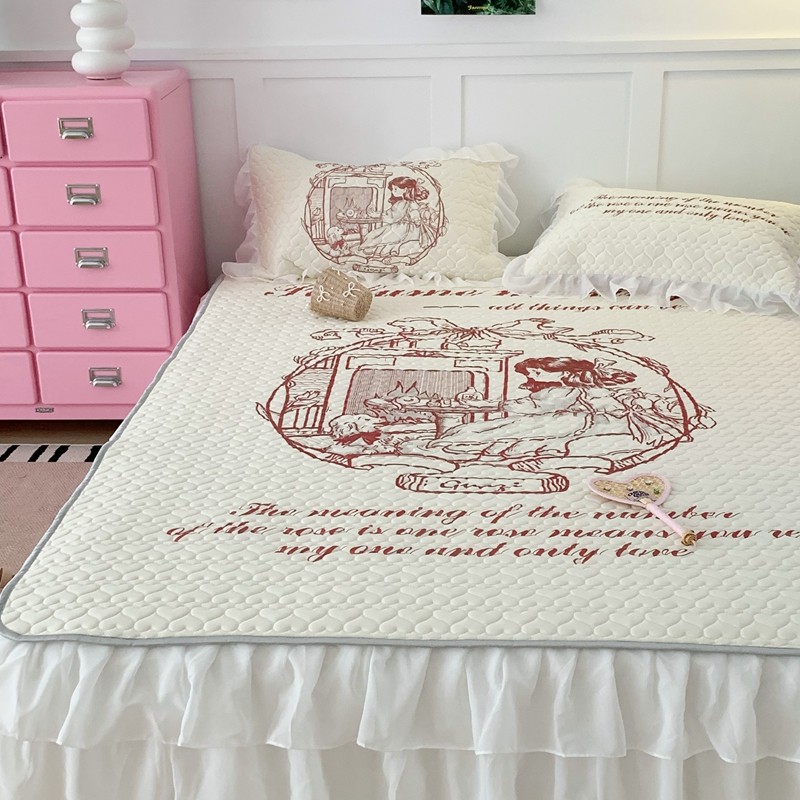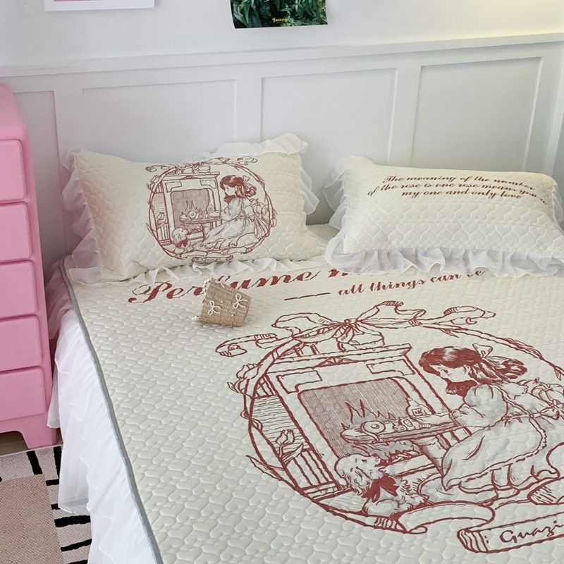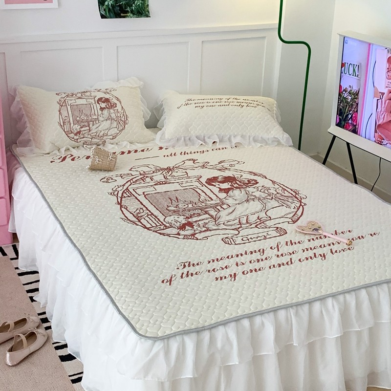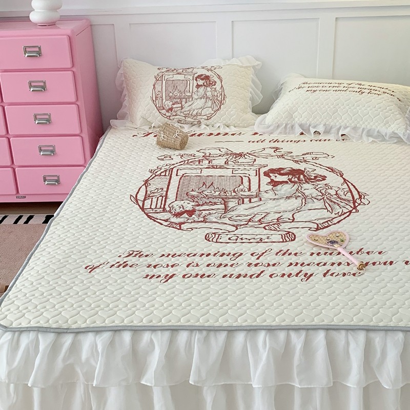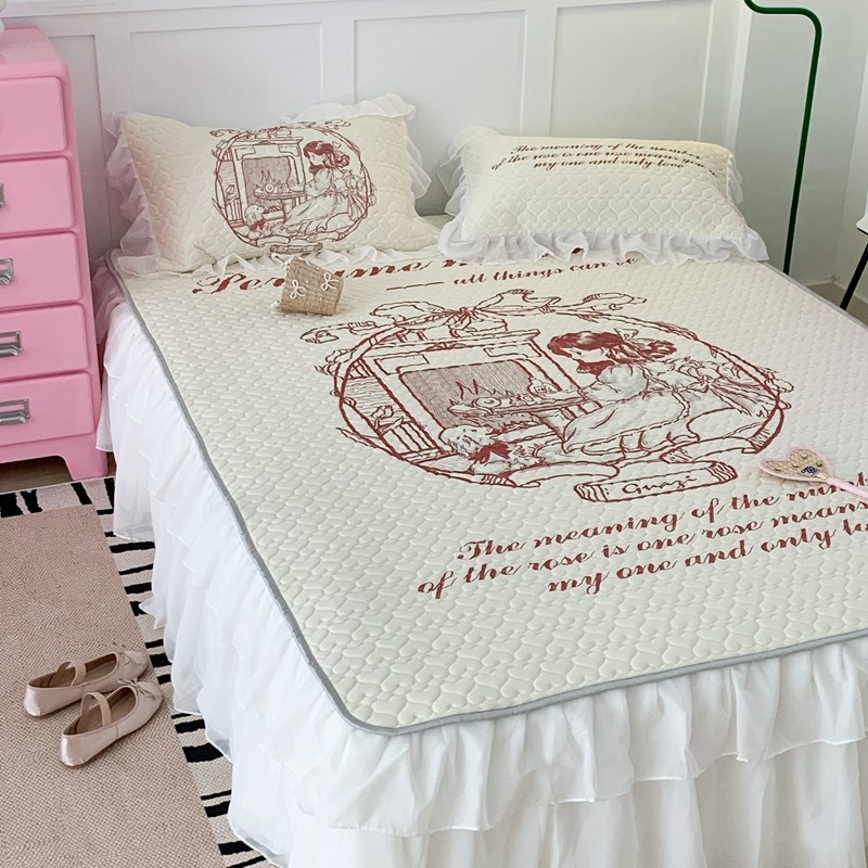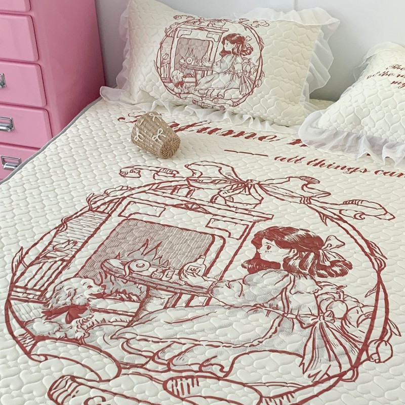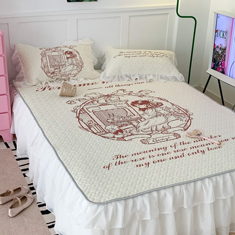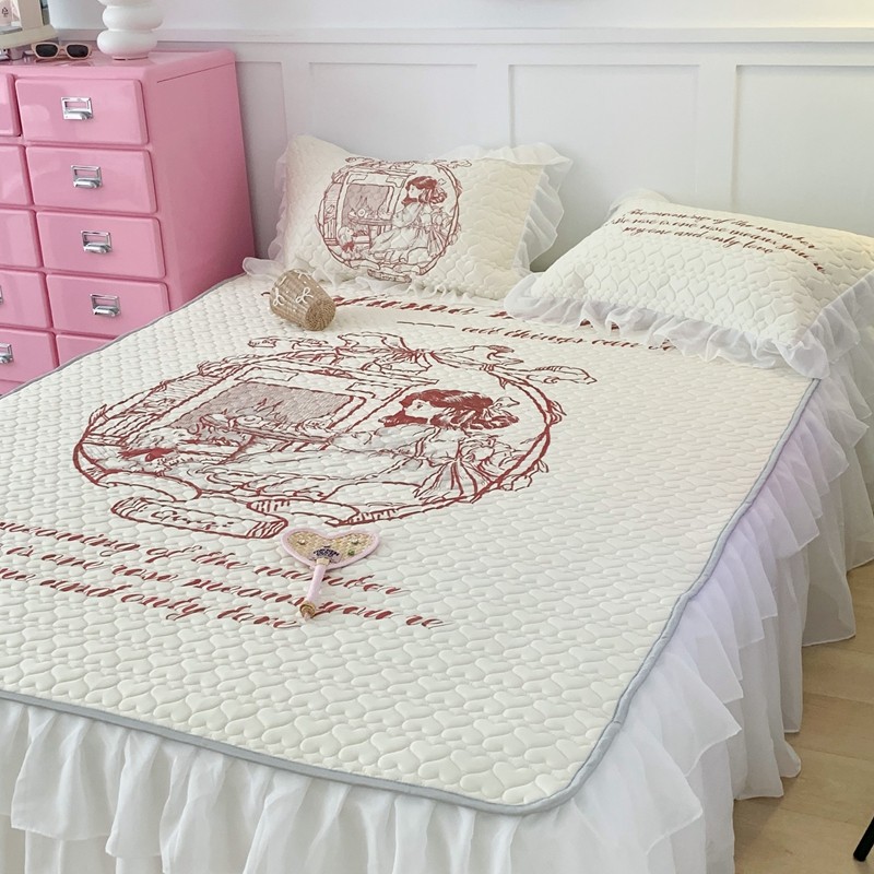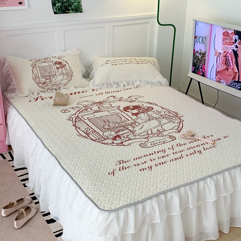 昔可 2023新款第二批双层床裙乳胶三件套 可爱小清新风 复古线条女孩