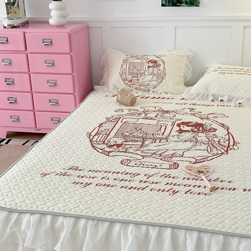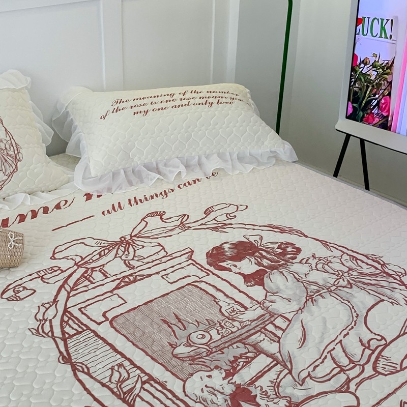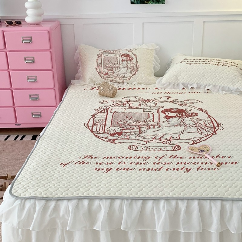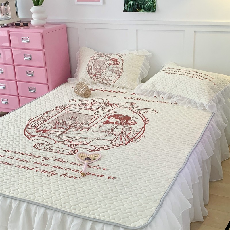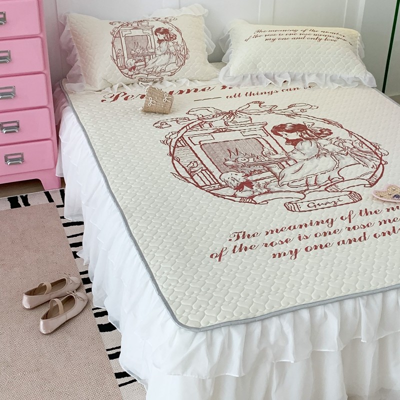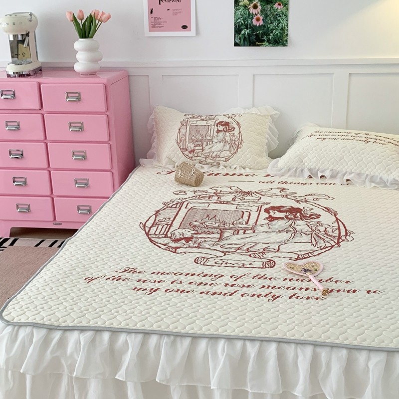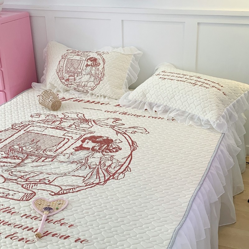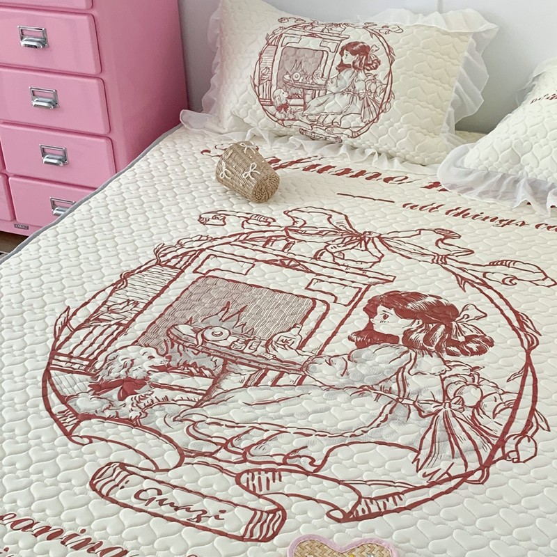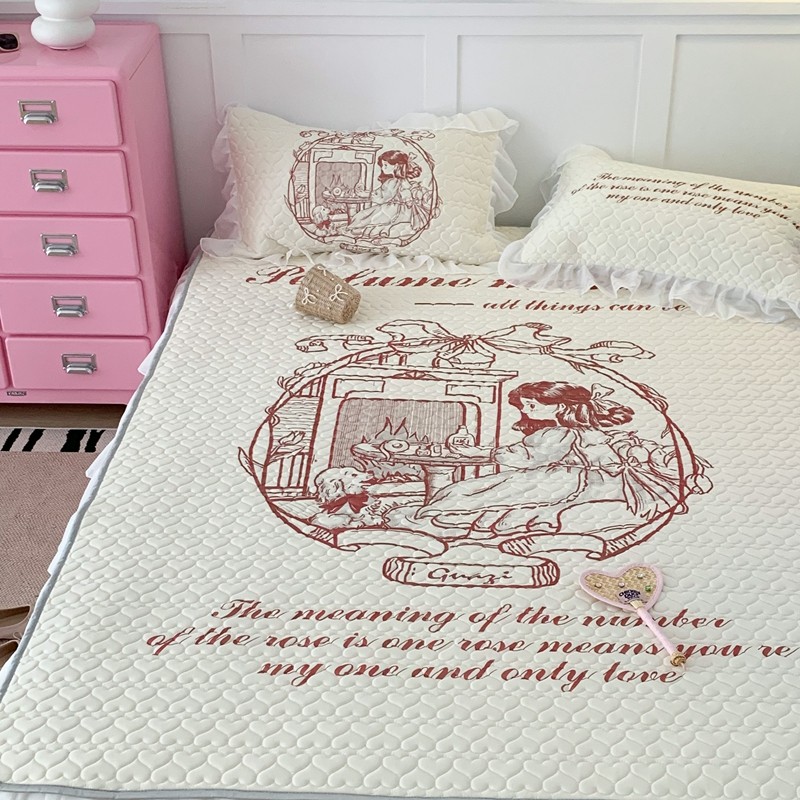 昔可 2023新款第二批双层床裙乳胶三件套 可爱小清新风 复古线条女孩