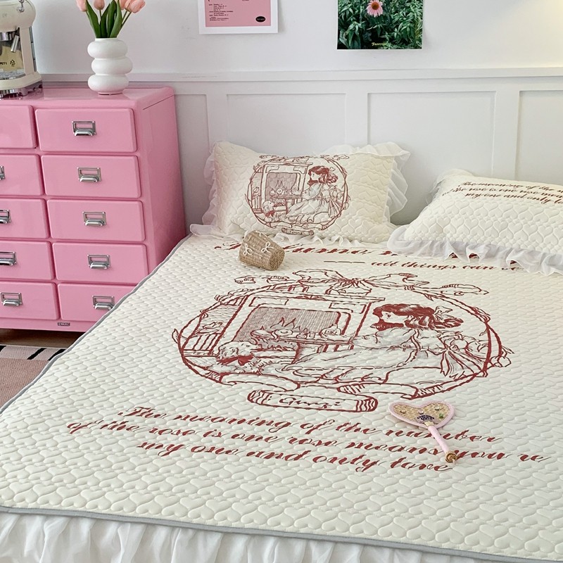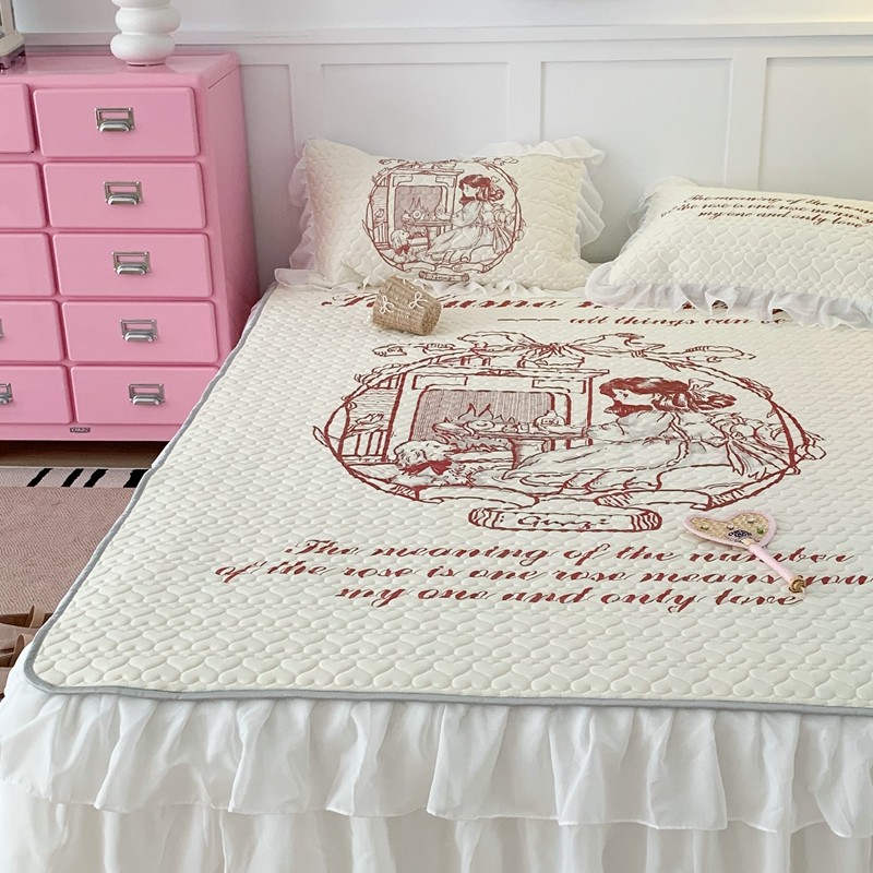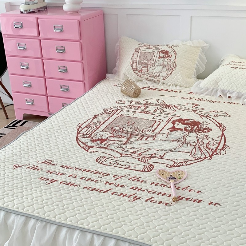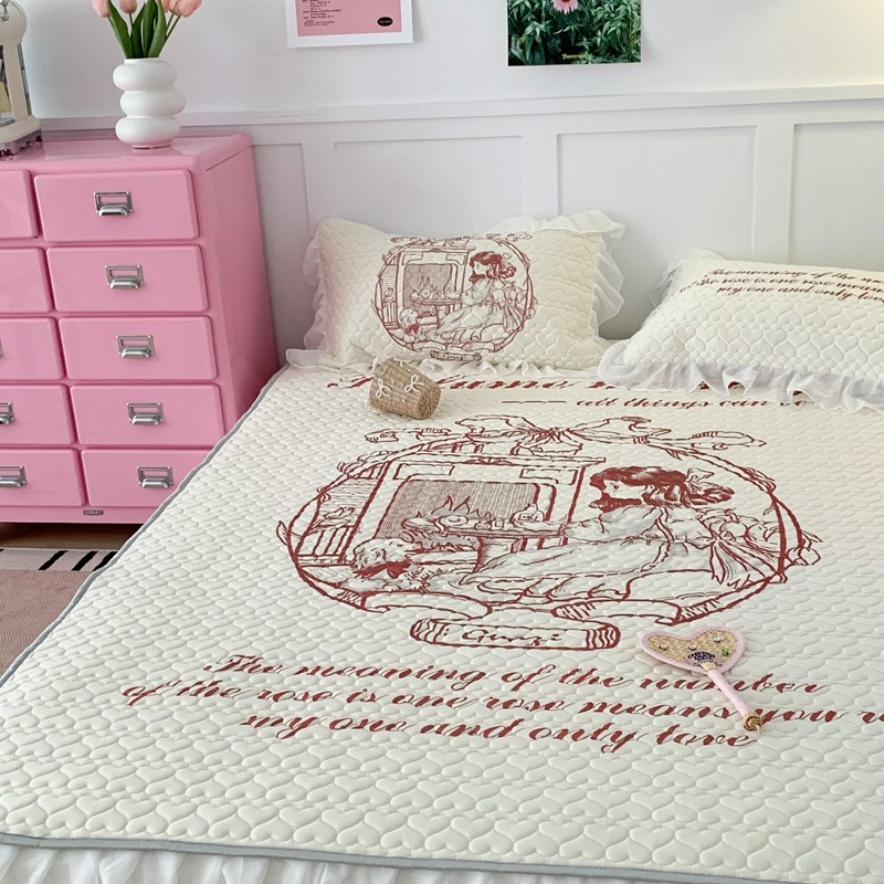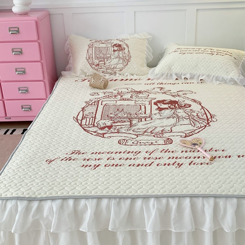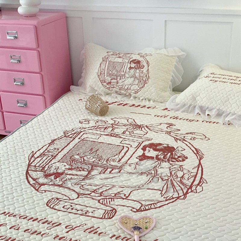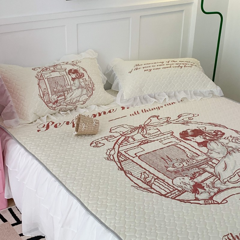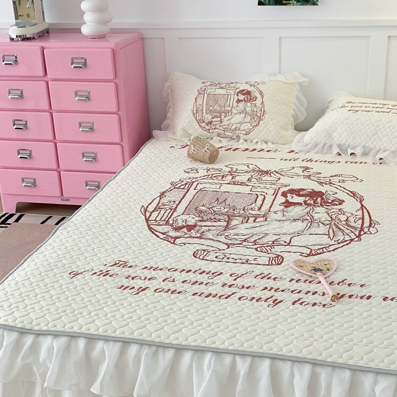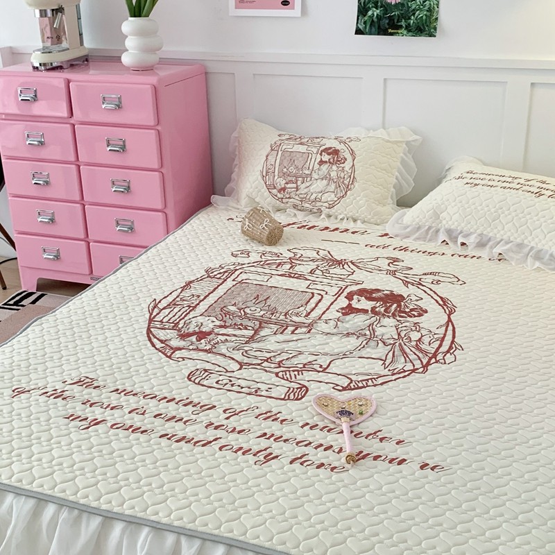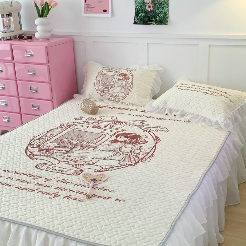 昔可 2023新款第二批双层床裙乳胶三件套 可爱小清新风 复古线条女孩