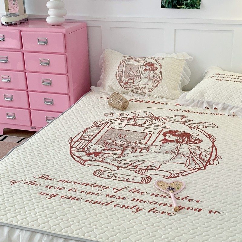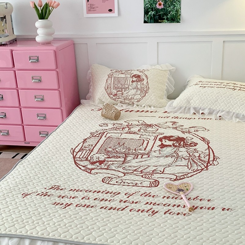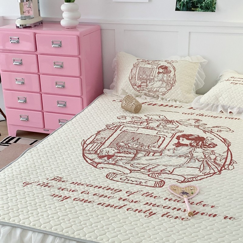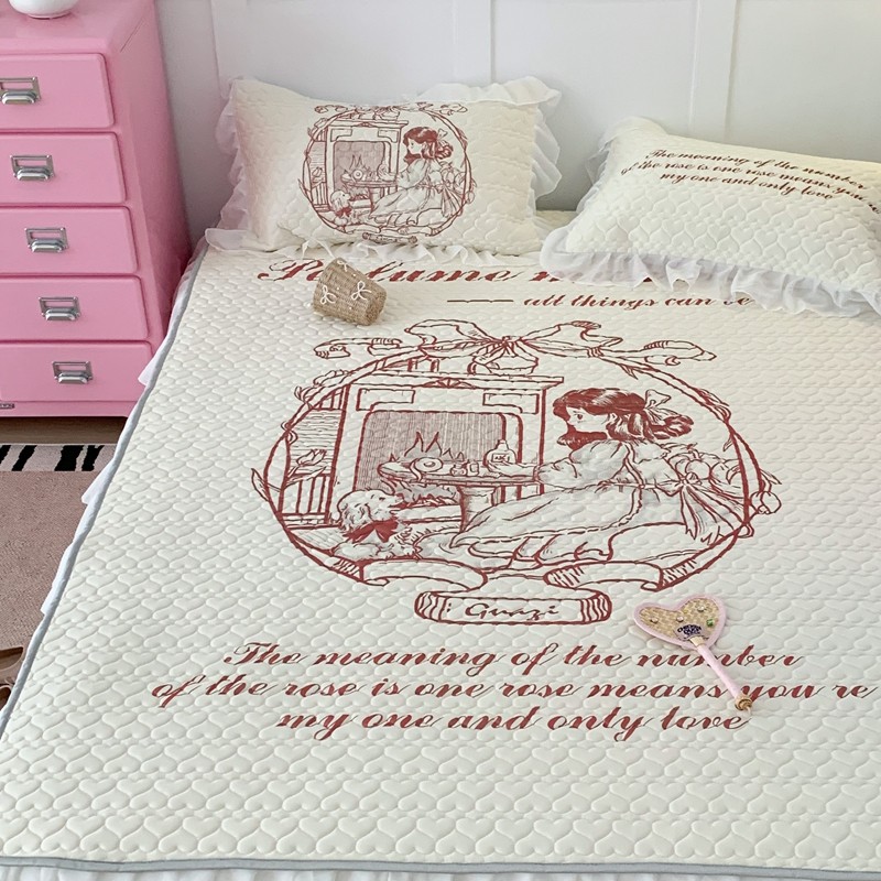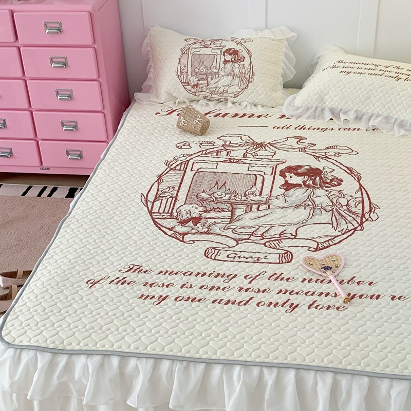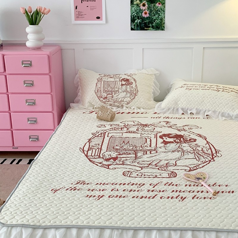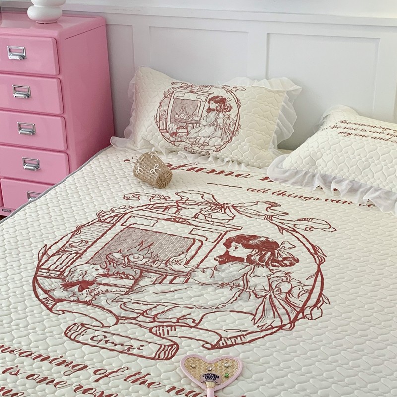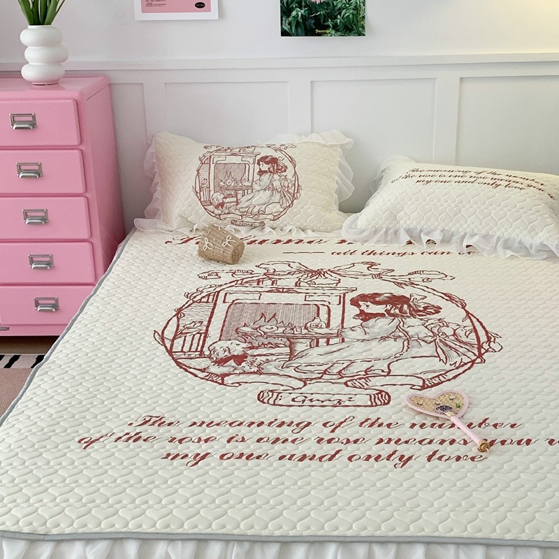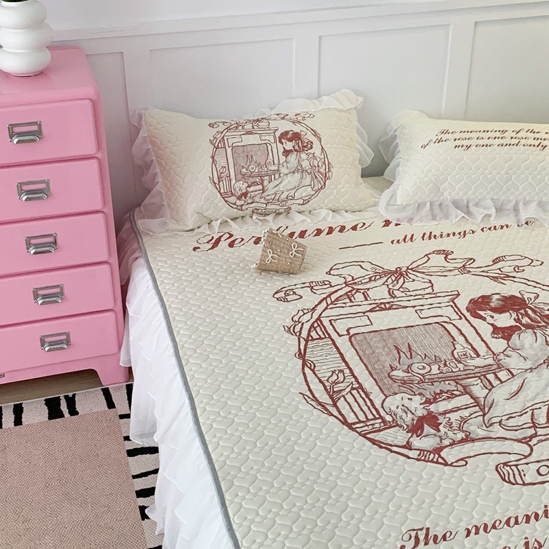昔可 2023新款第二批双层床裙乳胶三件套 可爱小清新风 复古线条女孩