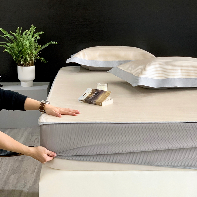 商品名称:JUICY 橘滋家纺 2023新款高端可水洗提花冰丝席床笠款-场景二 米拉奶酪