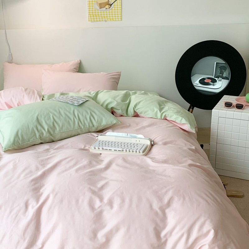 (总)昔可 2023新款全棉ins格子混搭系列四件套,ins简约绿格,粉蓝格,开心果格,学院格纹,粉绿格,海盐兰格,黄绿格,夏日蓝条,芝士黄条,紫芋泥芝士格