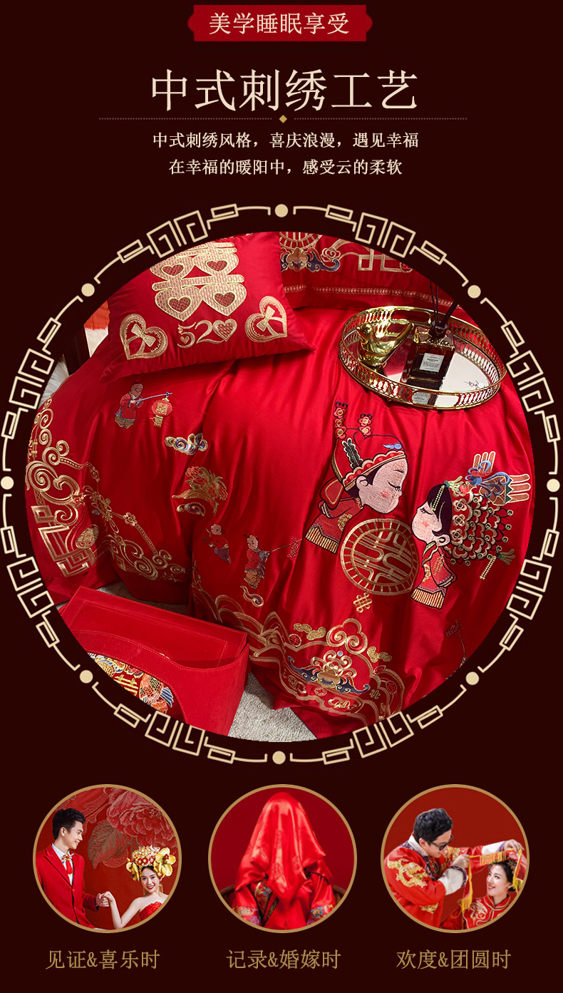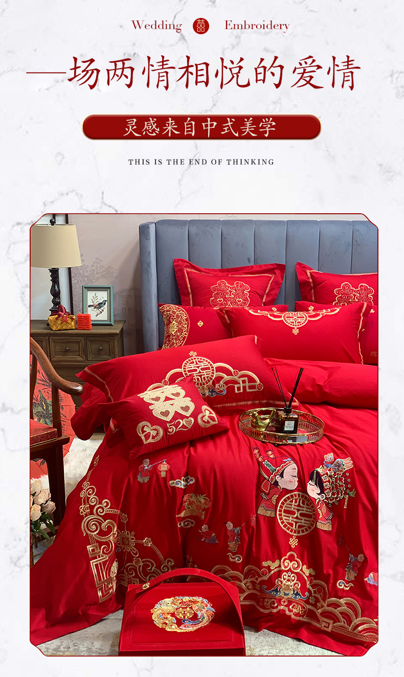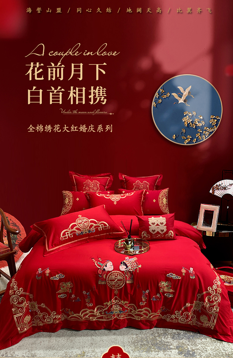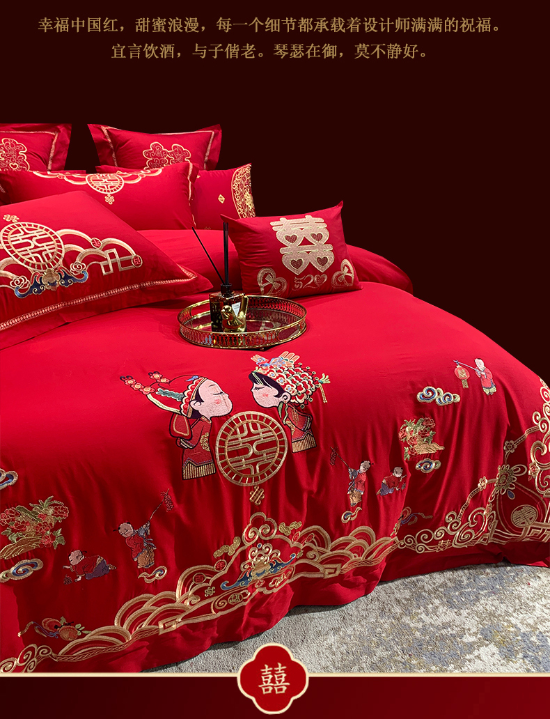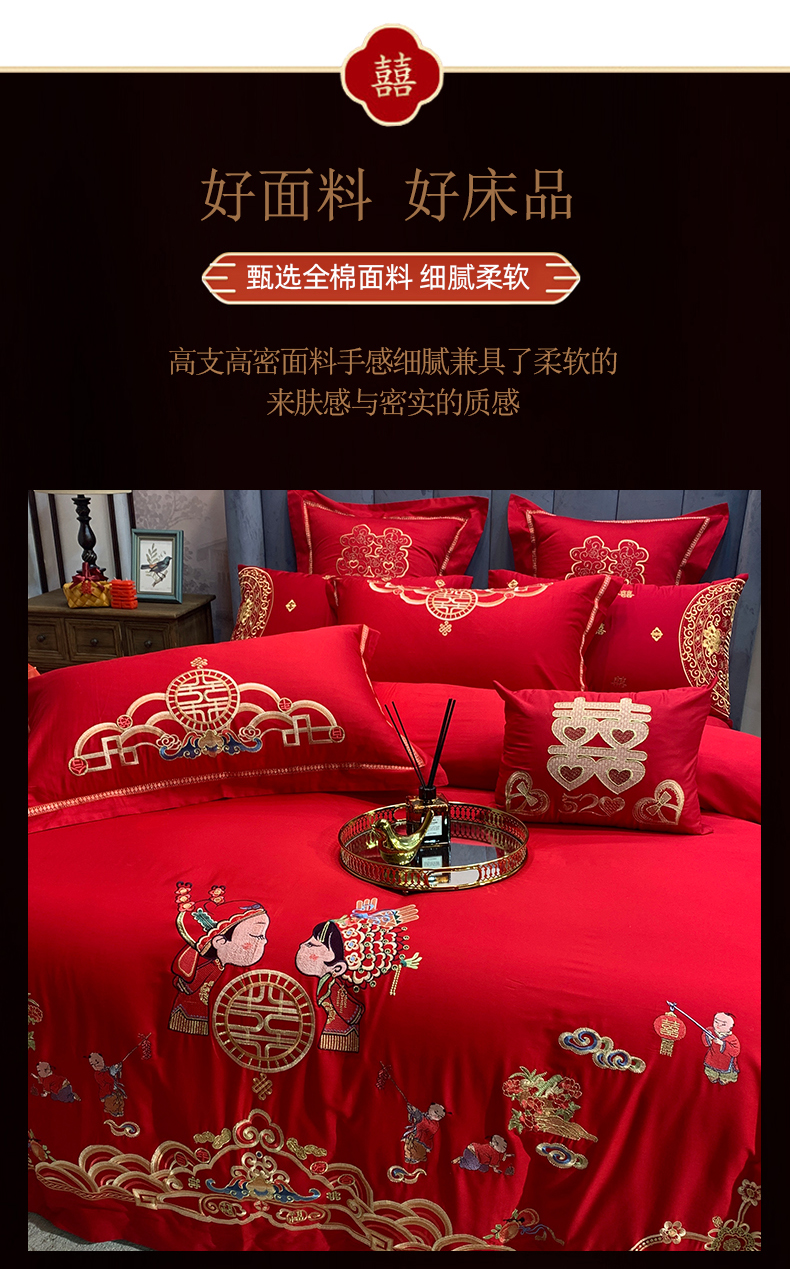 当前位置: 91家纺网 > 商品网购 > 床品套件 > 四件套 > 婚庆四件套 > 橘滋2023新款全棉绣花大红婚庆系列四件套 百子迎亲