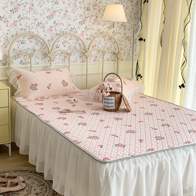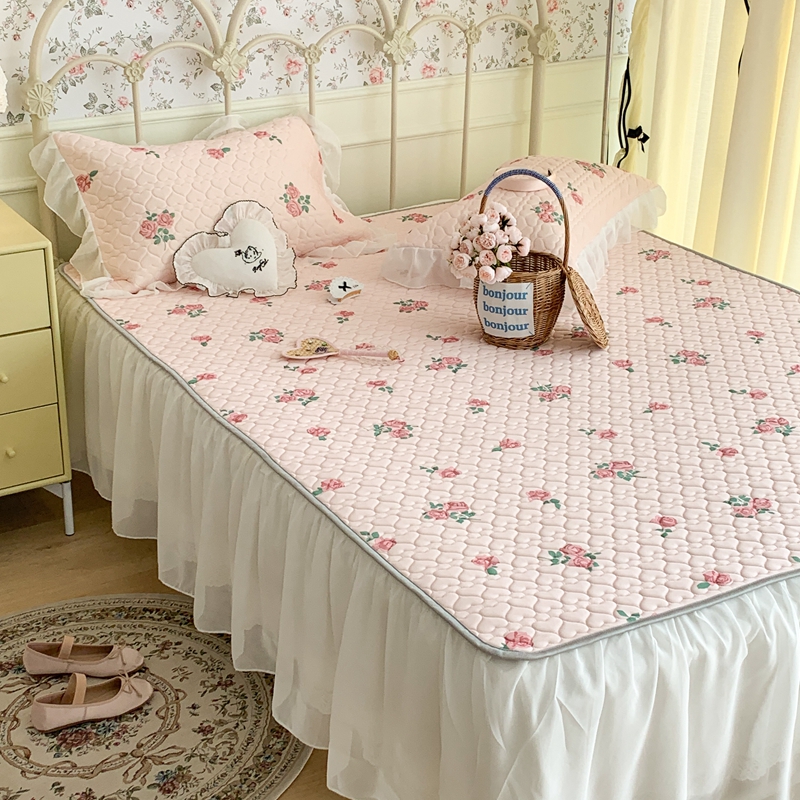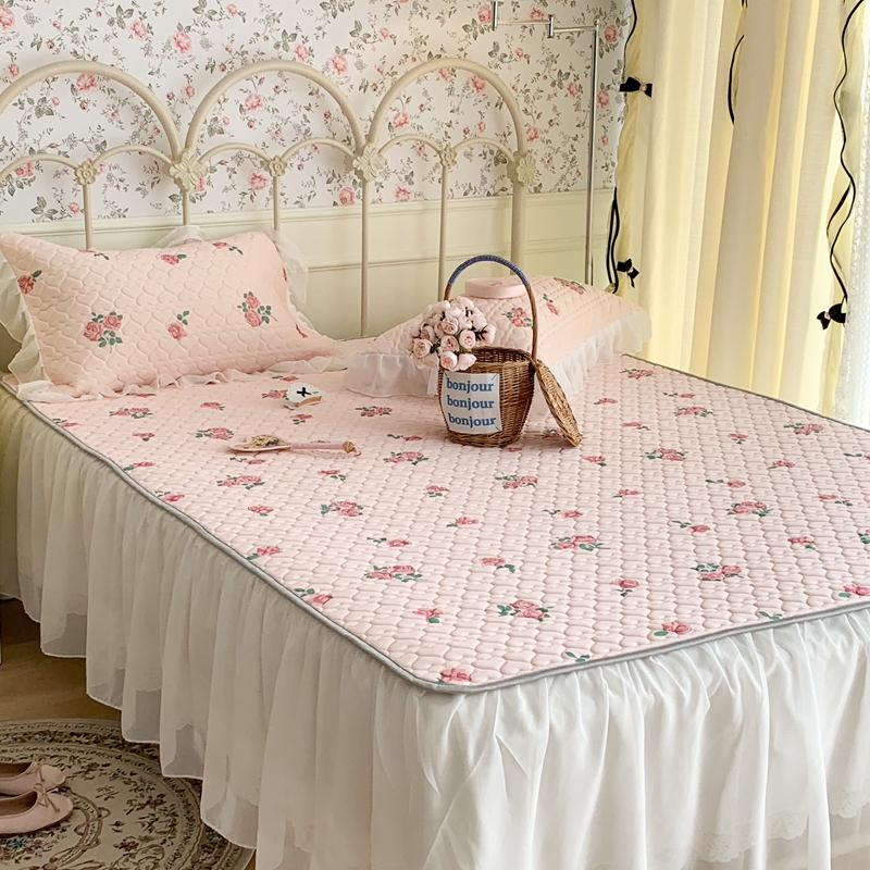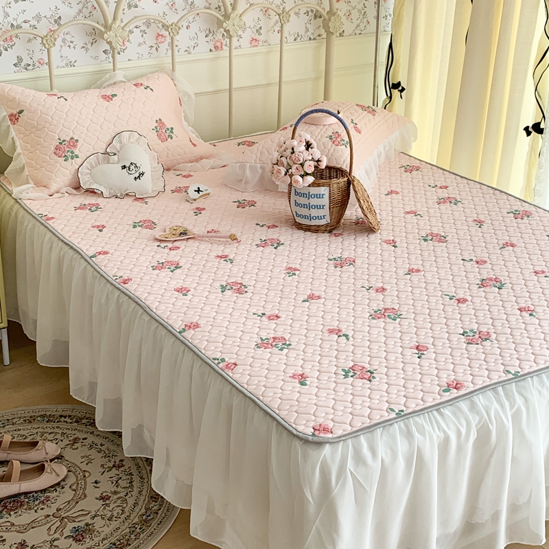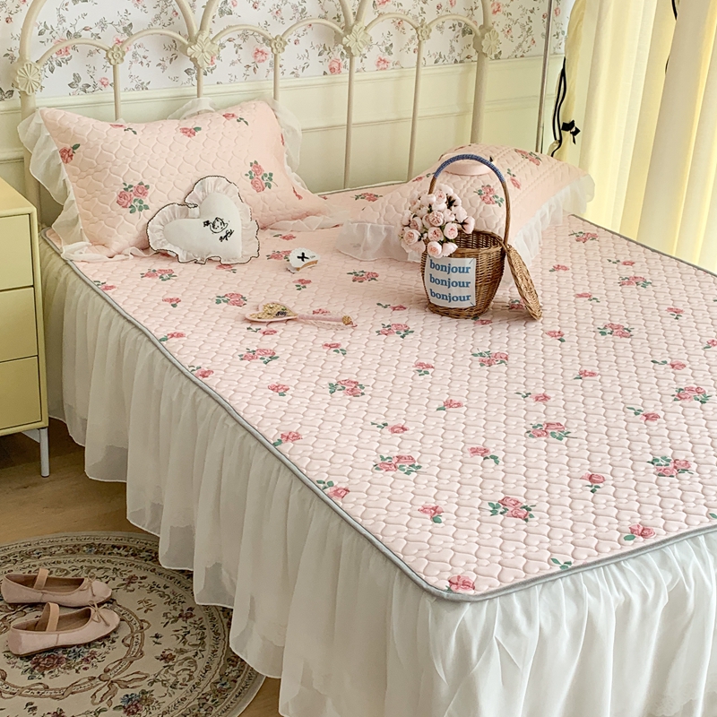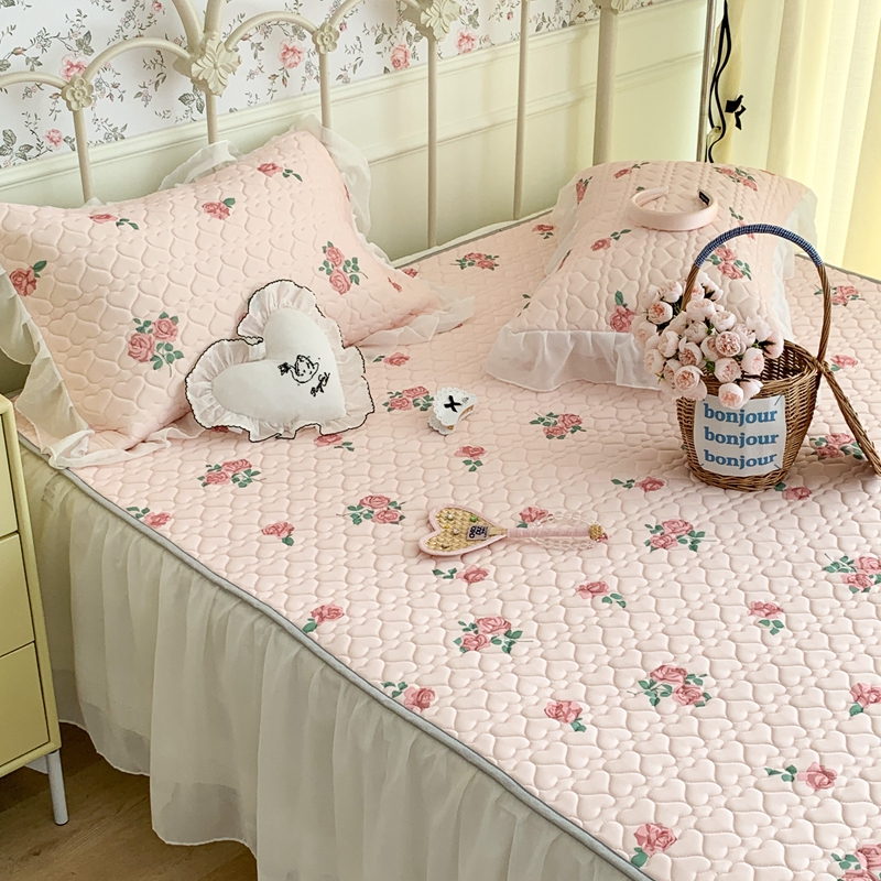 商品名称:昔可 2023新款单层雪纺花边乳胶凉席三件套 荔枝玫瑰