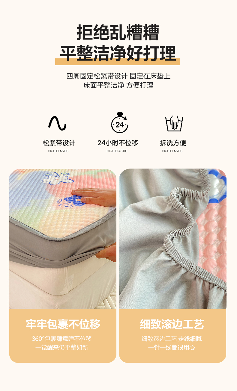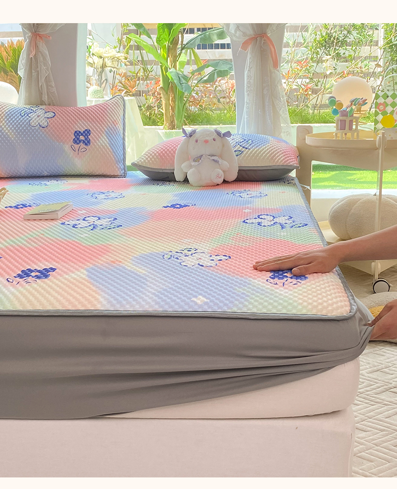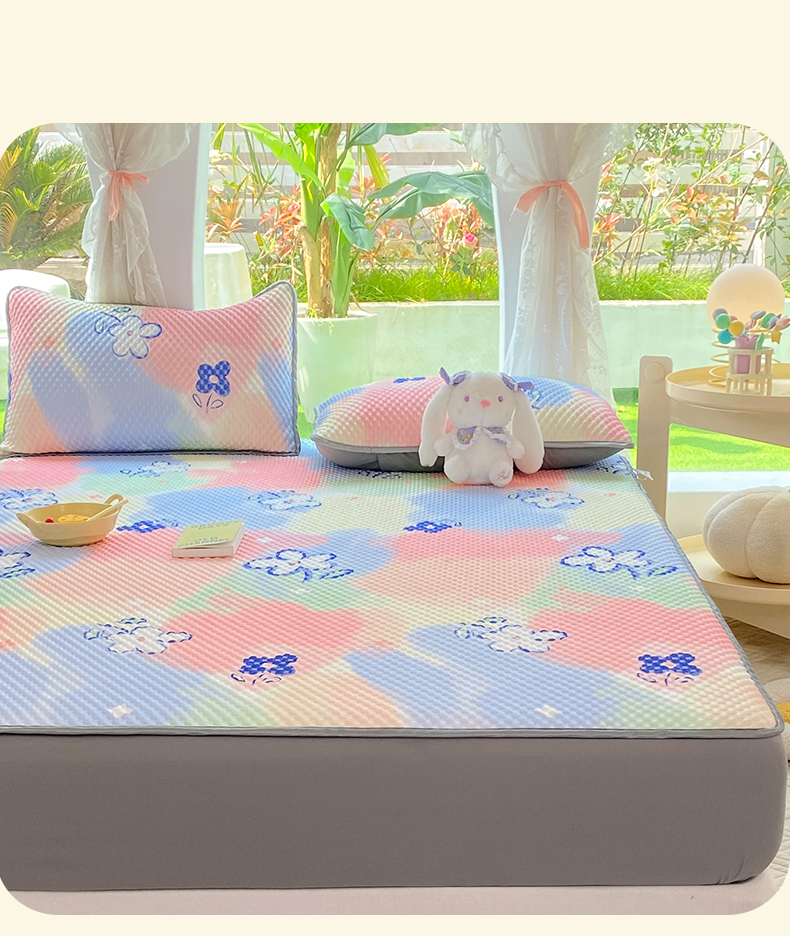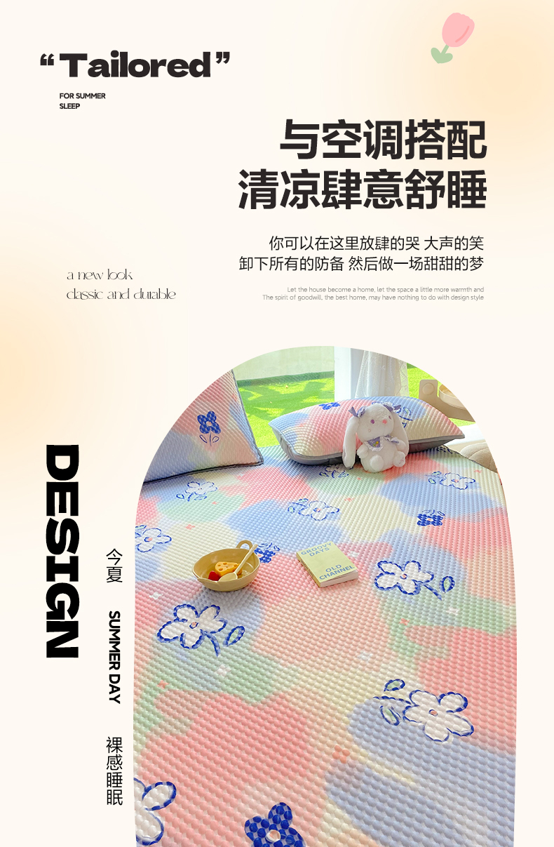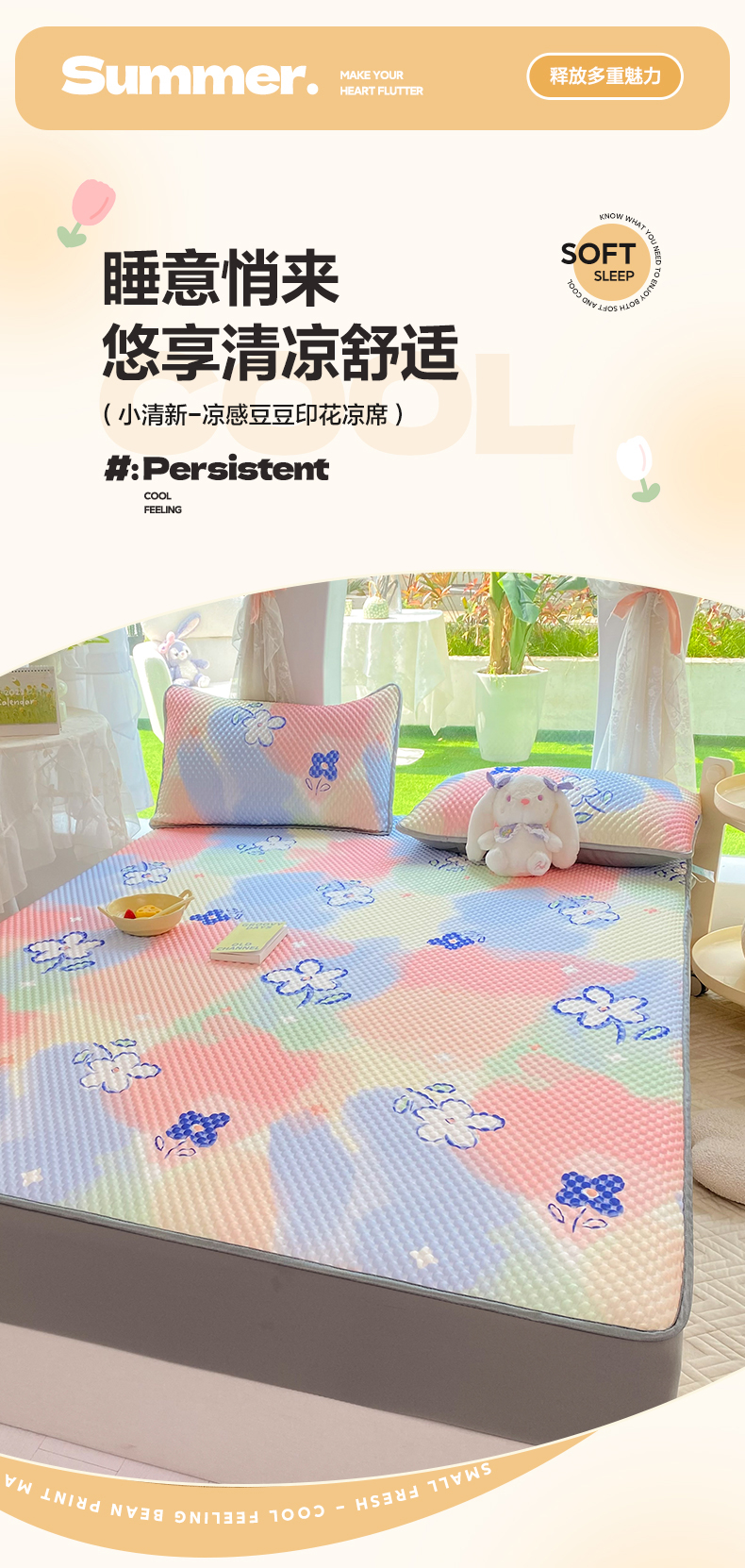 总云家2023新款3D冰豆豆凉席三件套床笠款席子凉席空调席软席-场景二,波浪,格子兔,蓝爱心,清新绿,向漾花,小黑花,小蓝花,小兔子,炫彩