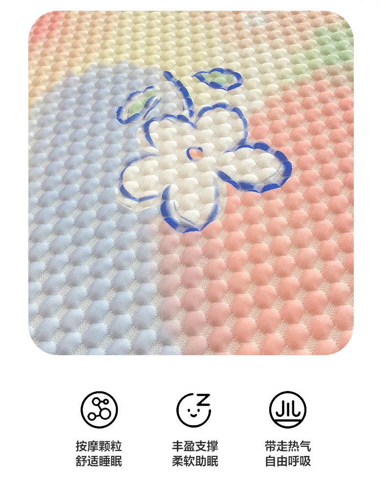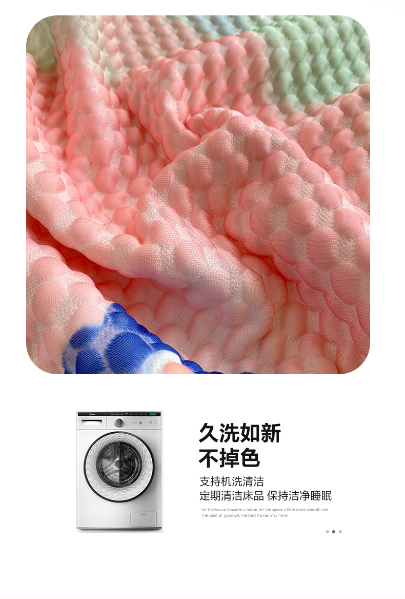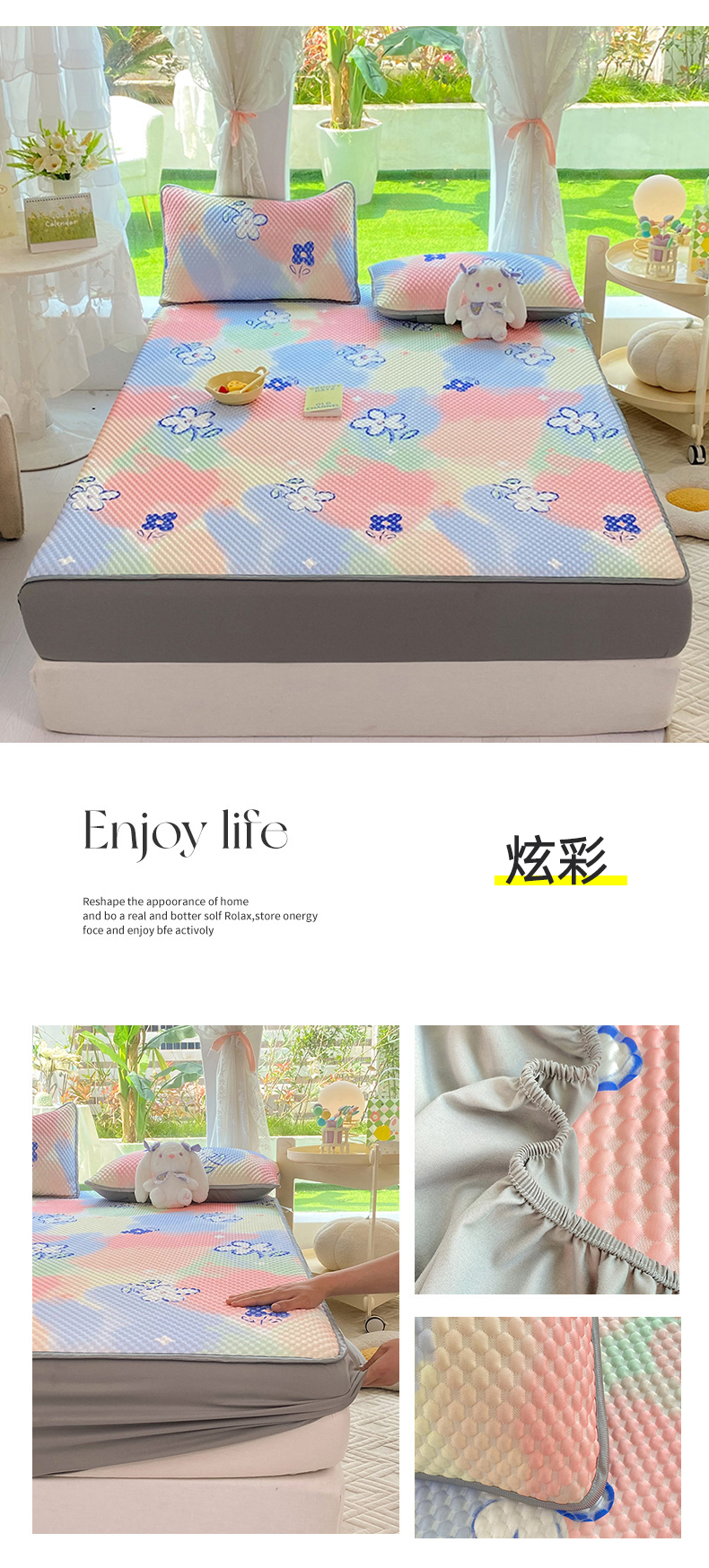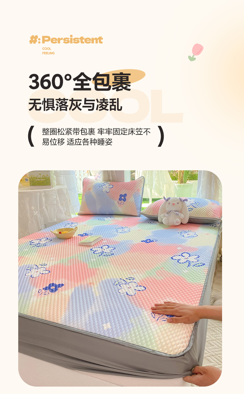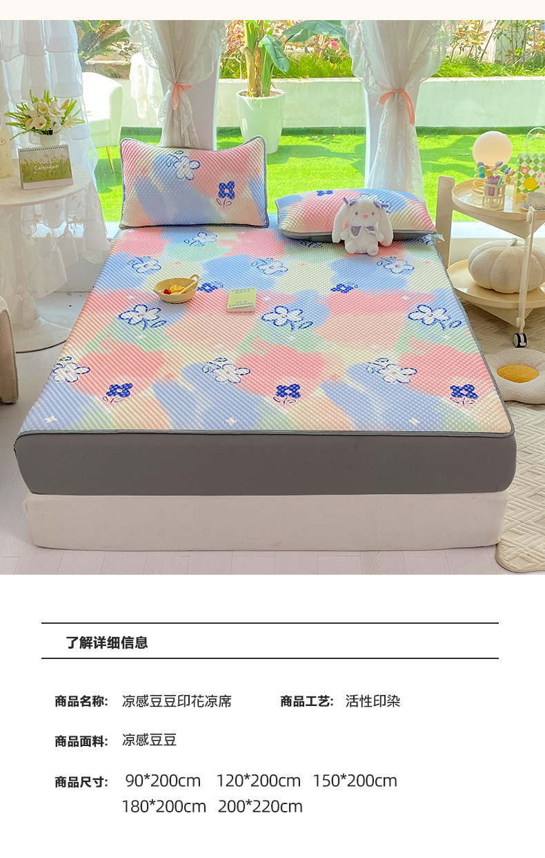 商品名称:云家 2023新款3D冰豆豆凉席三件套床笠款席子凉席空调席软席 炫彩