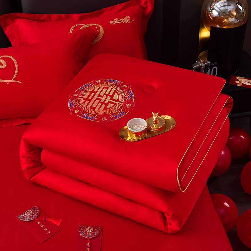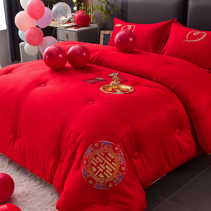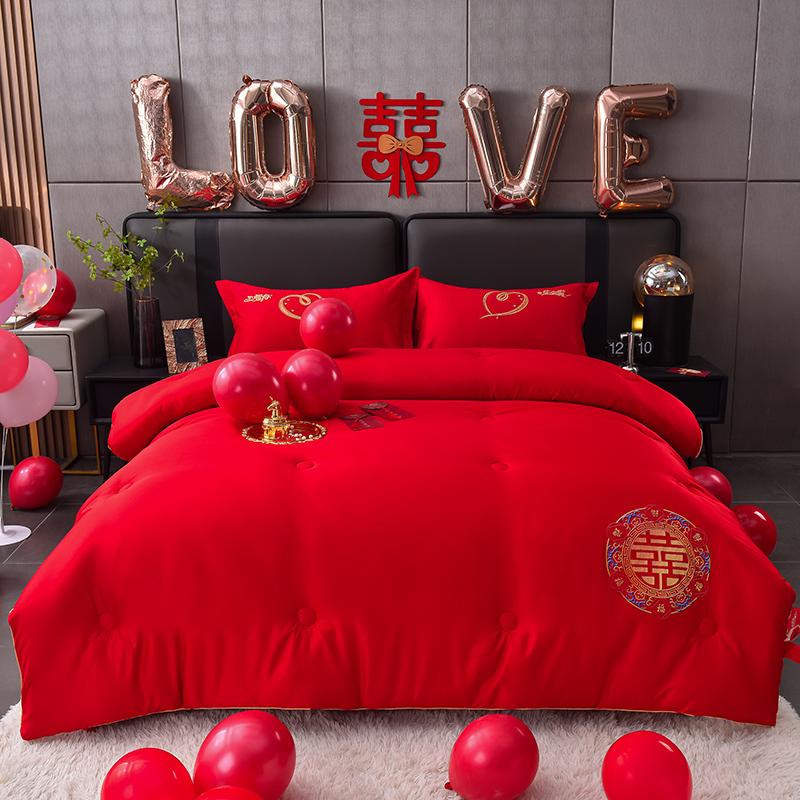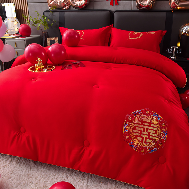 (总)壹张床2025新款婚庆水洗棉大豆冬被,大喜日子